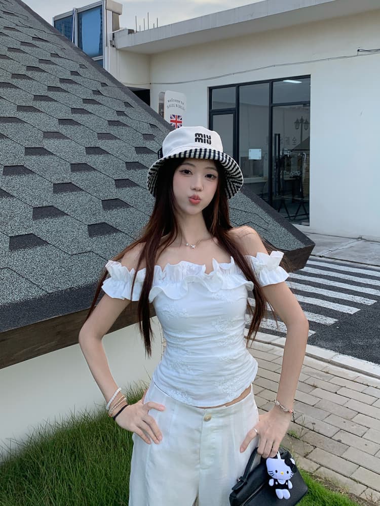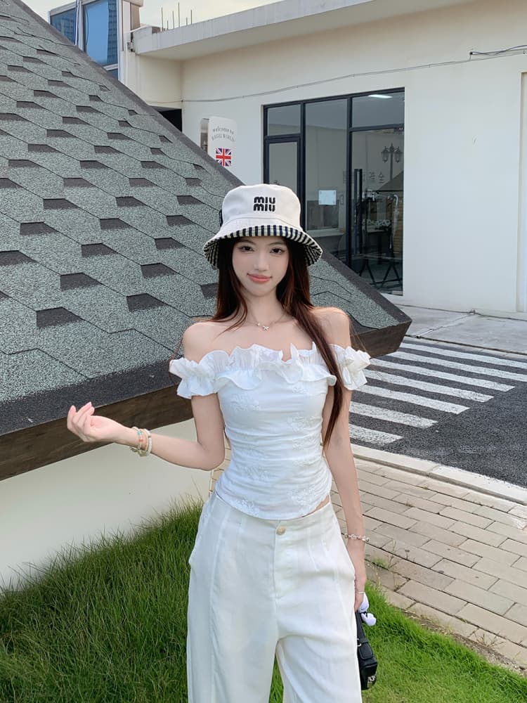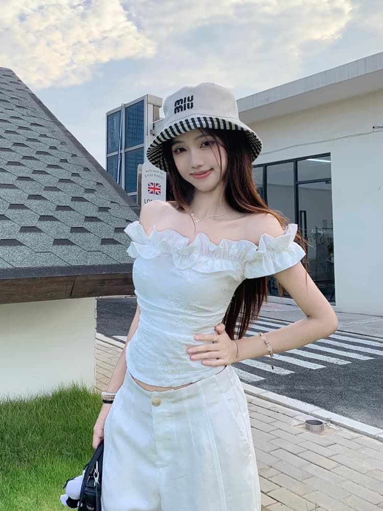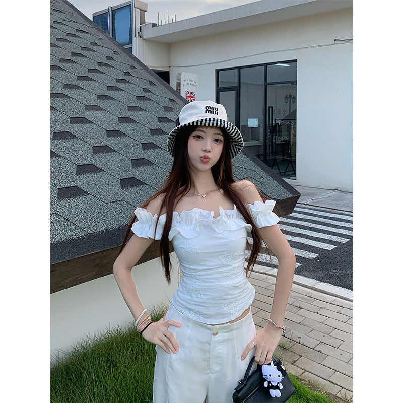 지방 mm 비스듬한 어깨 슬립 반팔 티셔츠 여성 여름 새로운 디자인 센스 작은 대중 루즈핏 표지 고기 슬림해 보이는 맨위