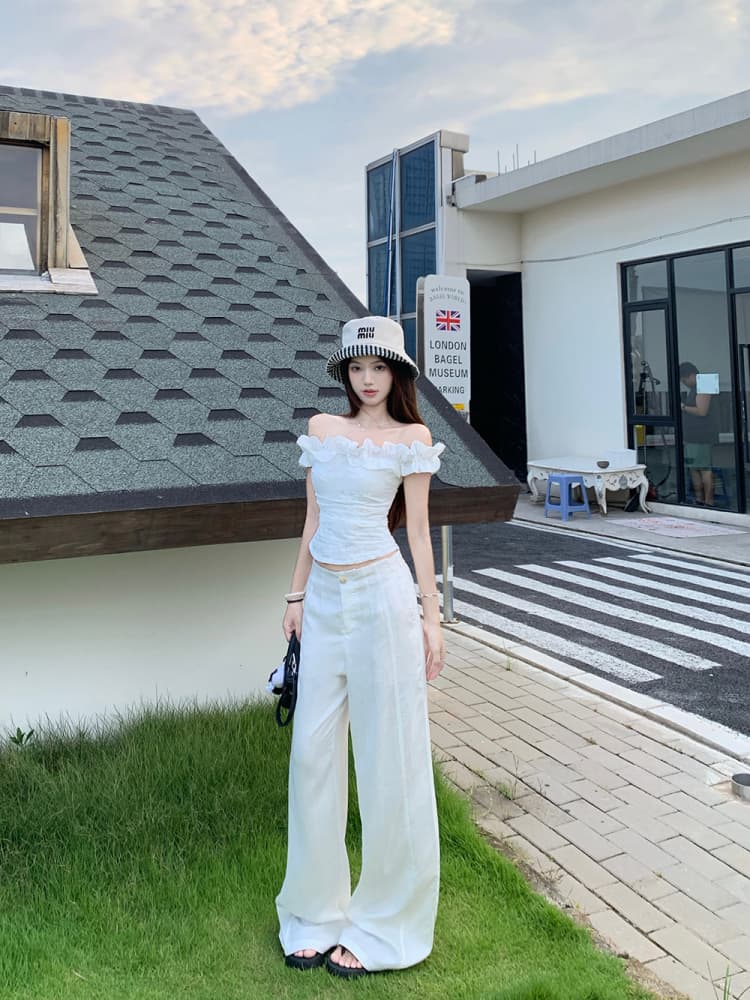 스트랩 허리밴드 워크웨어 팬츠 여성 2025 가을 새로운 스트레이트 긴 바지 한 부서 분위기 센스 와이드 레그 팬츠