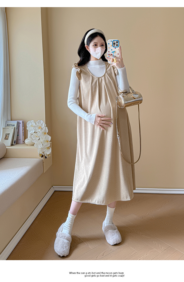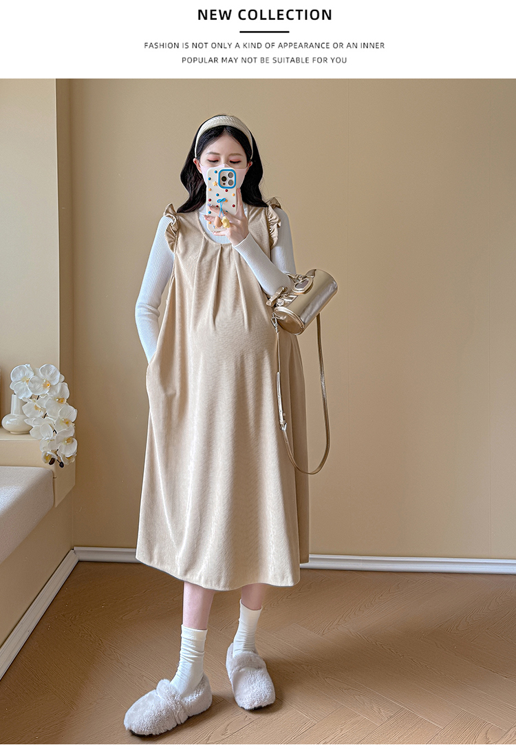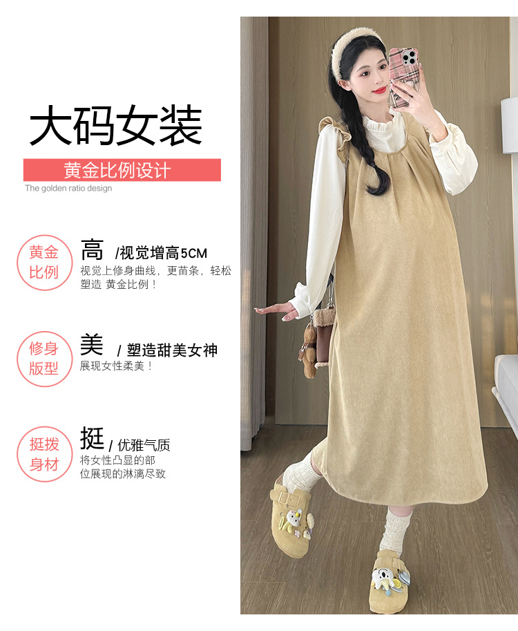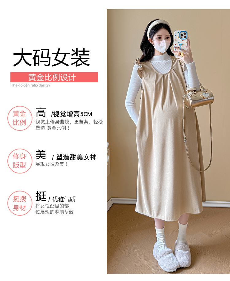실사 2026 봄 새로운 출산 착용 멜빵 스커트 투피스 슈트 임산부 드레스 빅 사이즈 여성 의류
