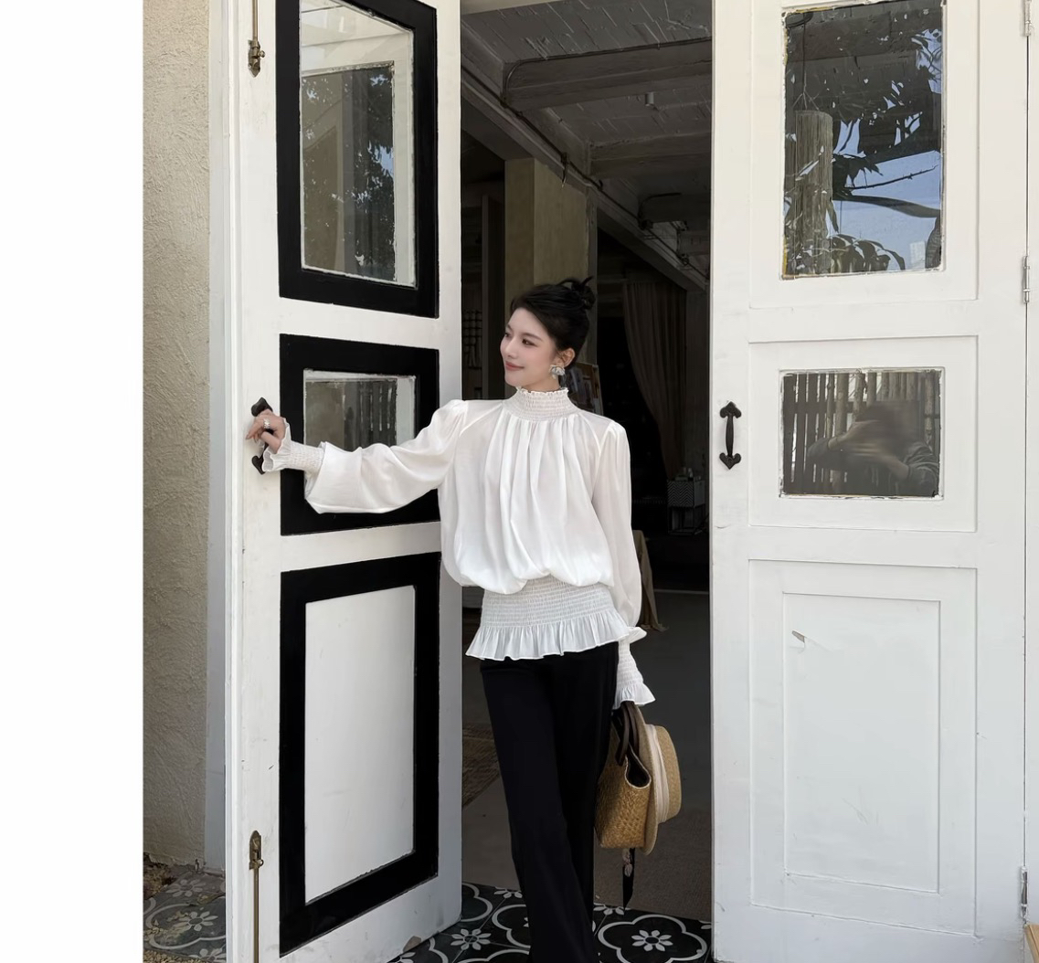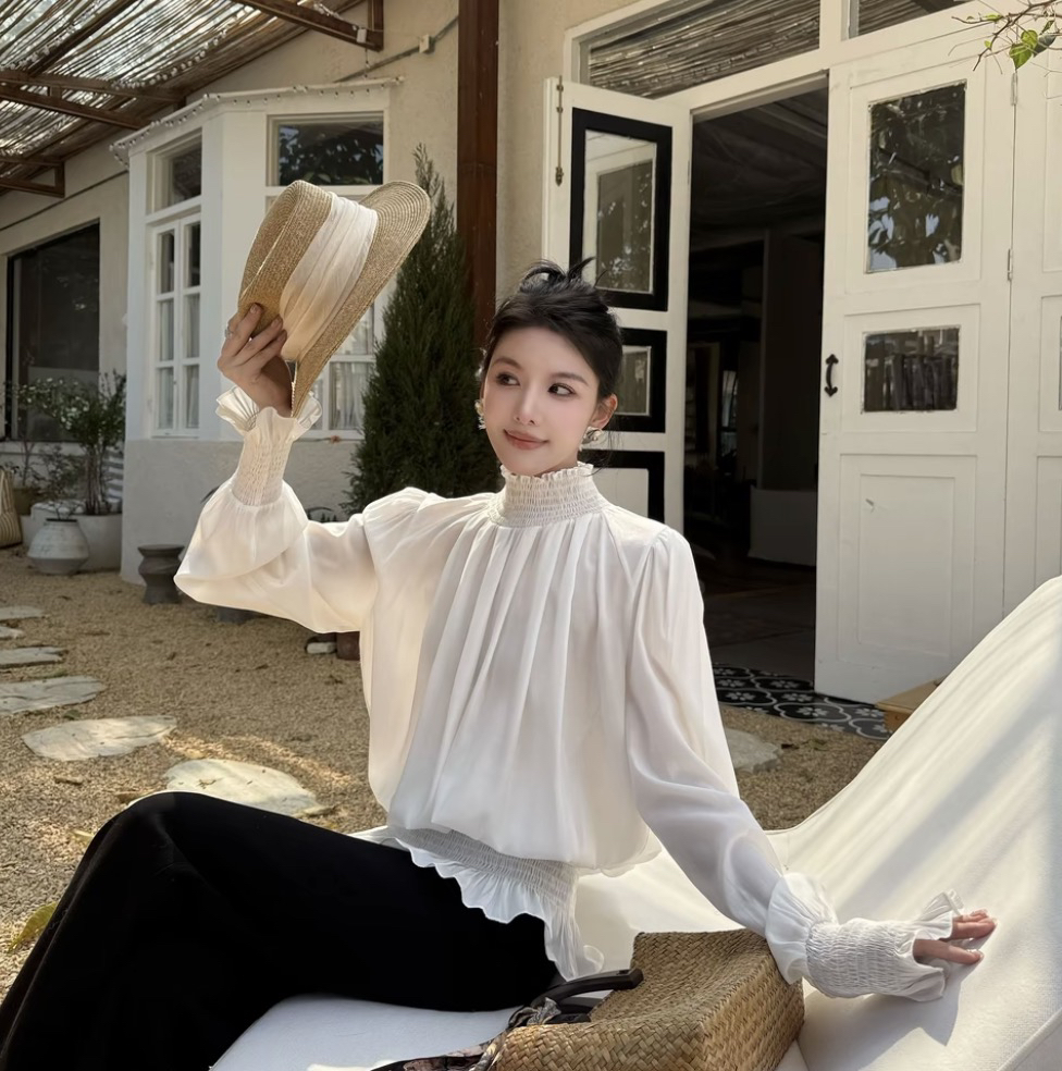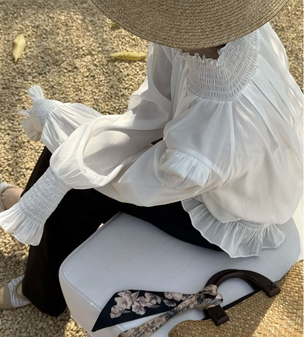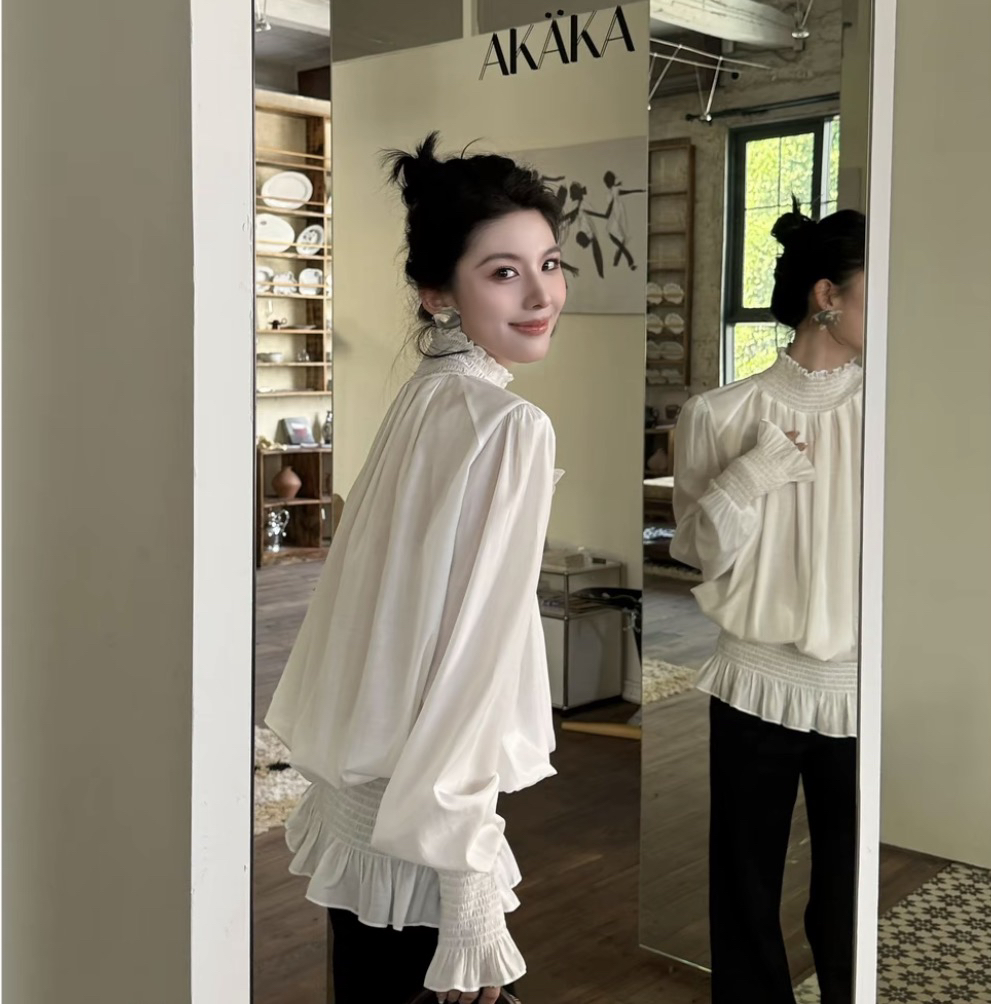 릴리 예 장 원자바오 부드러운 미니멀리즘 꽃잎 소매 우유 화이트 긴팔 셔츠 화이트 2026 맨위 외국 가스 새로운