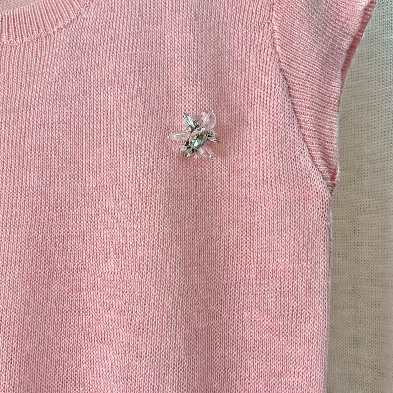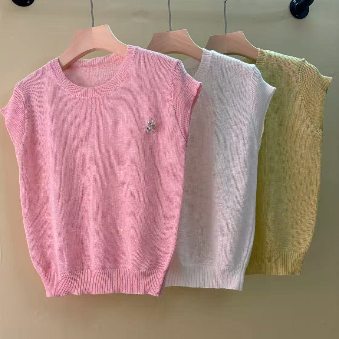 mz2026 여름 새로운 라운드 넥 니트 티셔츠 비즈 박기 반팔 맨위
