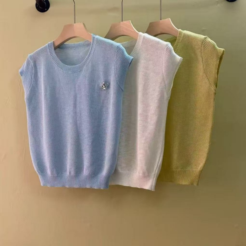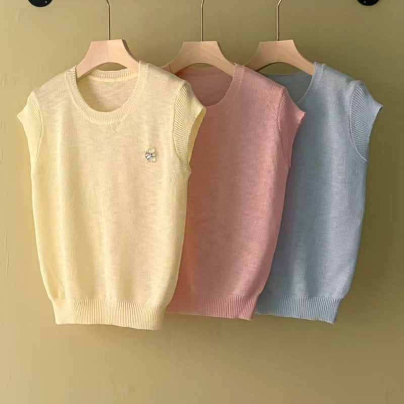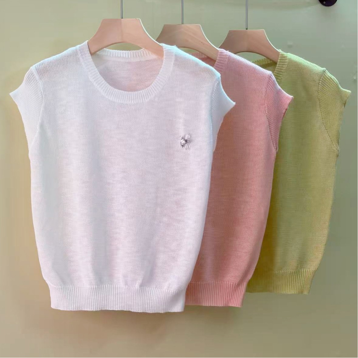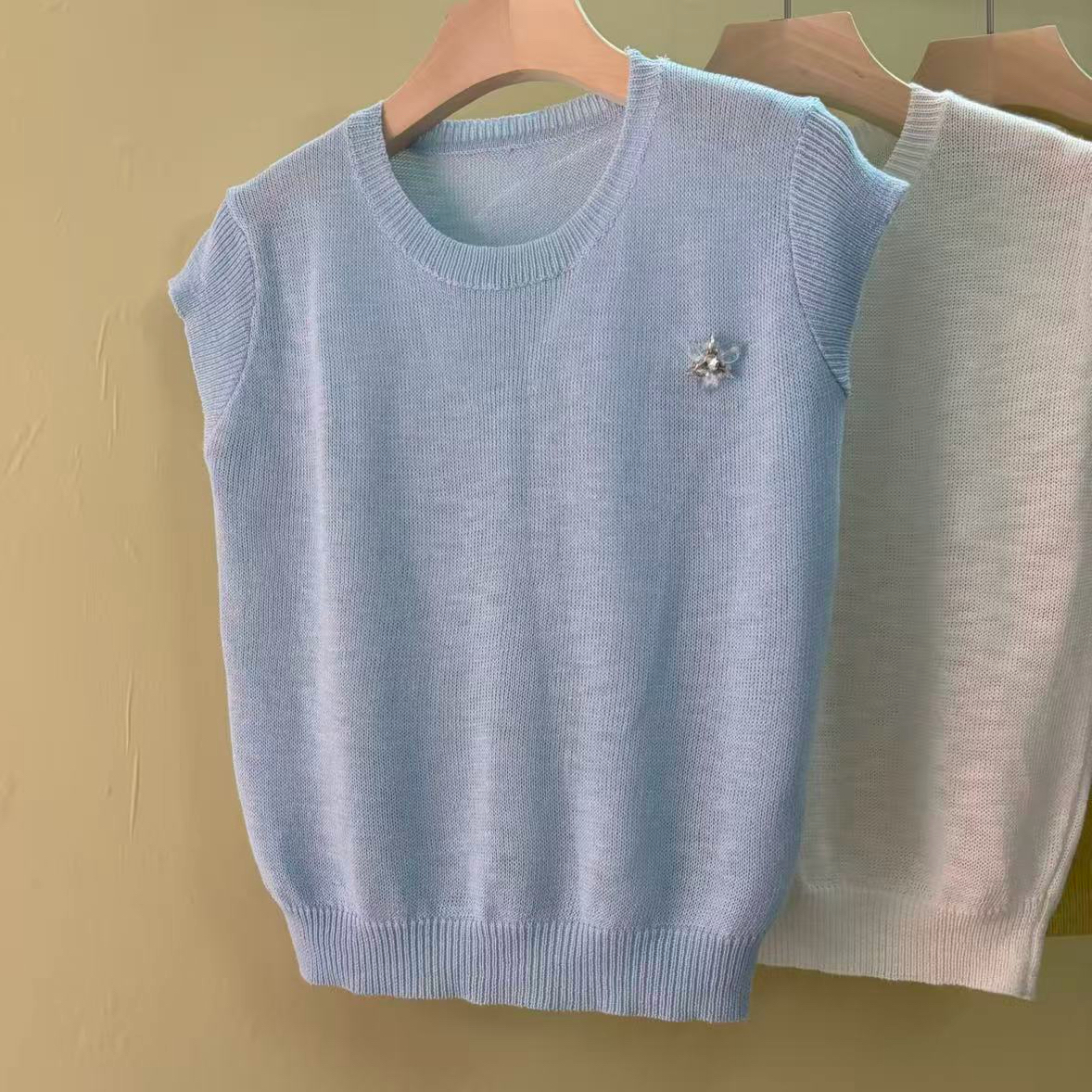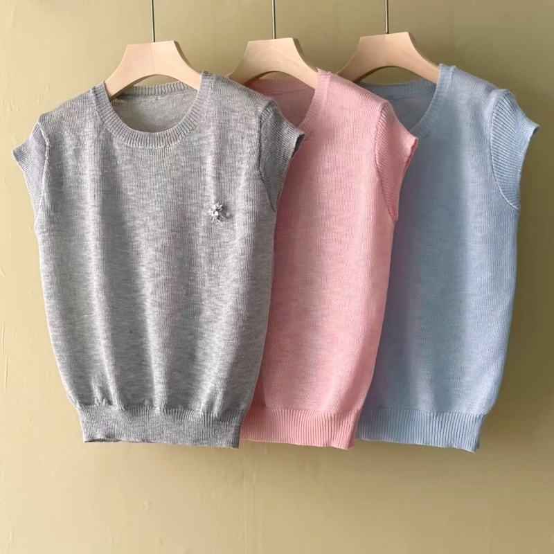 mz 반팔 니트 스웨터 여성 26 여름 질감 센스 부드러운 찹쌀 라운드 넥 슬림해 보이는 느긋한 센스 통기성 맨위