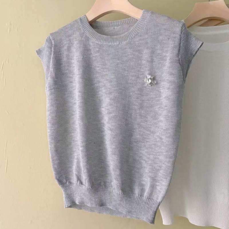 0262 여름 얇고 가벼운 통기성 오래된 돈 라운드 넥 슬림해 보이는 반팔 니트 스웨터