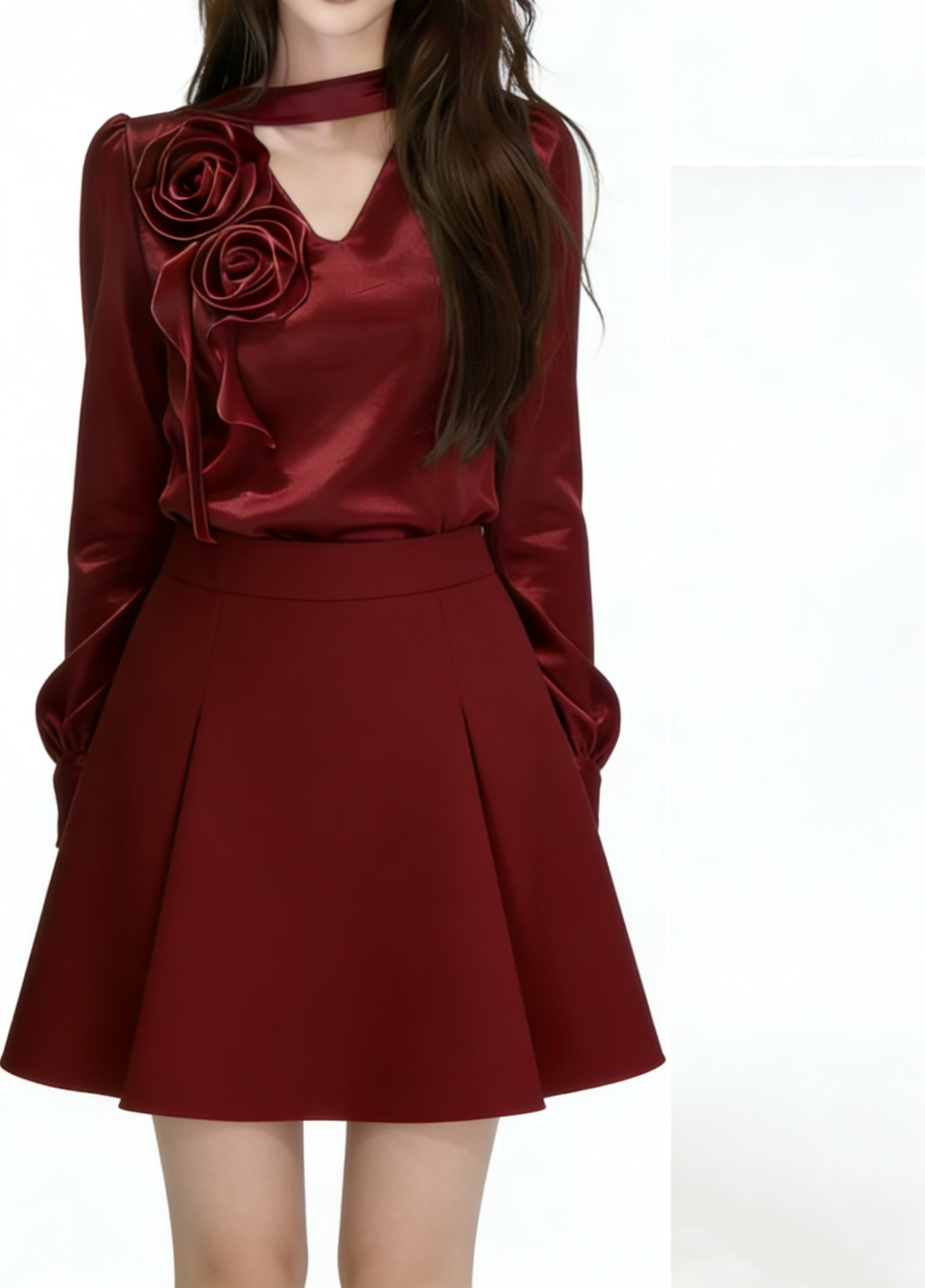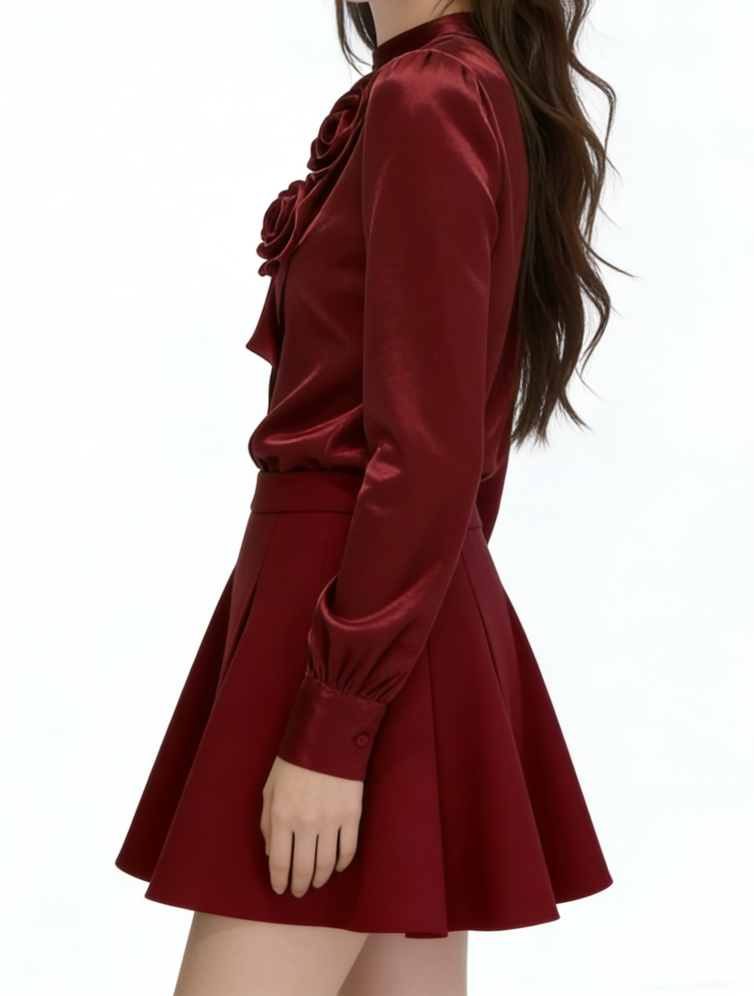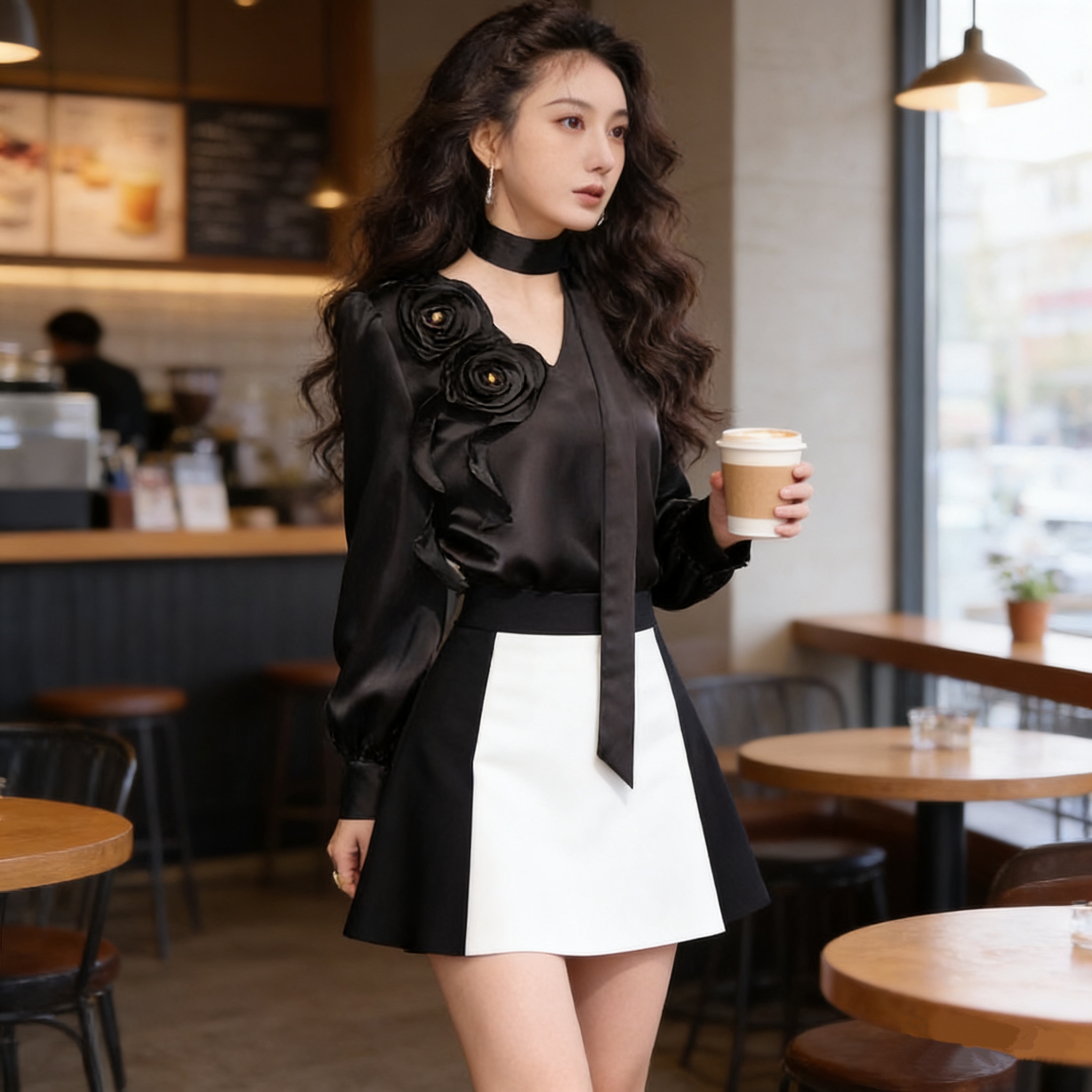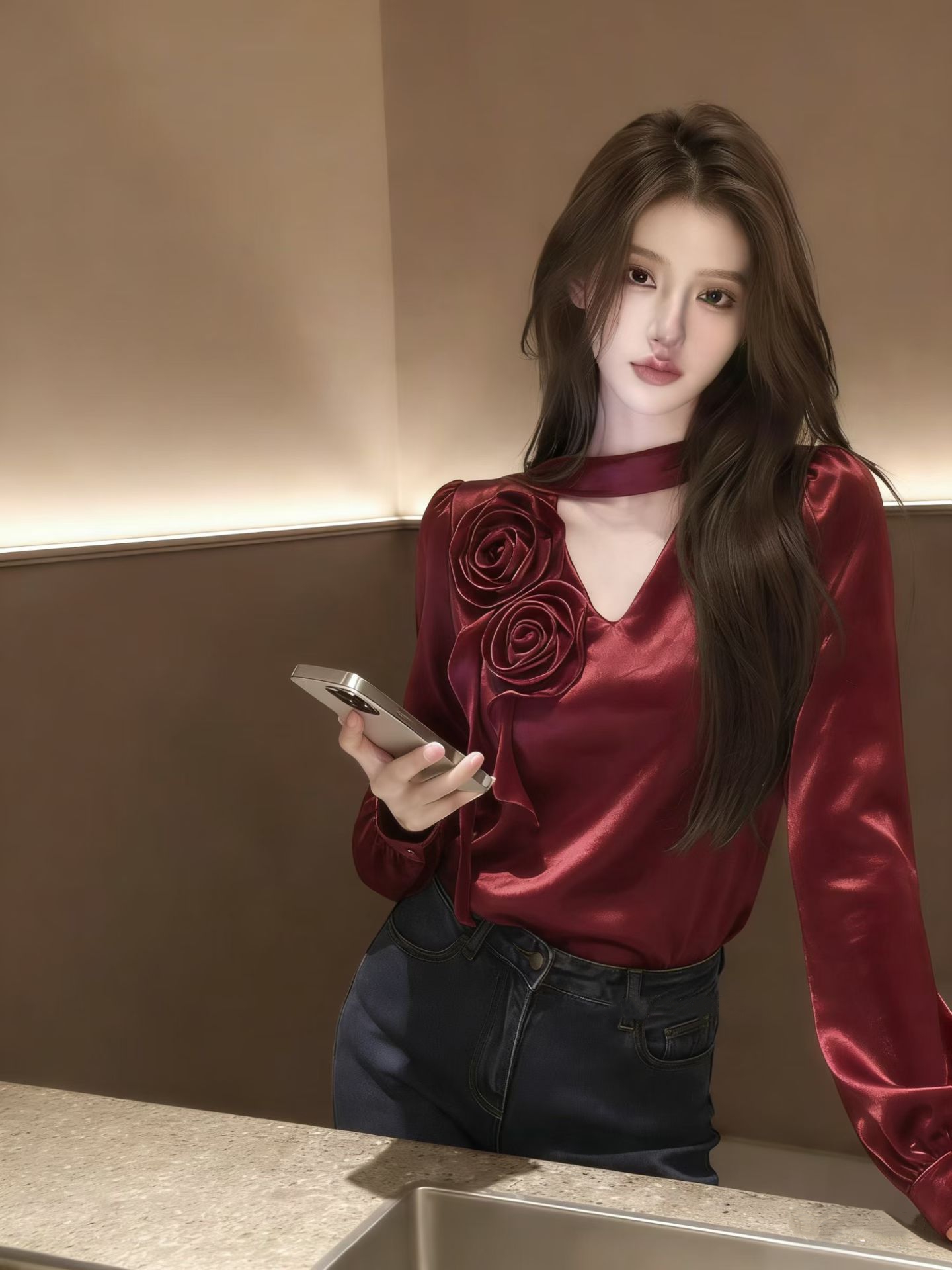 md 입력 오리지널 계단식 꽃 리플 2026 봄 3 차원 꽃 긍정적 인 어깨 디자인 센스 리본 긴팔 셔츠