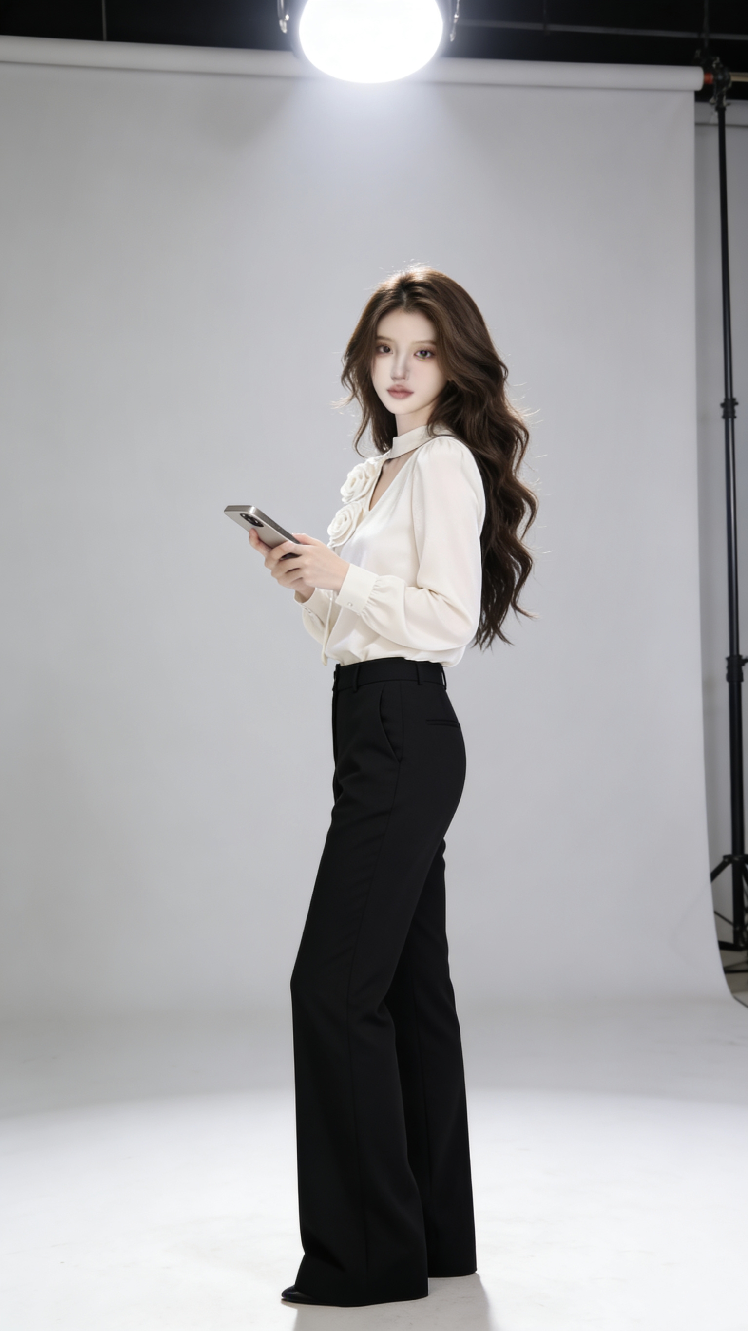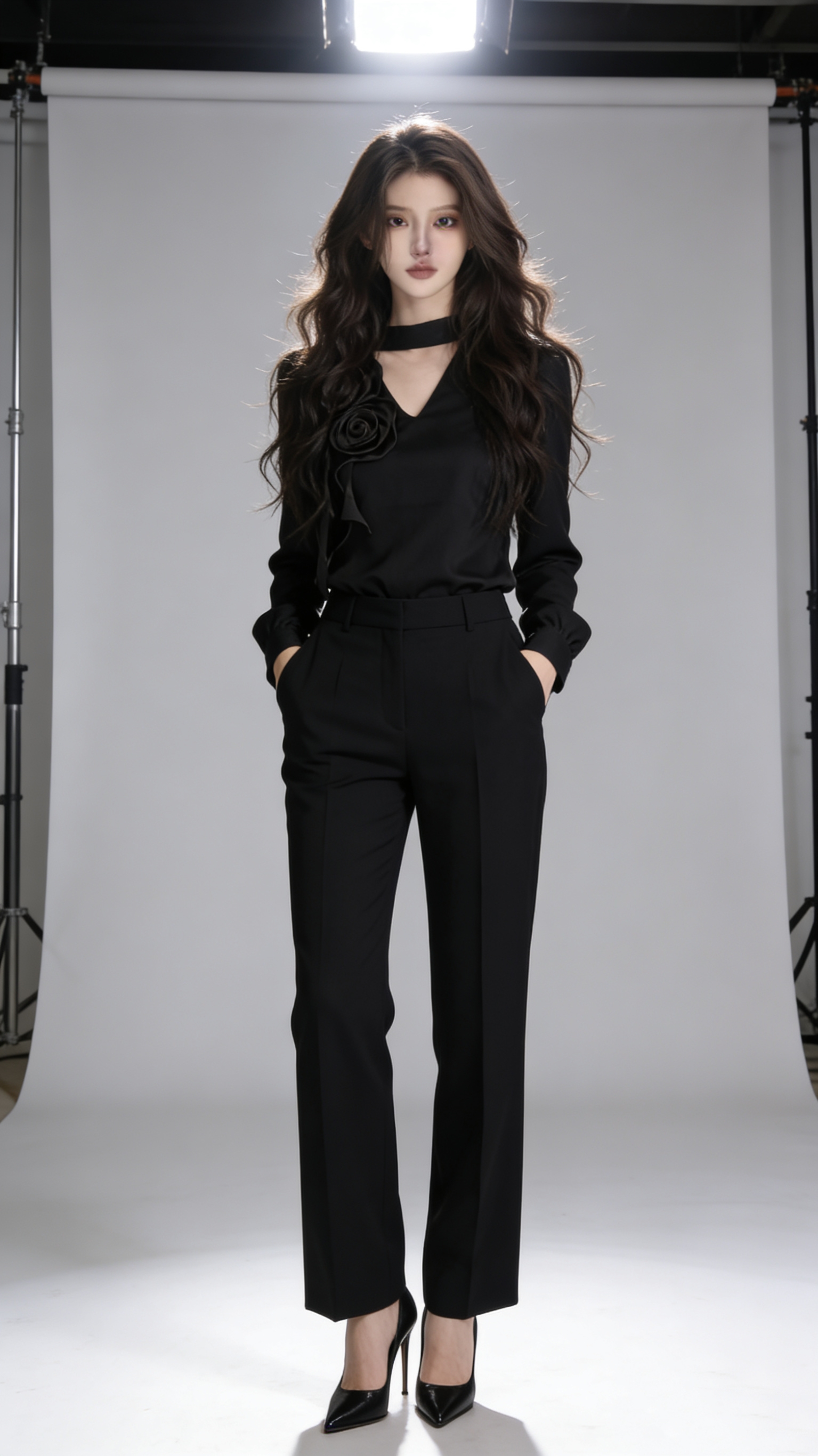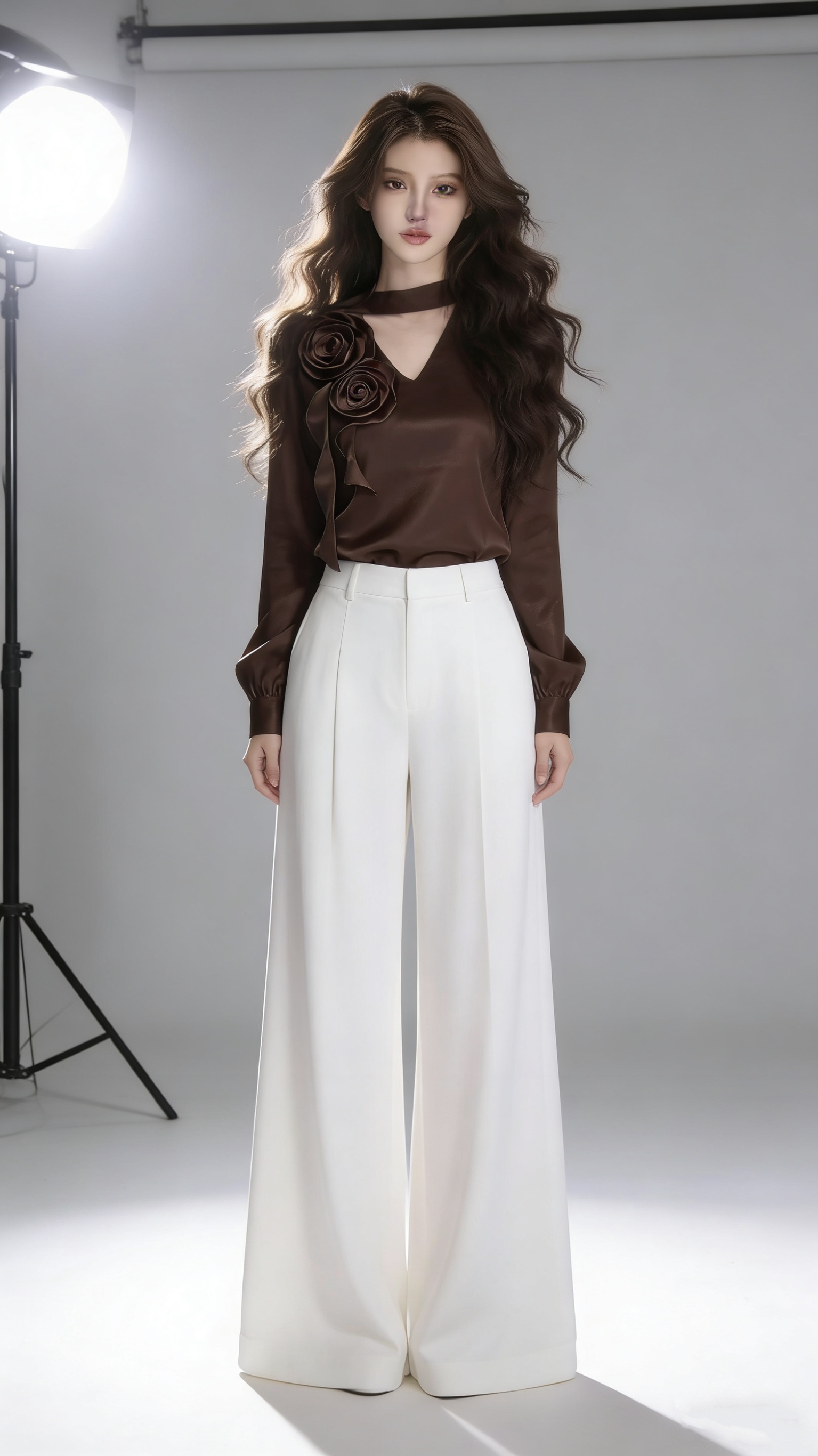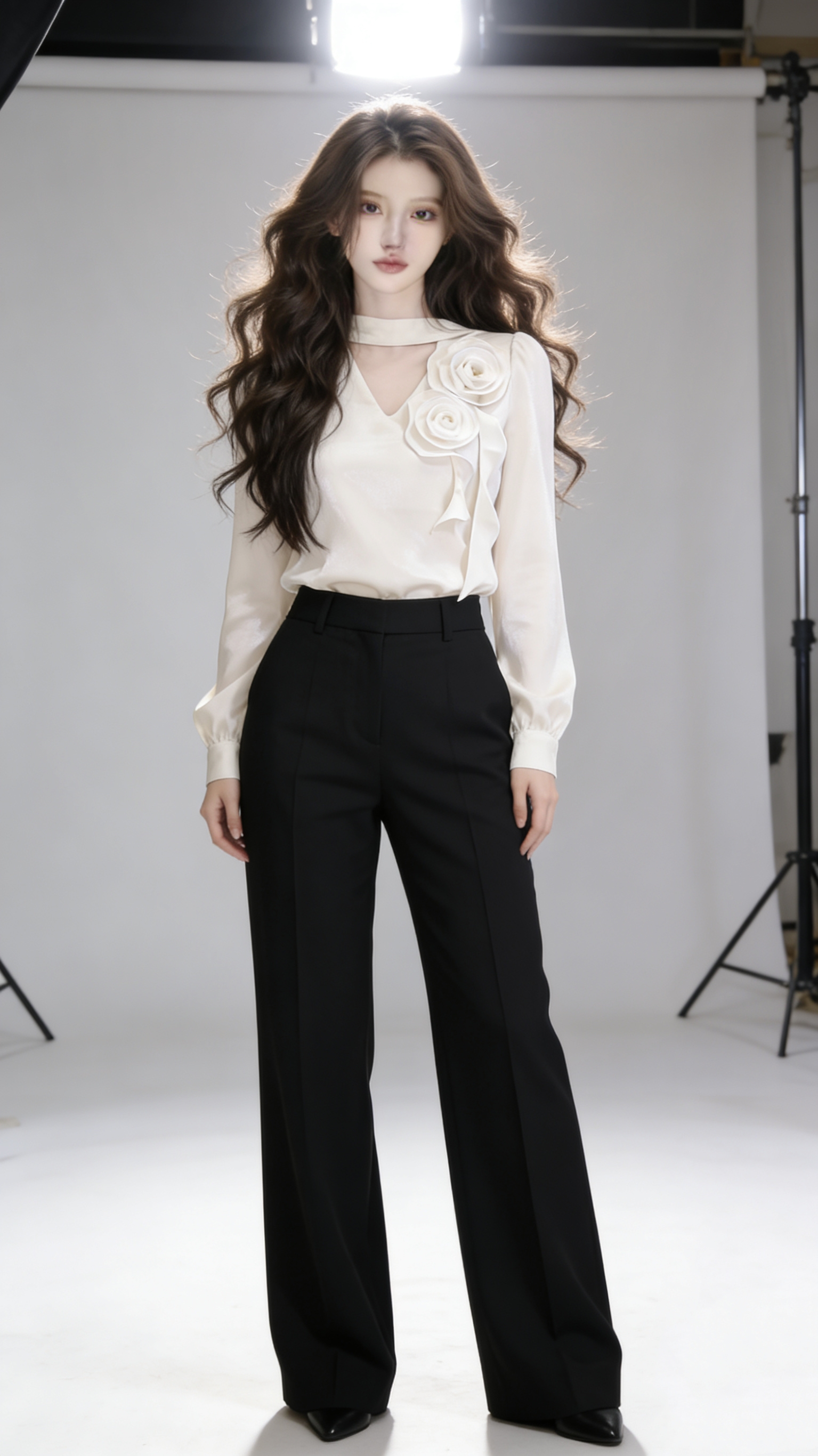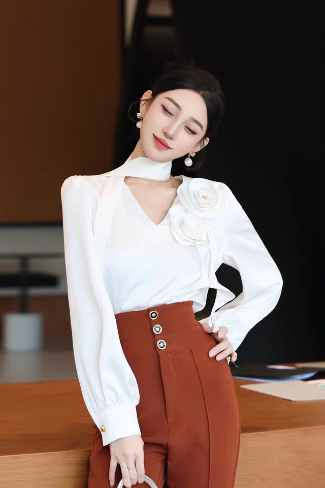 실사 오리지널 계단식 꽃 리플 2026 봄 3 차원 꽃 긍정적 인 어깨 디자인 센스 리본 긴팔 셔츠