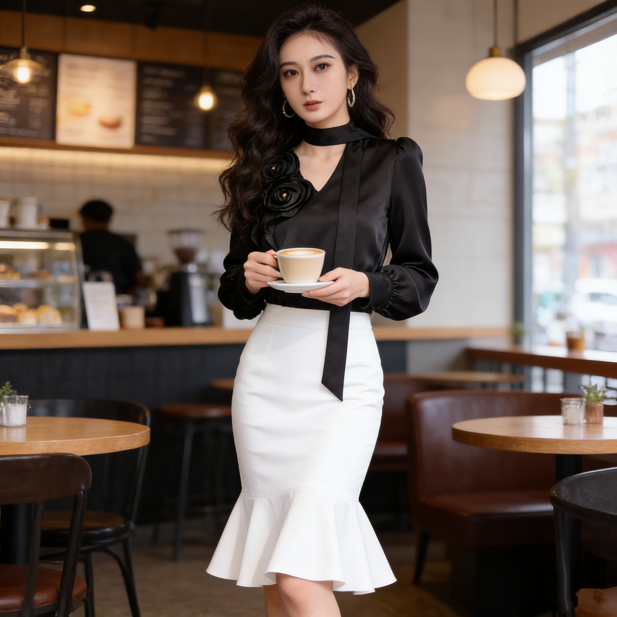 2026 년 봄 출퇴근 바람 새틴 도트 무늬 반신 스커트 여성 몸매 가꾸기 슬림해 보이는 한 마디 싸움 거즈 스커트 다용도 캐주얼 치마