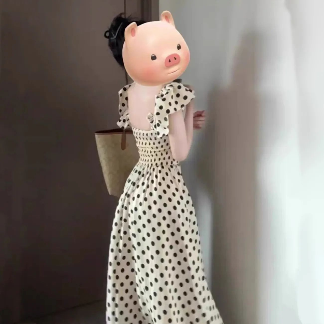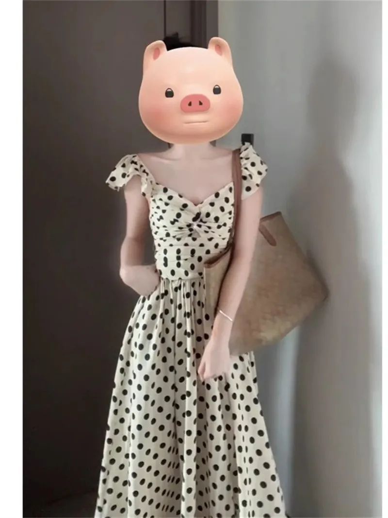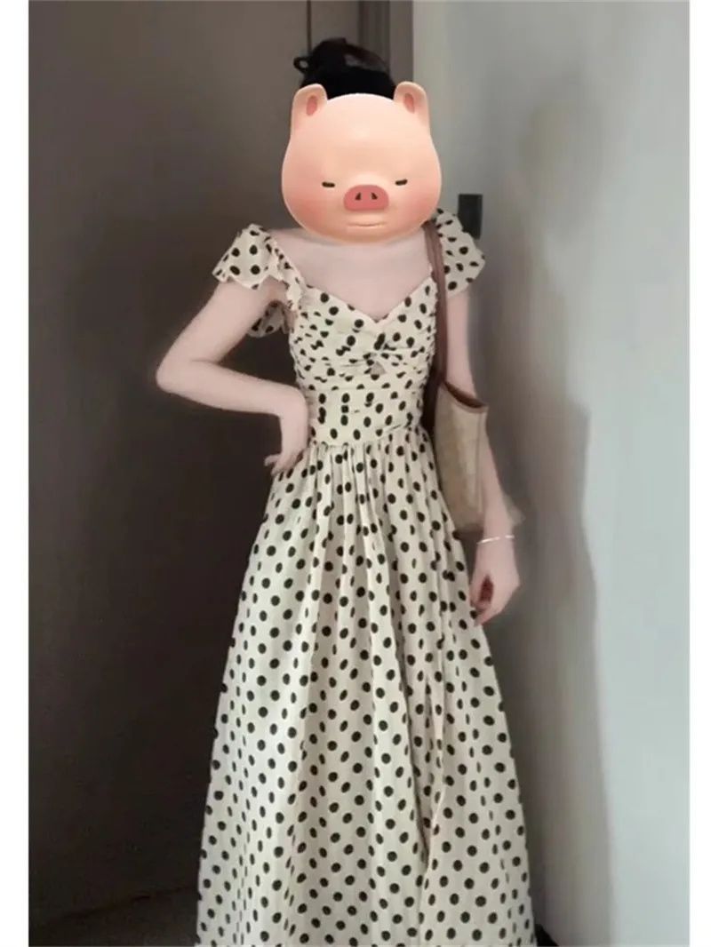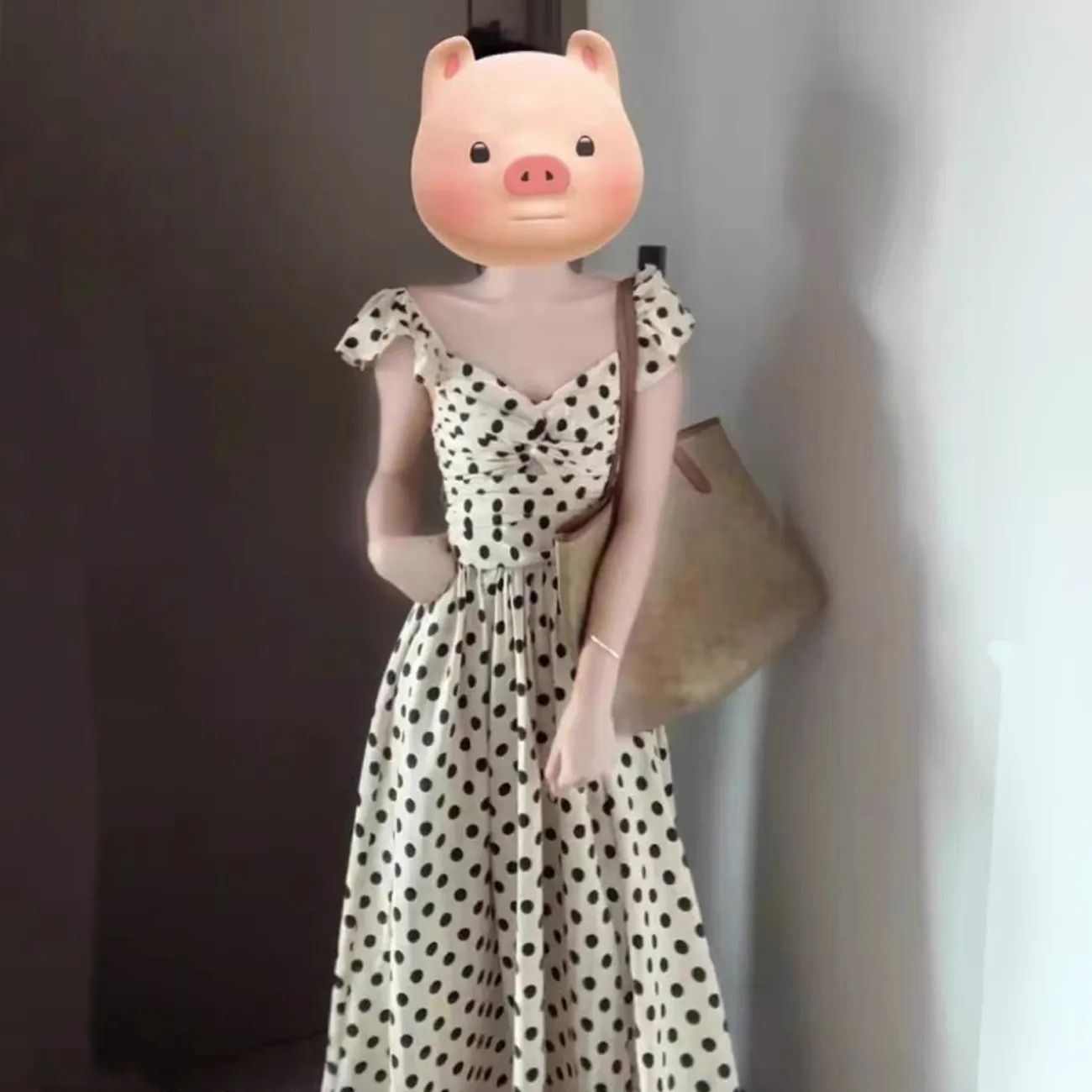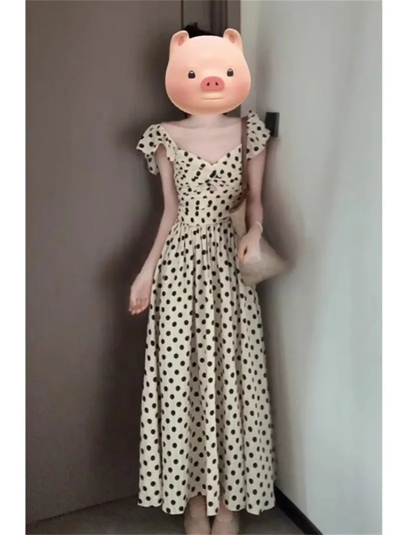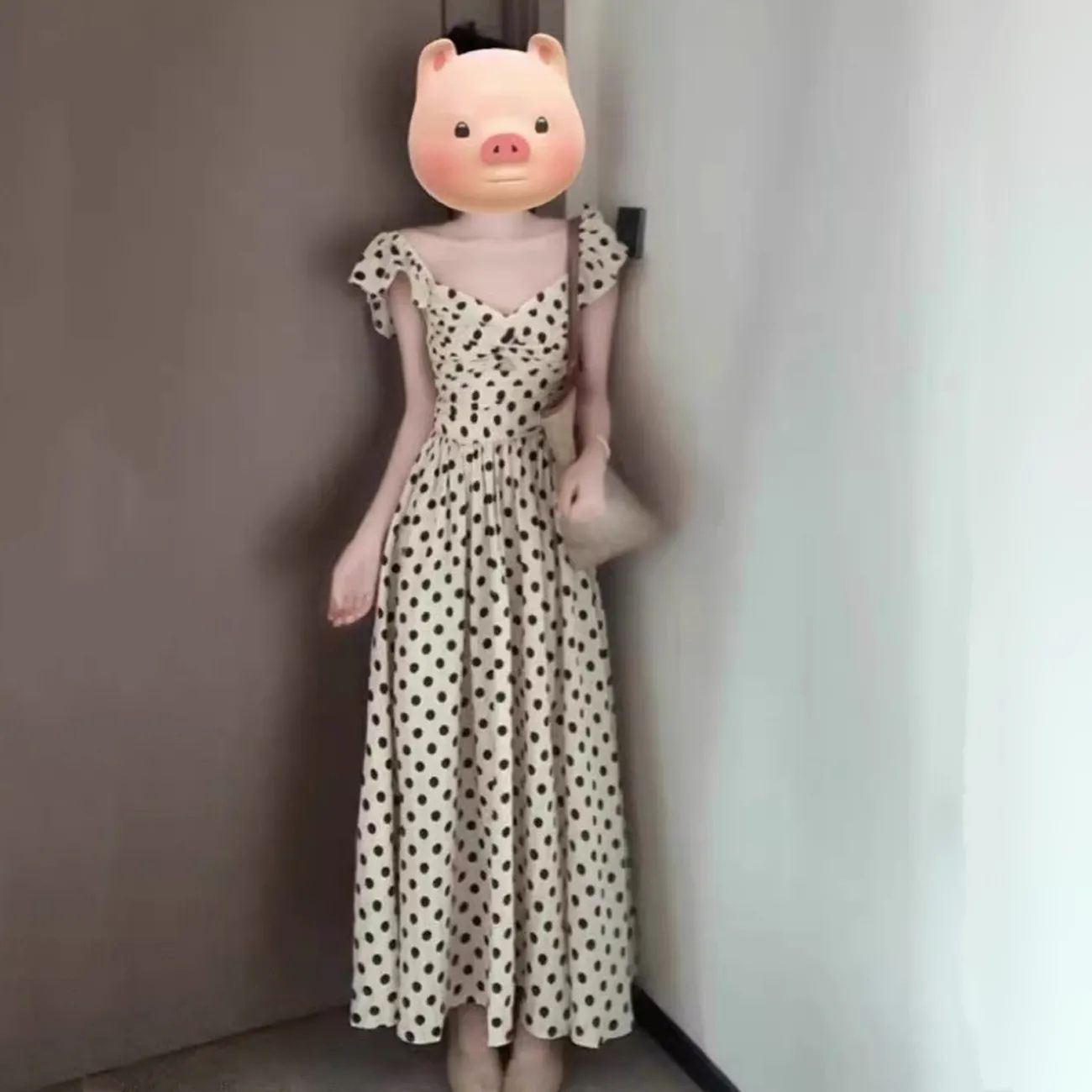 프랑스식 도트 무늬 드레스 여성 의류 여름 고급 센스 해변가 휴가 작은 날다 소매 품격 허리 수축 a 단어 길이 치마