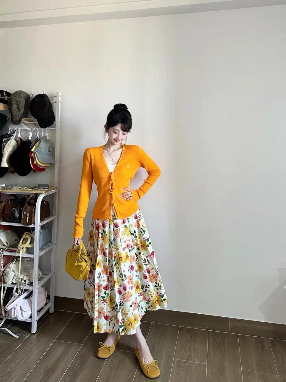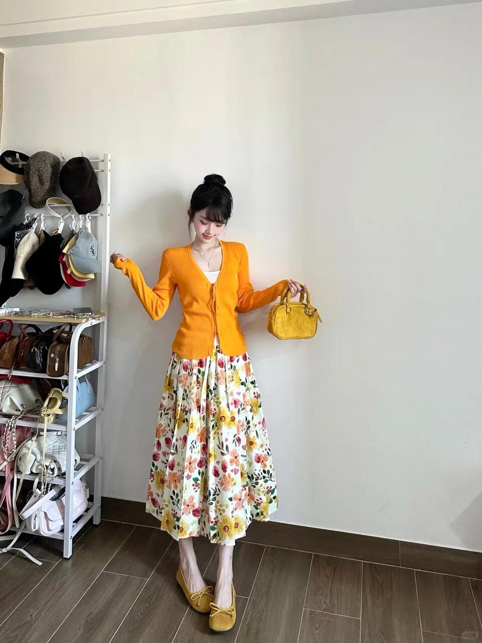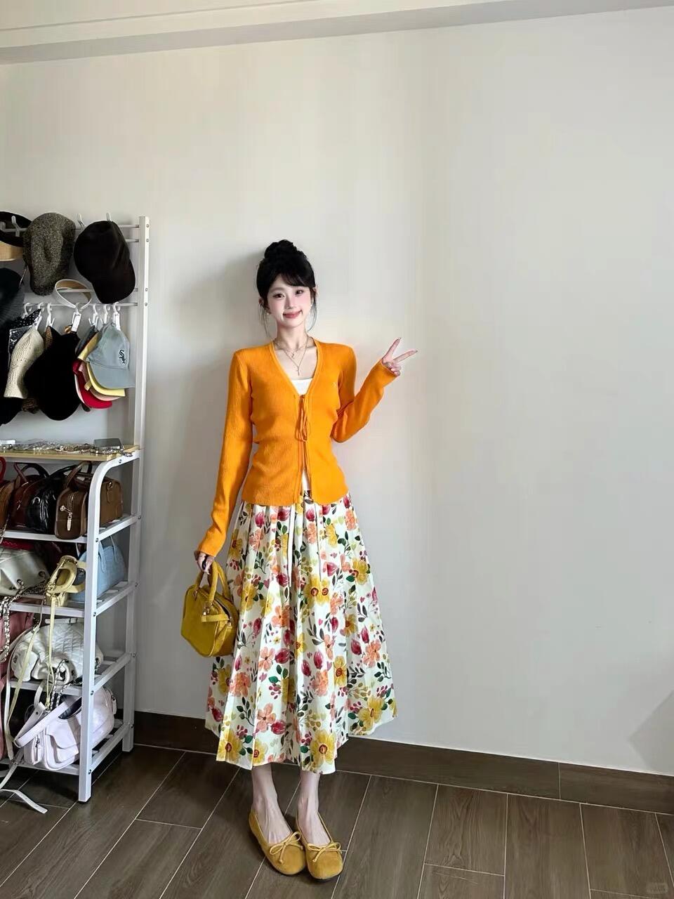 봄 이른 봄 아름다운 반신 치마 세트 예술 건강 밝은 착용 가져 가라. 봄철 오픈 가디건 2026 슈퍼 화재 로드 중 전체 집합