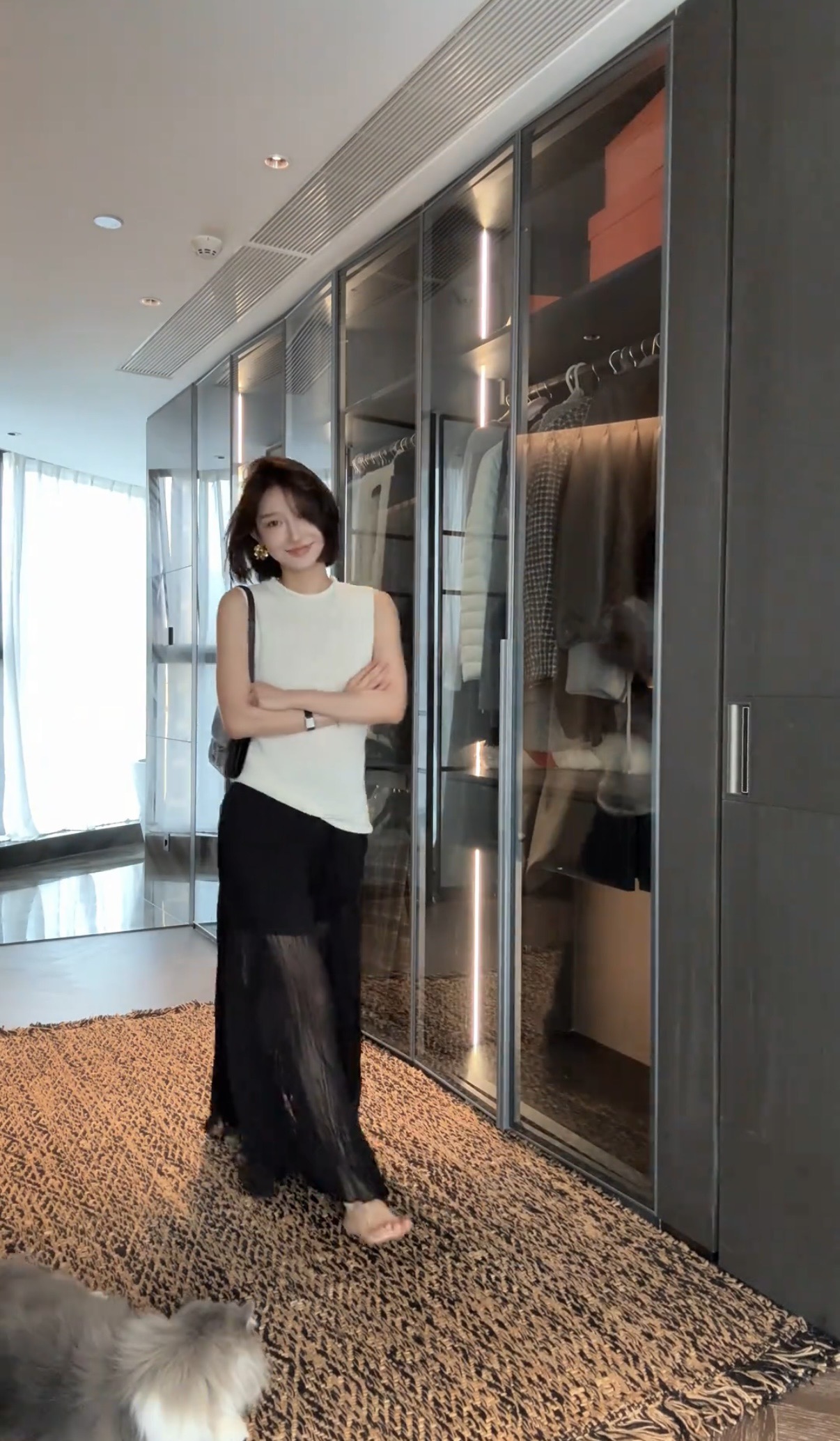 노래 송 봄 여름 새로운 느긋한 슬림해 보이는 느슨함 센스 오픈 가디건 슬립 하이웨이스트 긴 바지 3종 세트 세트