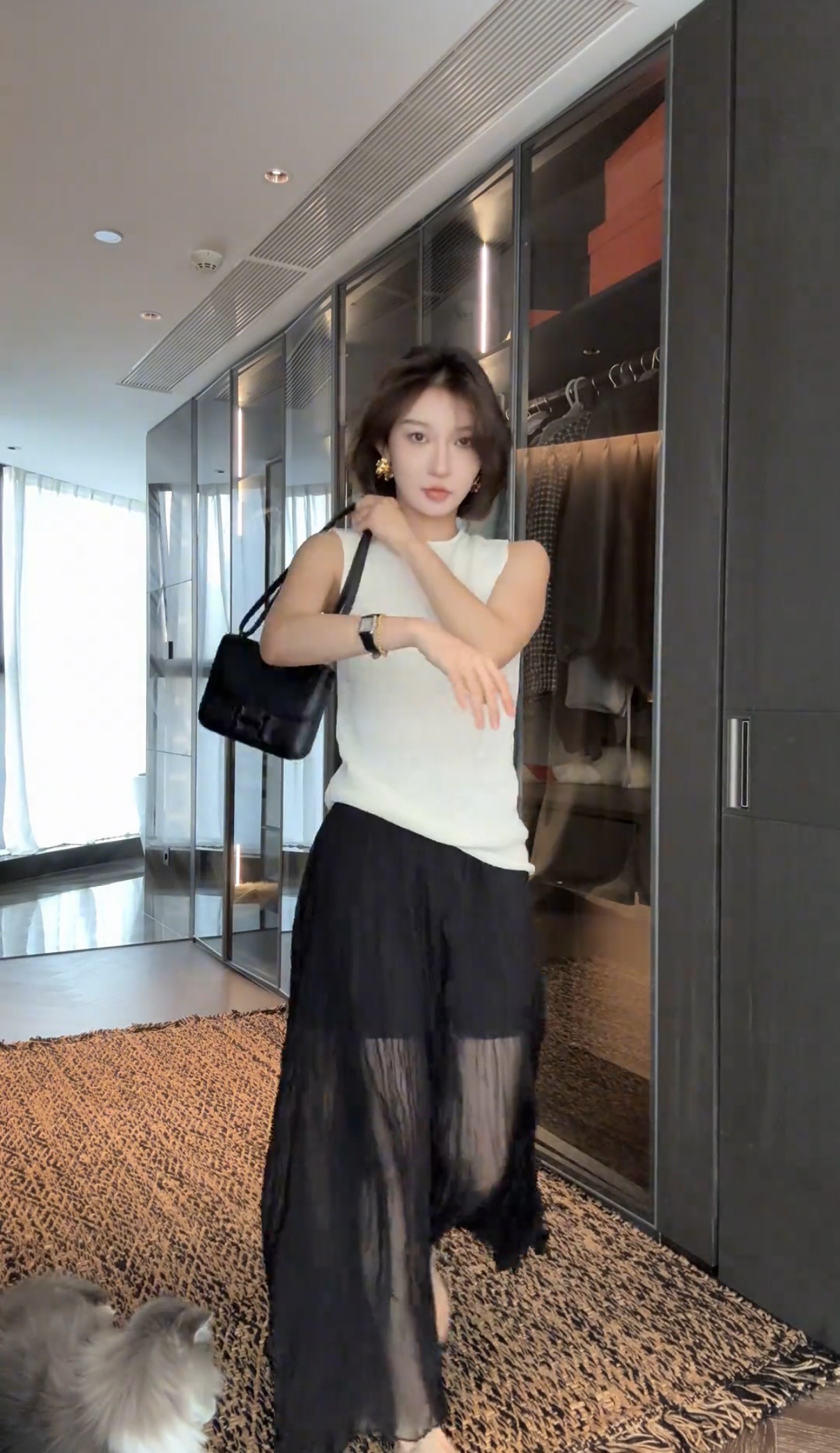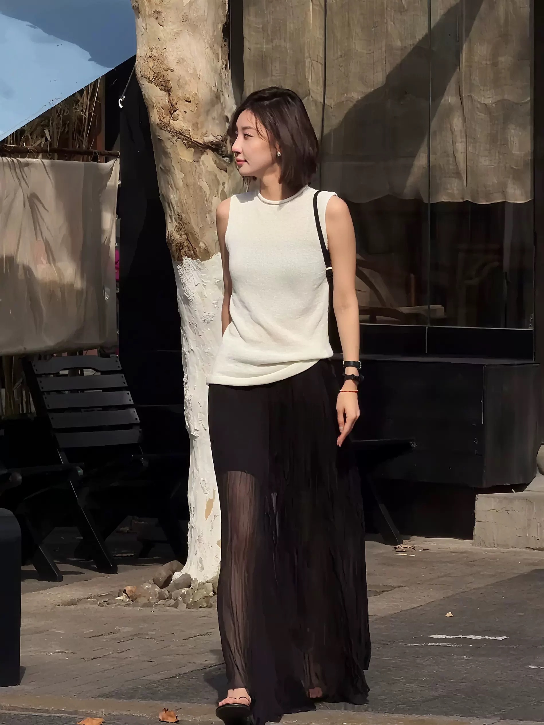 오래된 돈 바람 품격 패션 루즈핏 검정색 맨위 하이웨이스트 반신 스커트 여성 의류 2026 봄 새로운 캐주얼 세트