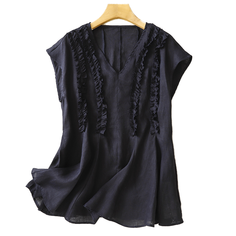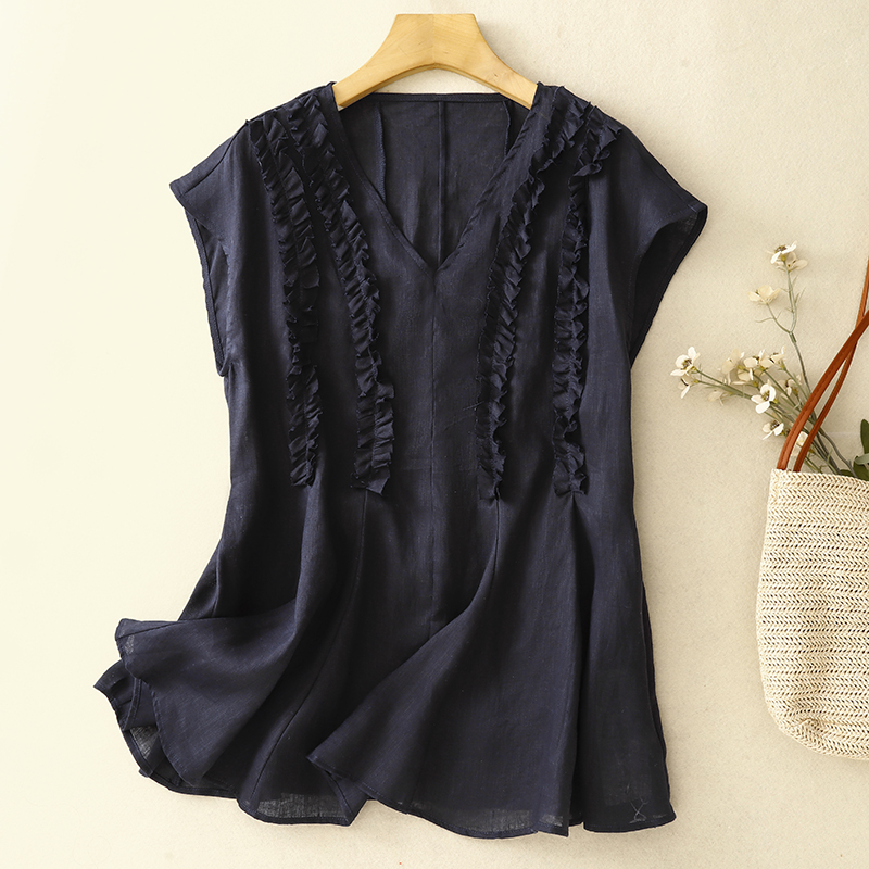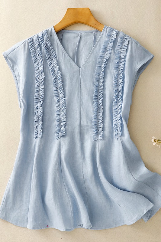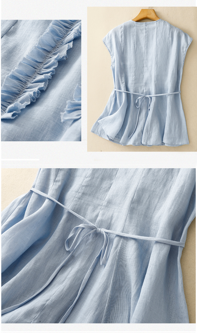 새로운 면 린넨 몸매 가꾸기 민소매 V넥 프릴 맨위 여성 여름 레이스업 외출용 베스트 조끼 품격 작은 셔츠