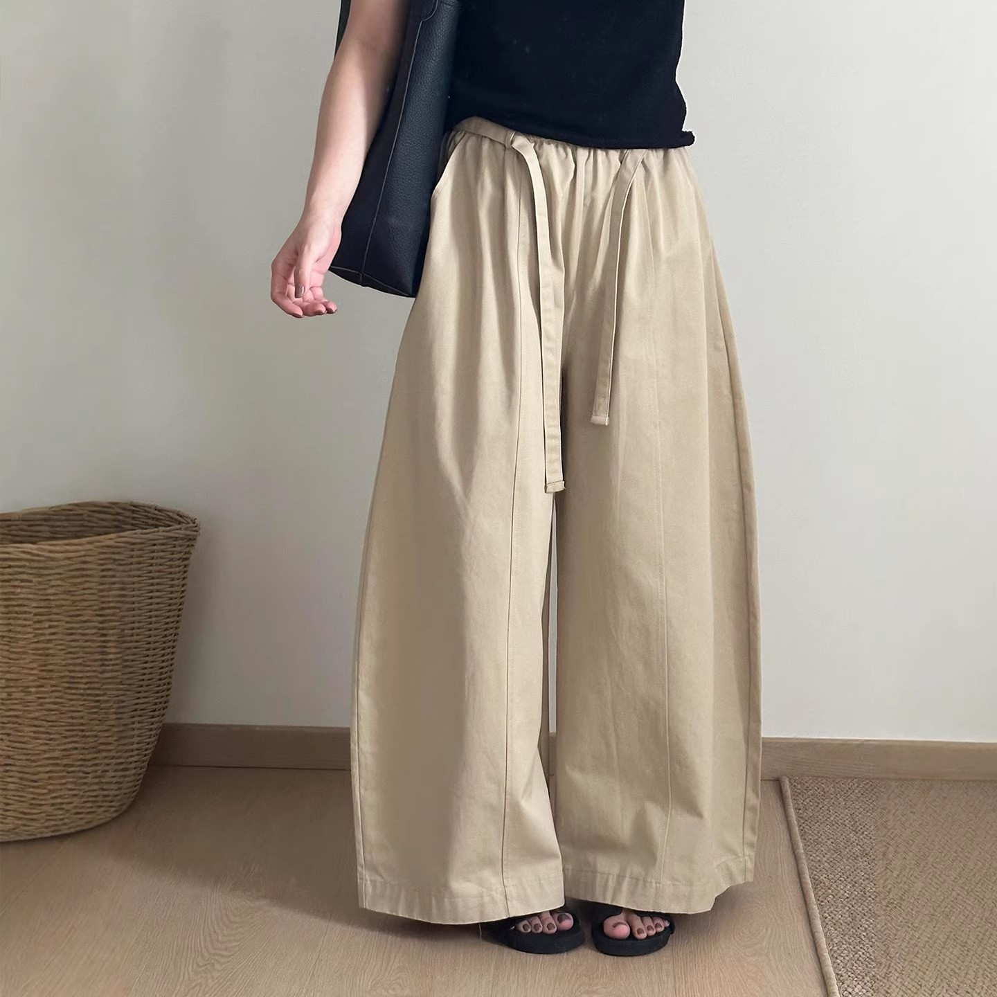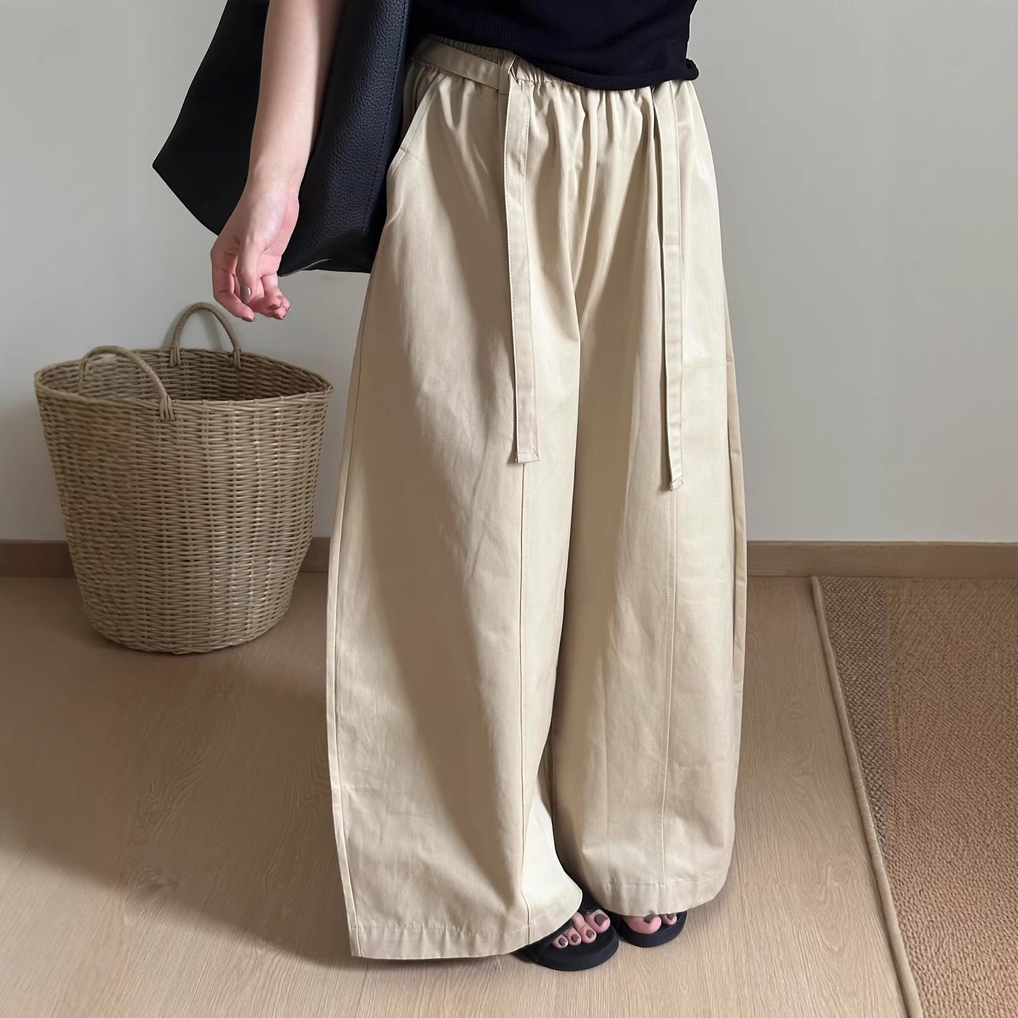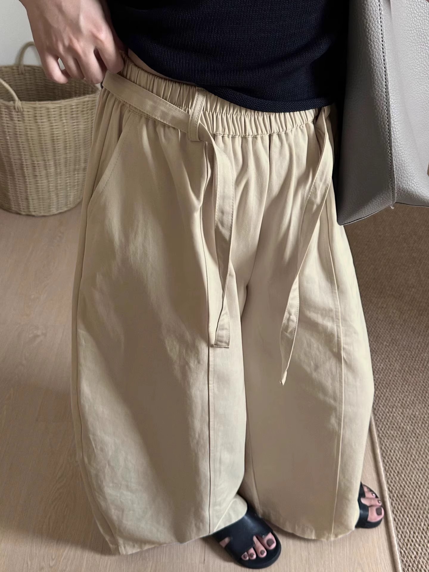 새로운 일본식 레트로 빛 아시아 인 바람 꽃밭 다용도 주름 퍼프 회색 한 마디 무릎 아래 중간 길이 스커트 반신 스커트 여성