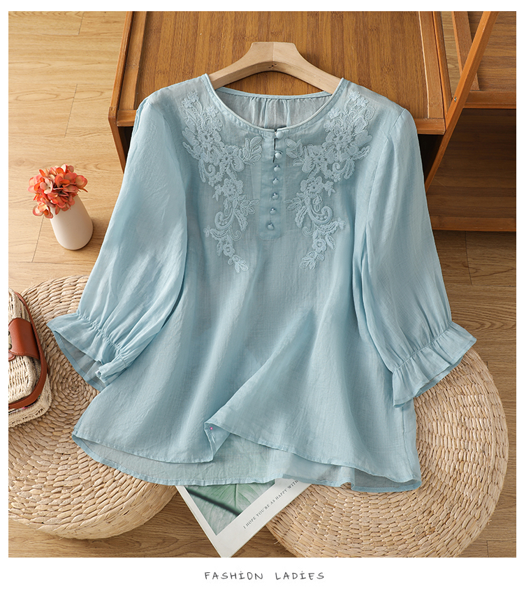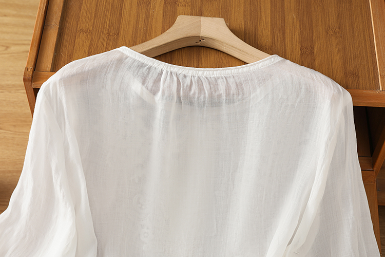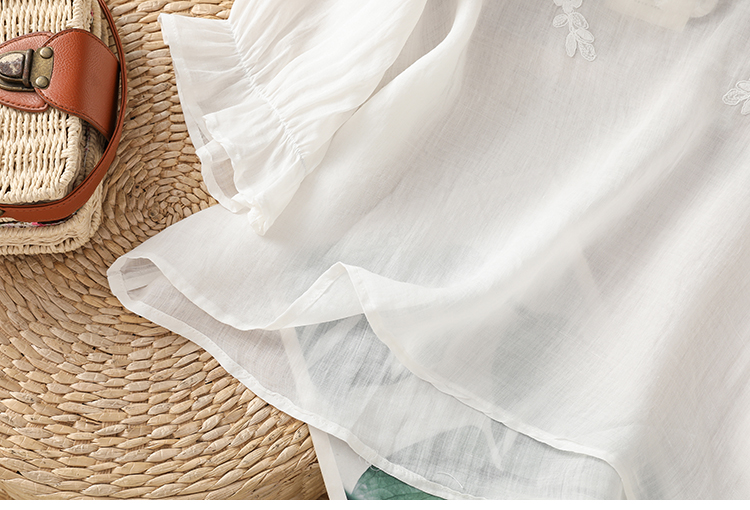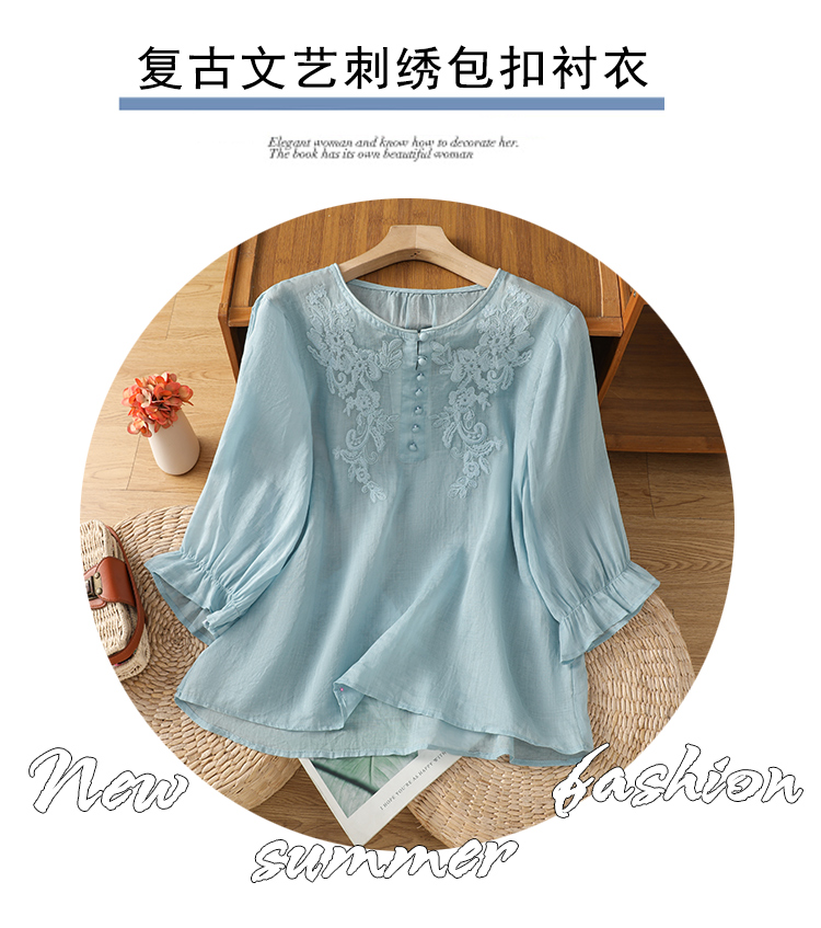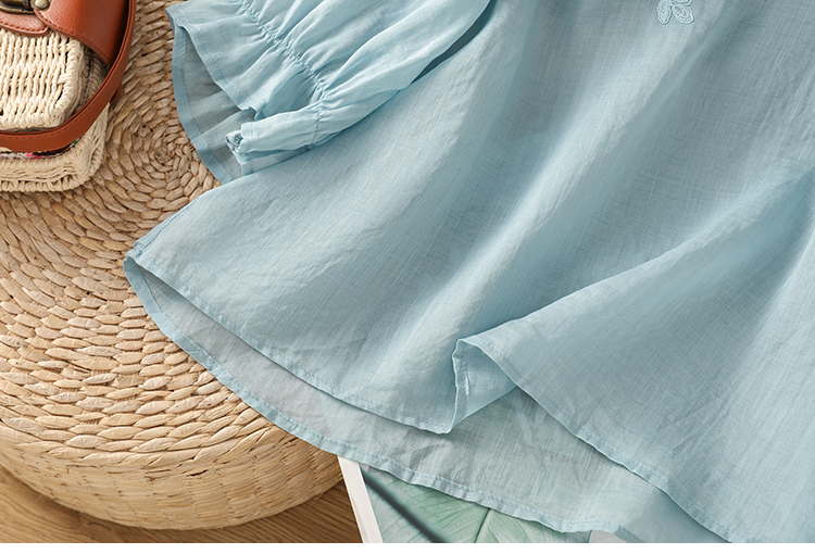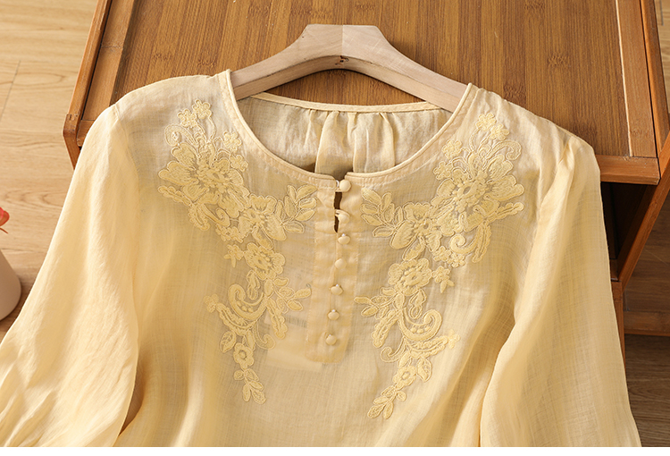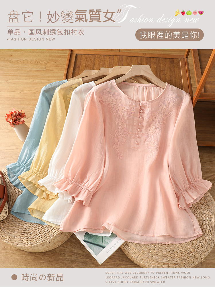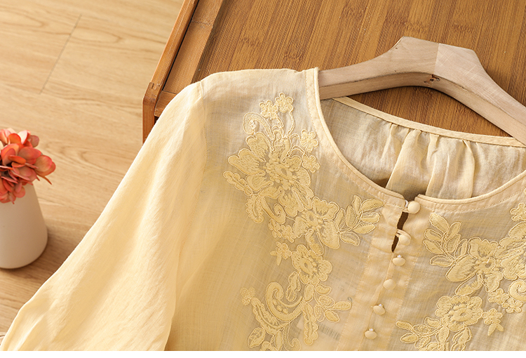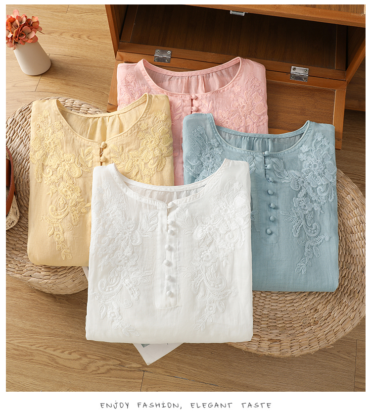 2025 여름 신제품 면 린넨 자수 프랑스식 문예 레트로 도트 무늬 셔츠