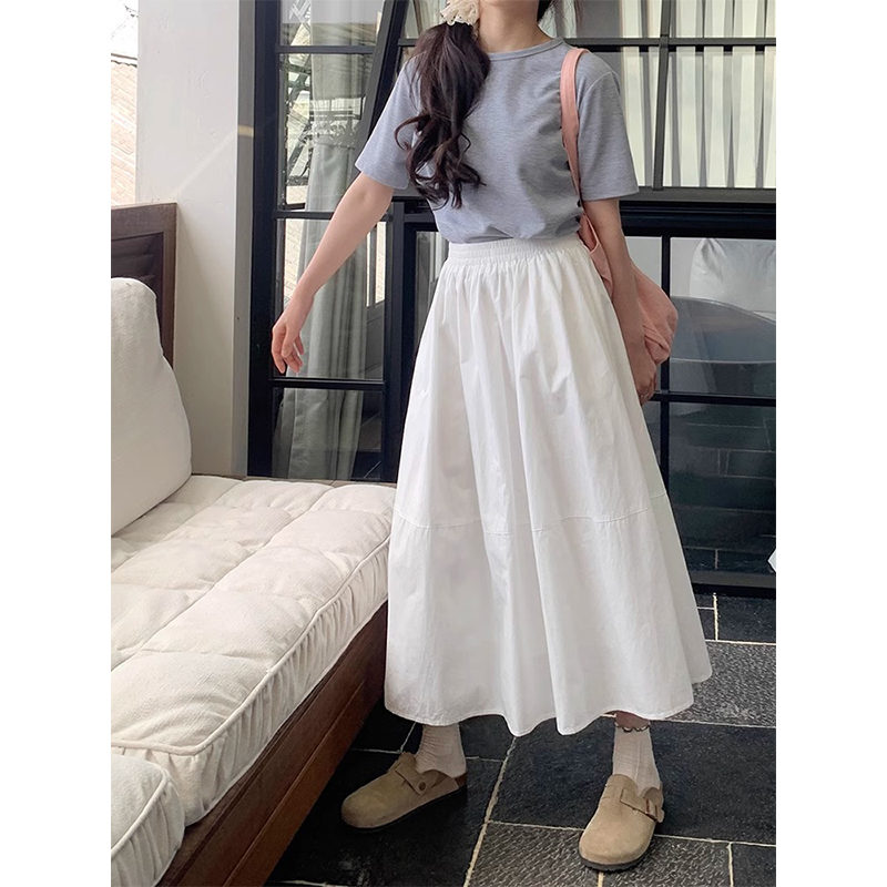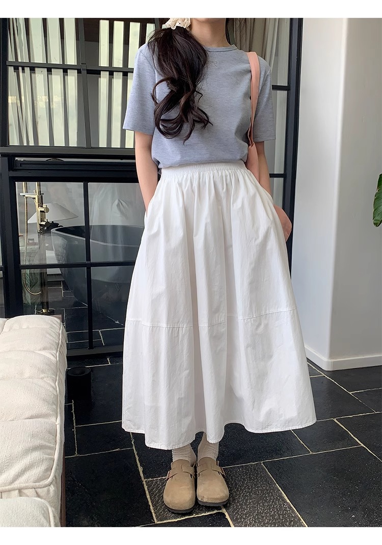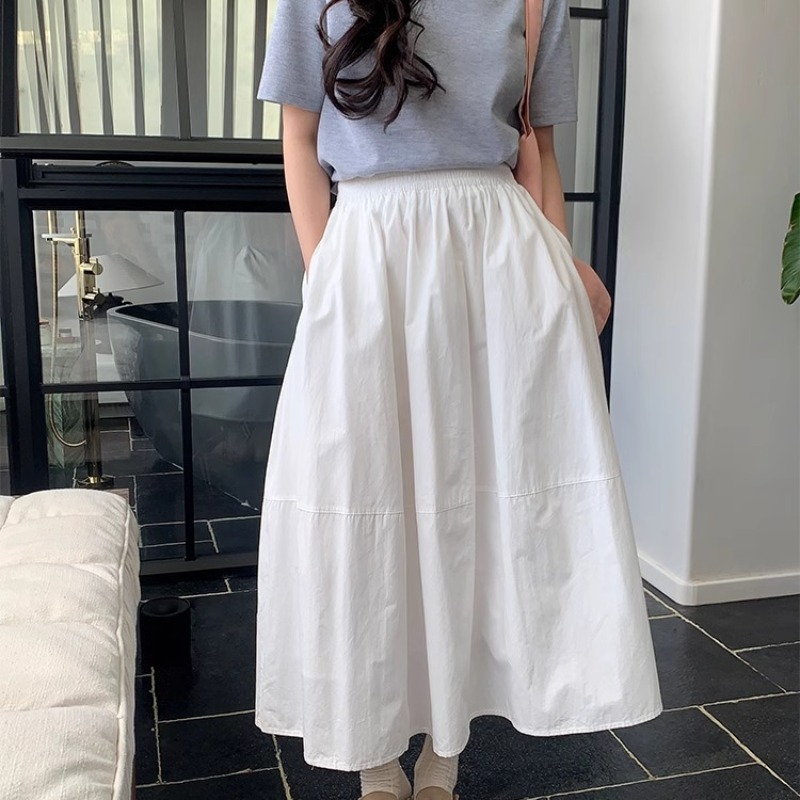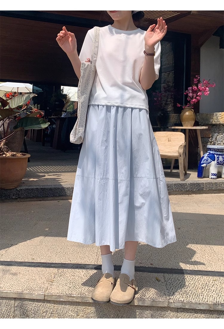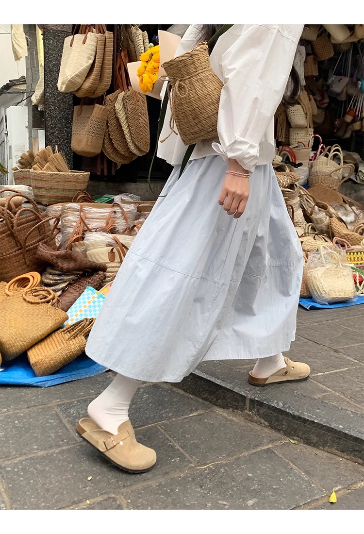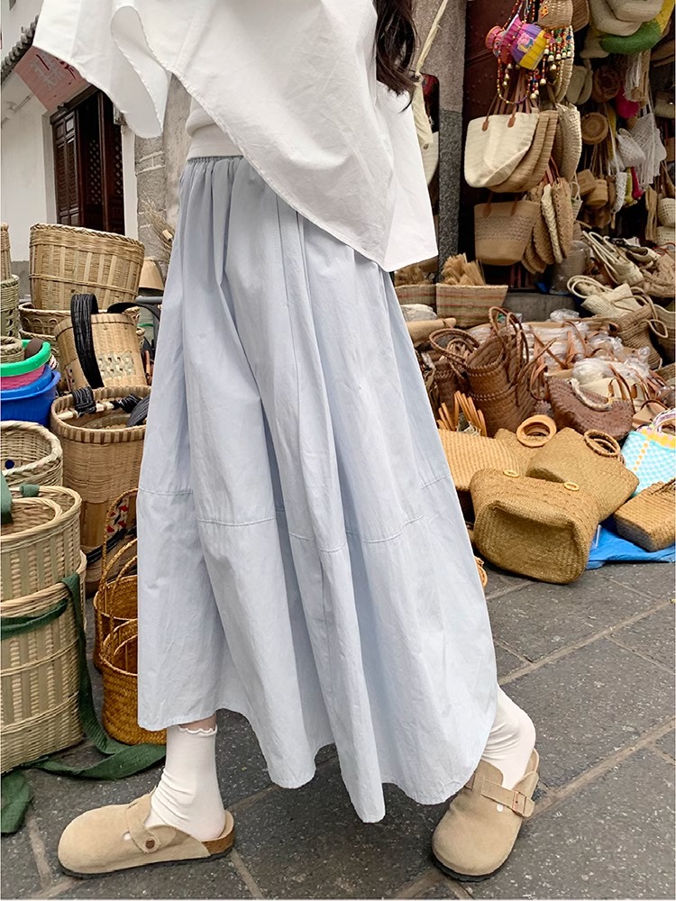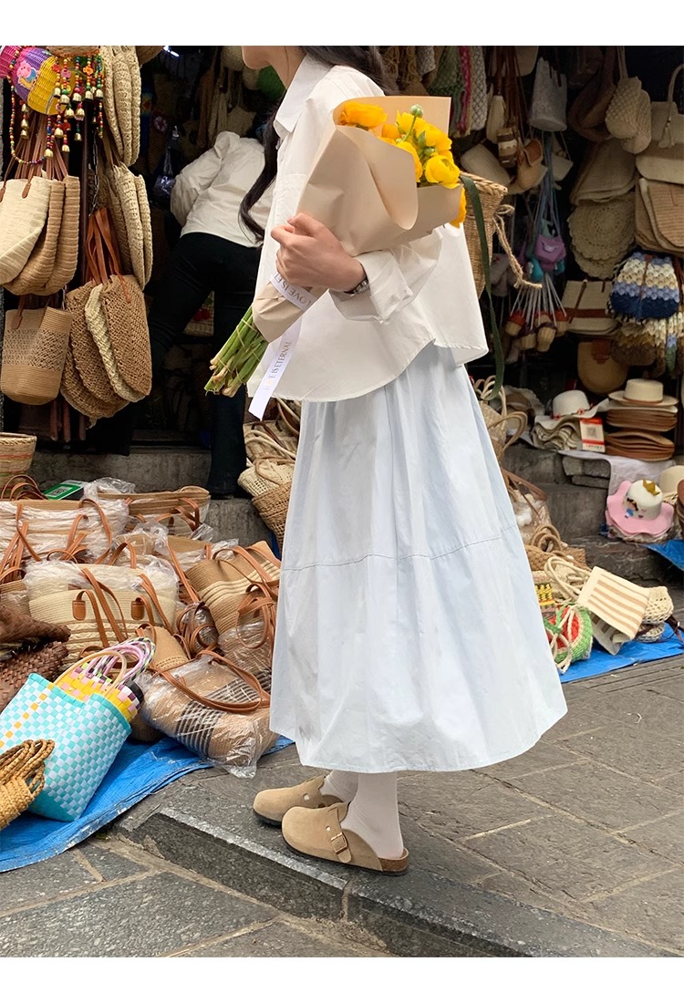 허리밴드 플리츠 파란색 반신 스커트 봄 여름 하이웨이스트 중간 길이 화이트 한 마디 치마 대외 무역 한 싱글 폭발