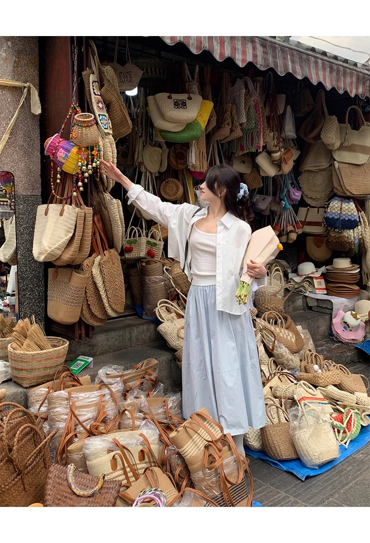 프랑스식 행침 목 품격 레트로 민소매 행침 목 여성 드레스 여름 새로운 휴가 바람 루즈핏 A라인 스커트 롱 스커트