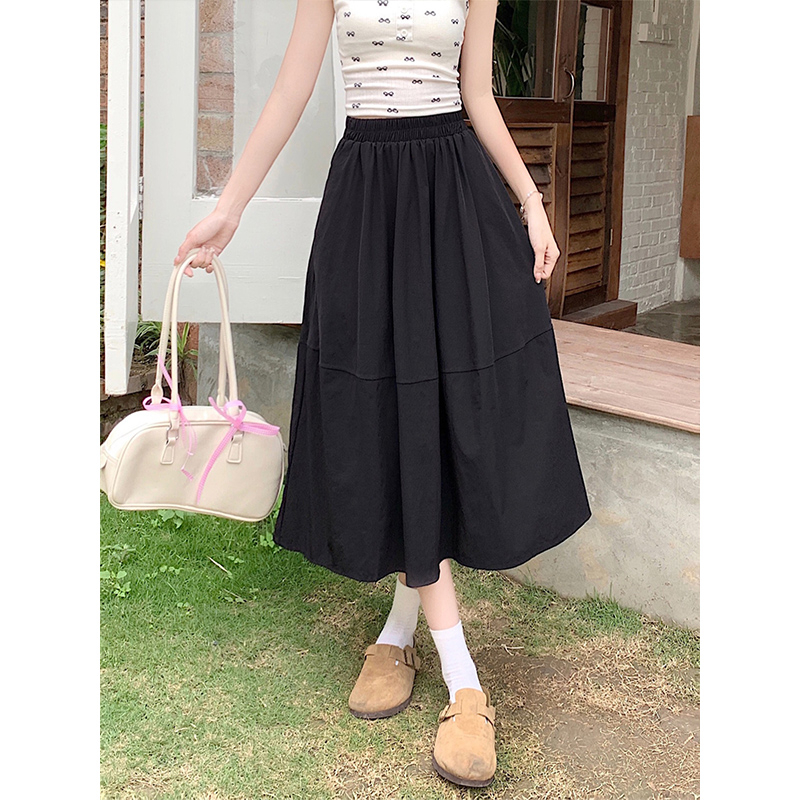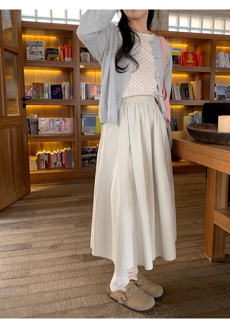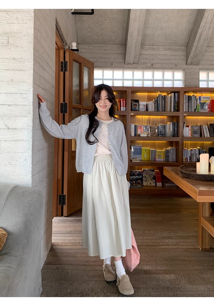 새로운 일본식 레트로 빛 아시아 인 바람 꽃밭 다용도 주름 퍼프 회색 한 마디 무릎 아래 중간 길이 스커트 반신 스커트 여성