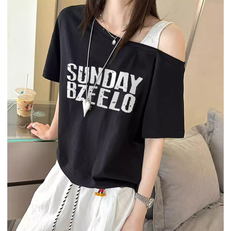 한 부서 오프숄더 페이크 레이어드 긴팔 티셔츠 여성 2026 봄 새로운 빅 사이즈 지방 mm 몸매 가꾸기 허리 수축 만나는 맨위