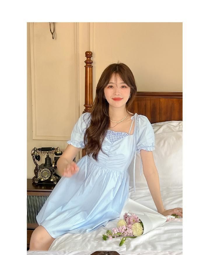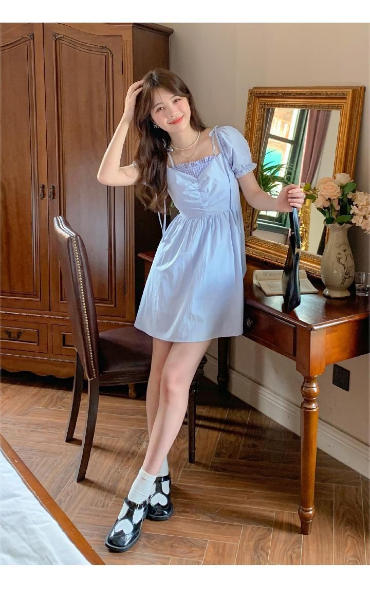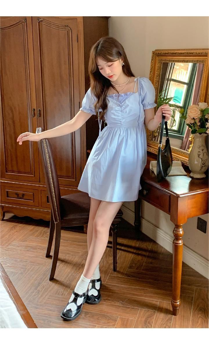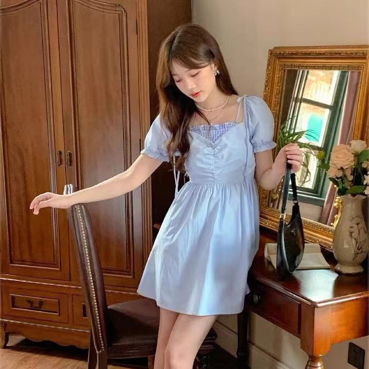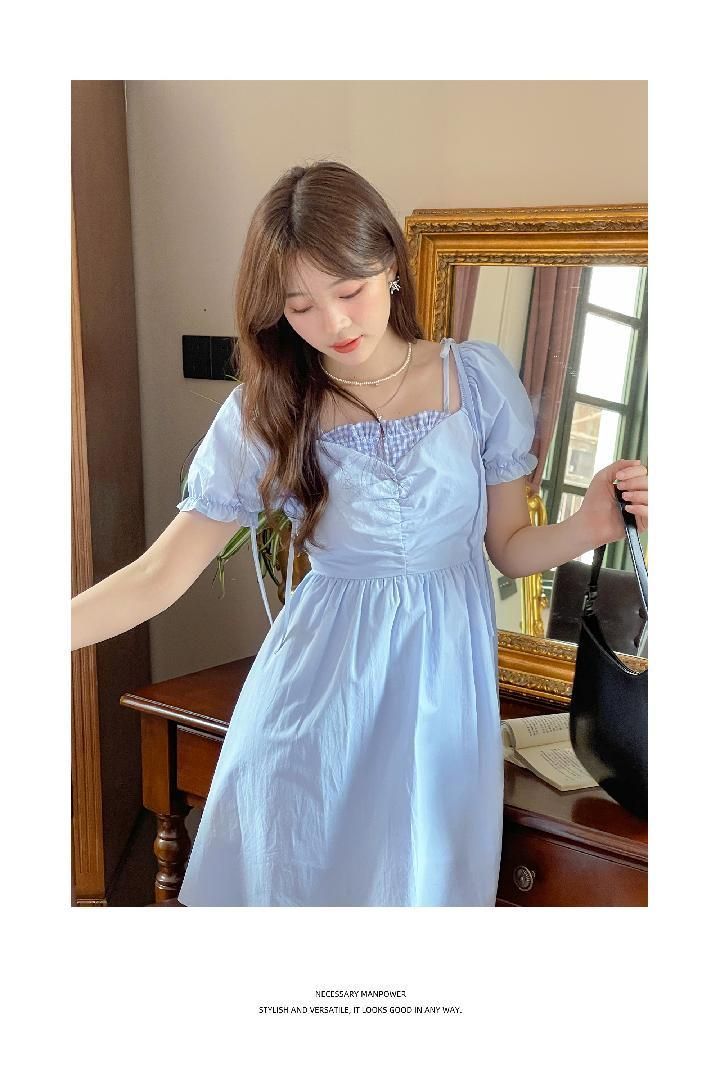 여름 2026 새로운 루즈핏 레트로 조끼 작은 날다 소매 드레스 달콤함 체크무늬 학원 작은 키 미니 스커트