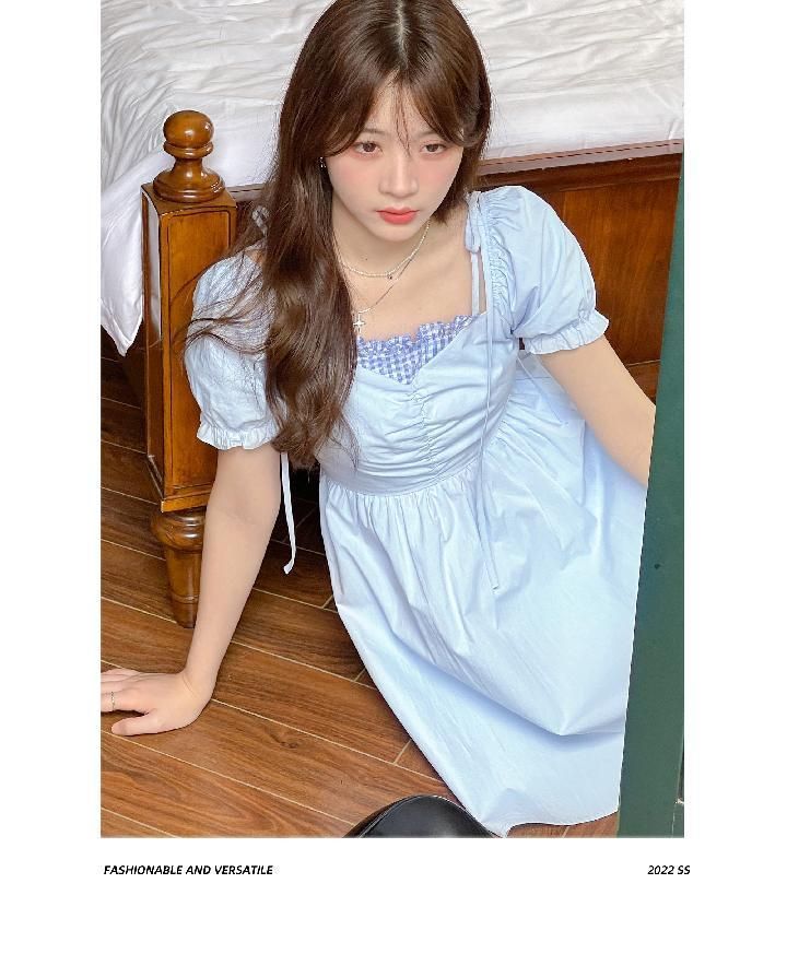 원본 것 있음 네리 프랑스식 쉬폰 패치워크 A라인 스커트 허리 수축 몸매 가꾸기 Feifei 소매 서리가 내린 바람 여성 드레스
