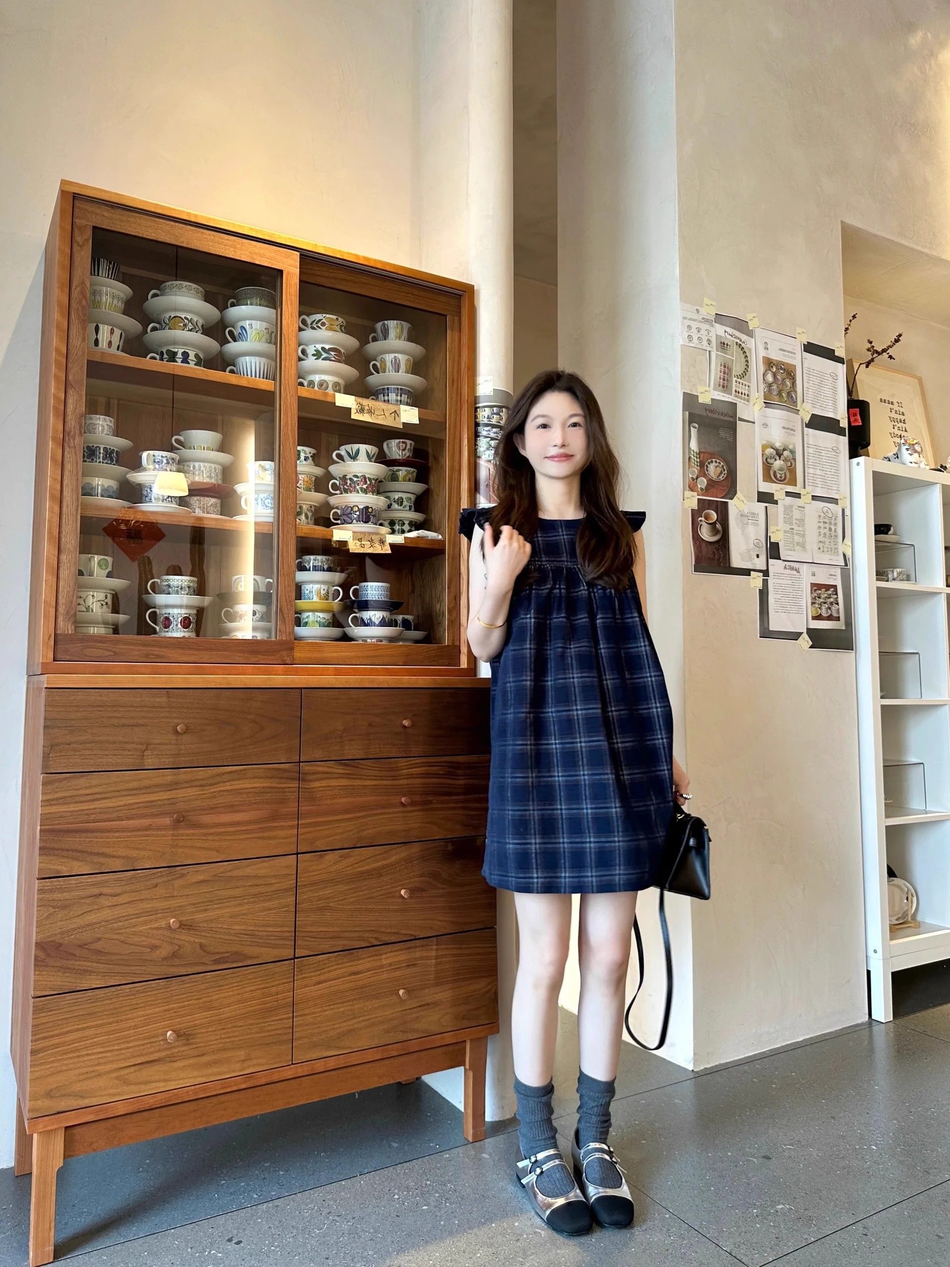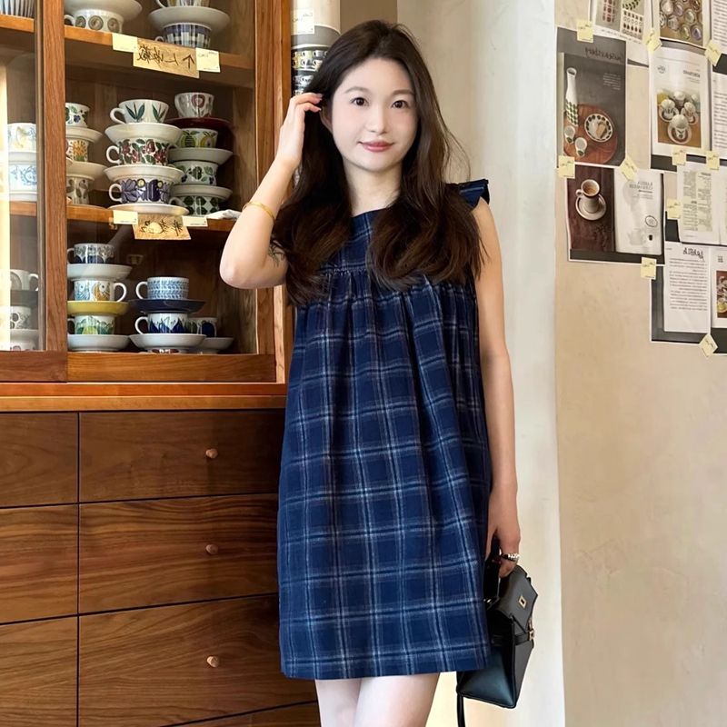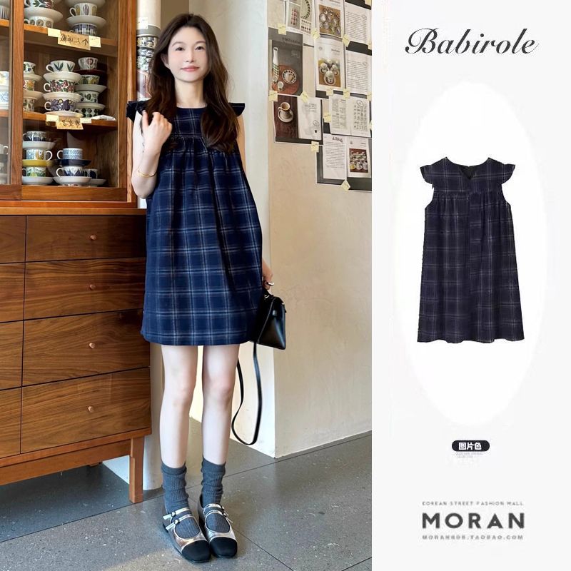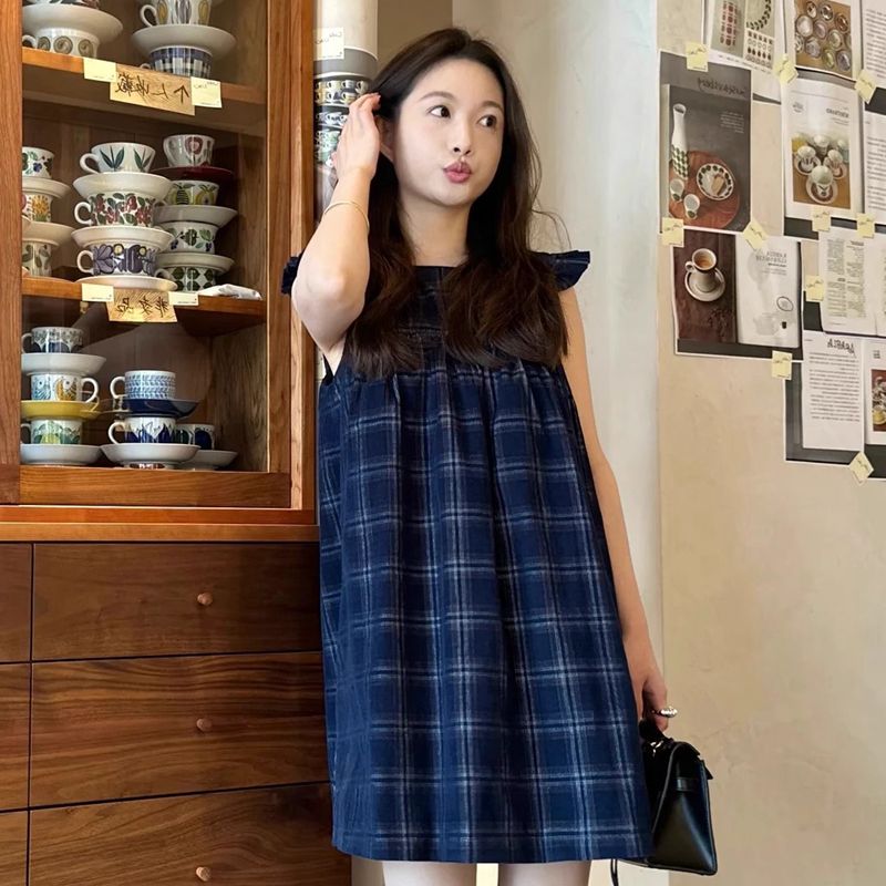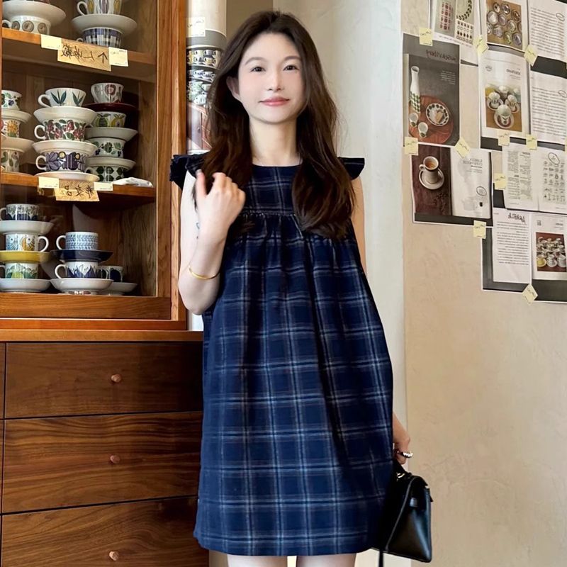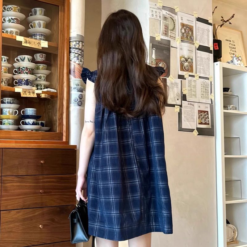 여름 2026 새로운 루즈핏 레트로 조끼 작은 날다 소매 드레스 달콤함 체크무늬 학원 작은 키 미니 스커트