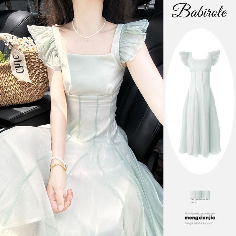 2026 새로운 페이크 레이어드 스트랩 나비 매듭 여성 드레스 봄 달콤한 미국 칼라 허리 수축 슬림해 보이는 숙녀 치마
