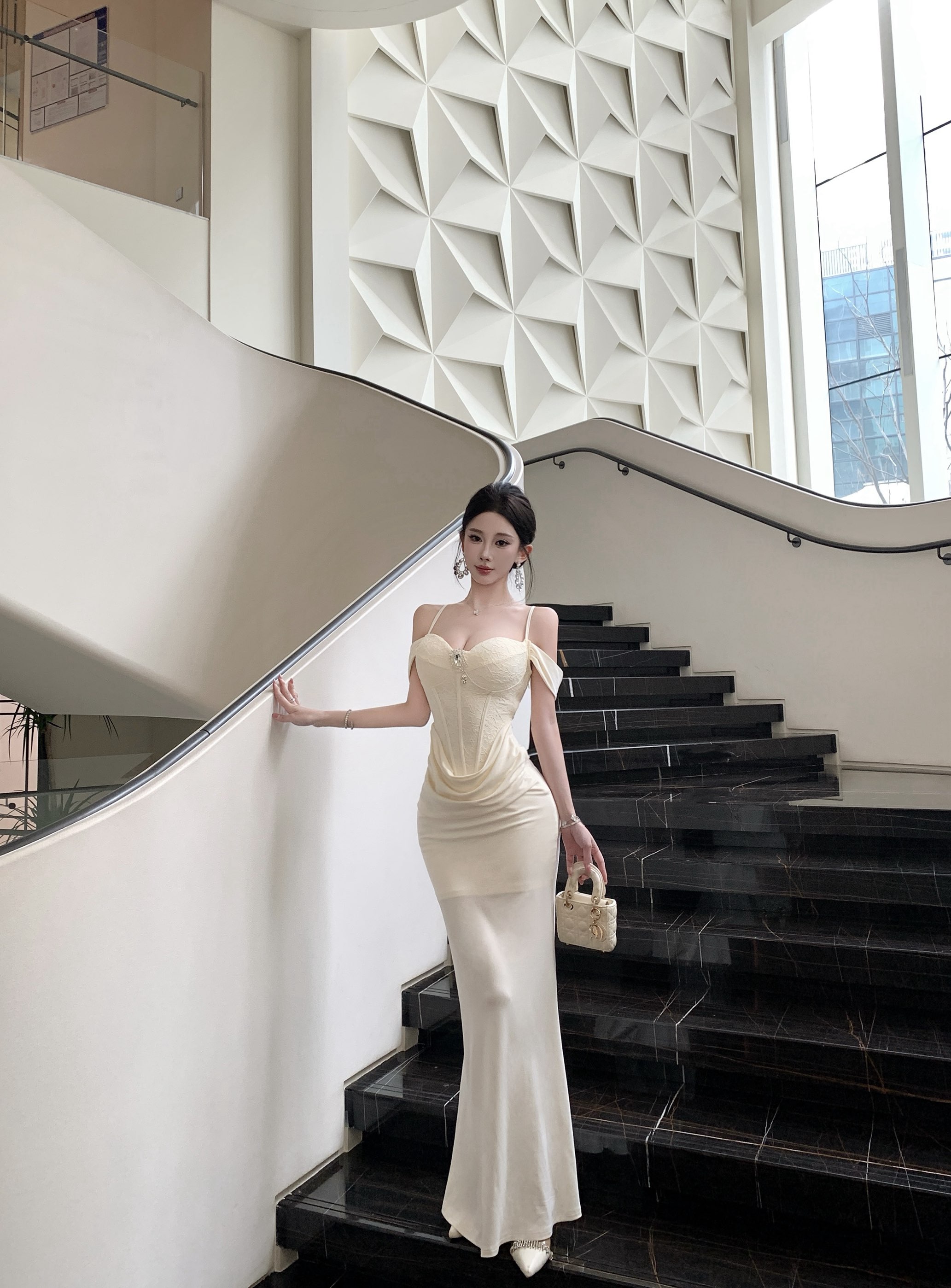 실사 정가 핫걸 고급 센스 무거운 작업 체인 행침 목 이브닝 드레스