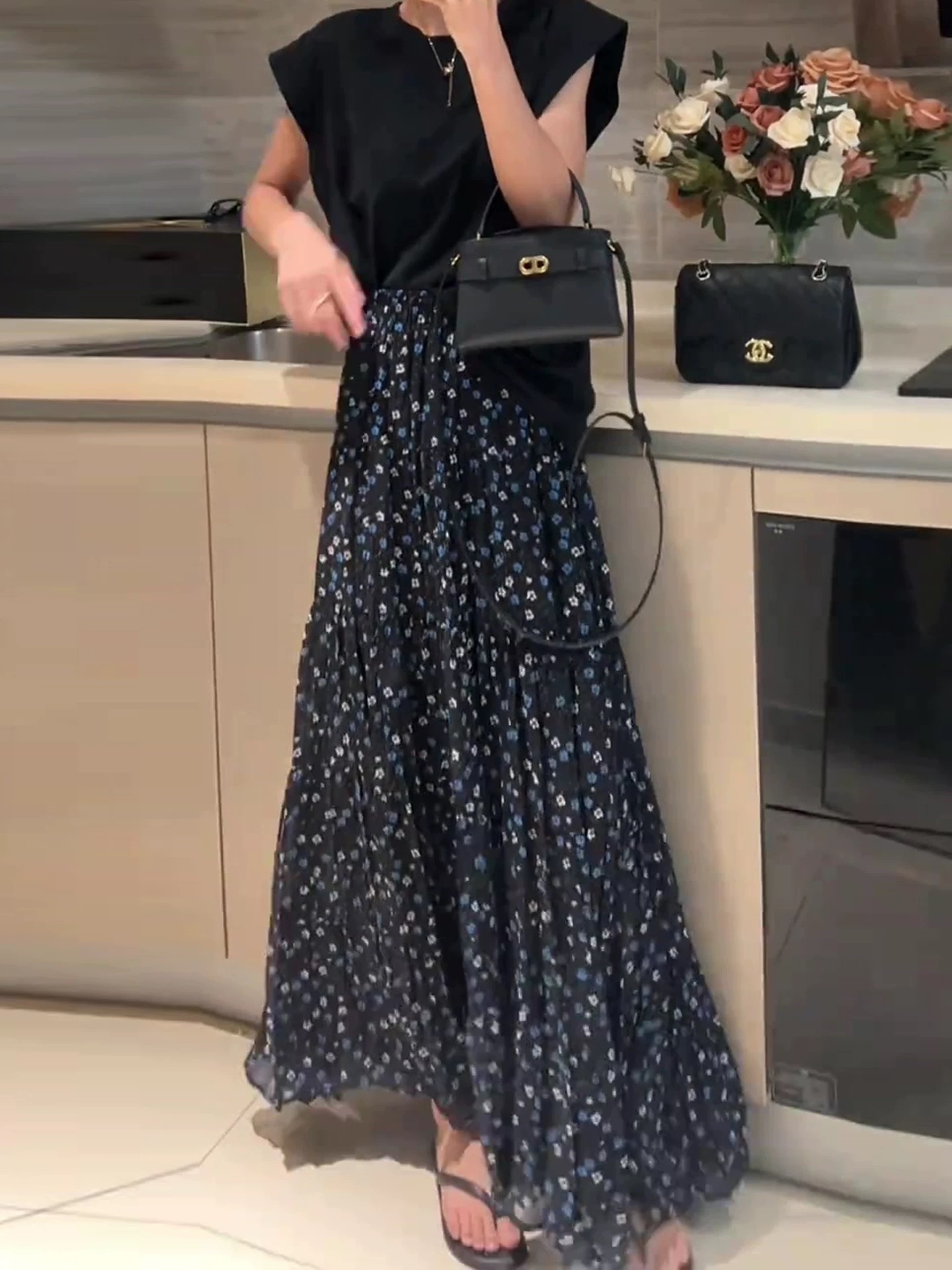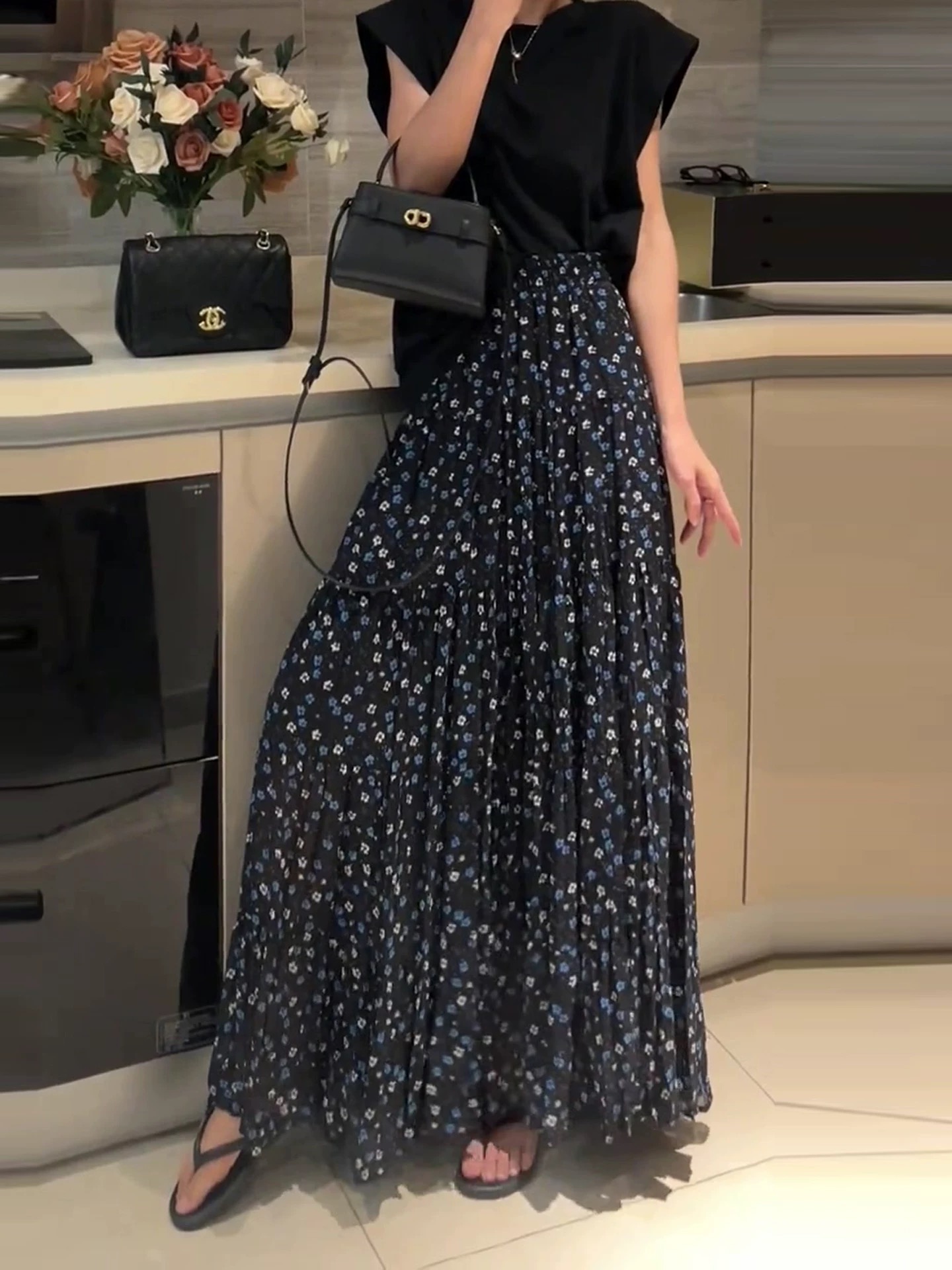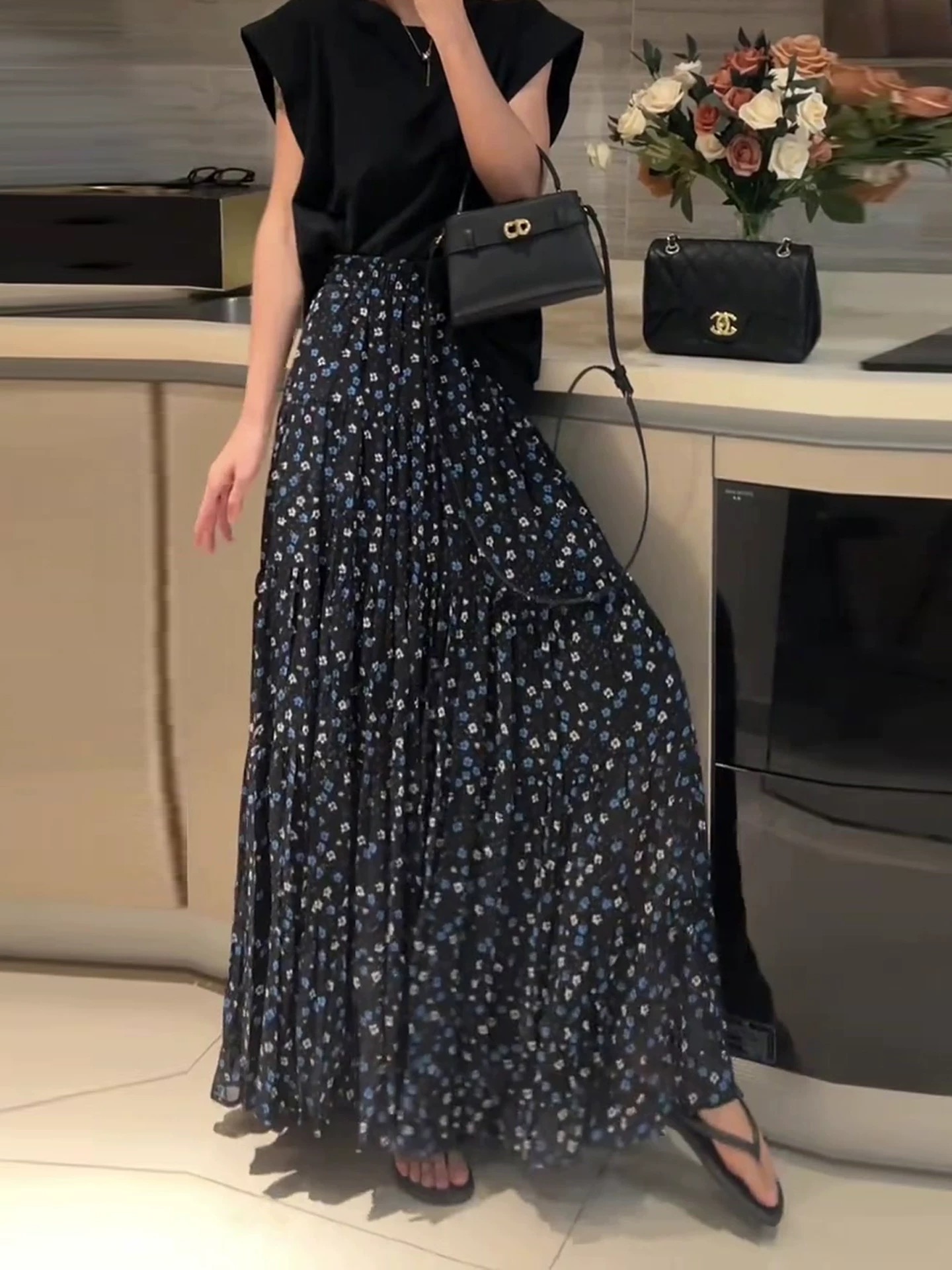 부드러운 바람 꽃무늬 쉬폰 반신 스커트 여성 2026 여름 새로운 다용도 도루 센스 큰 진자 롱 스커트 하이웨이스트 A라인 스커트