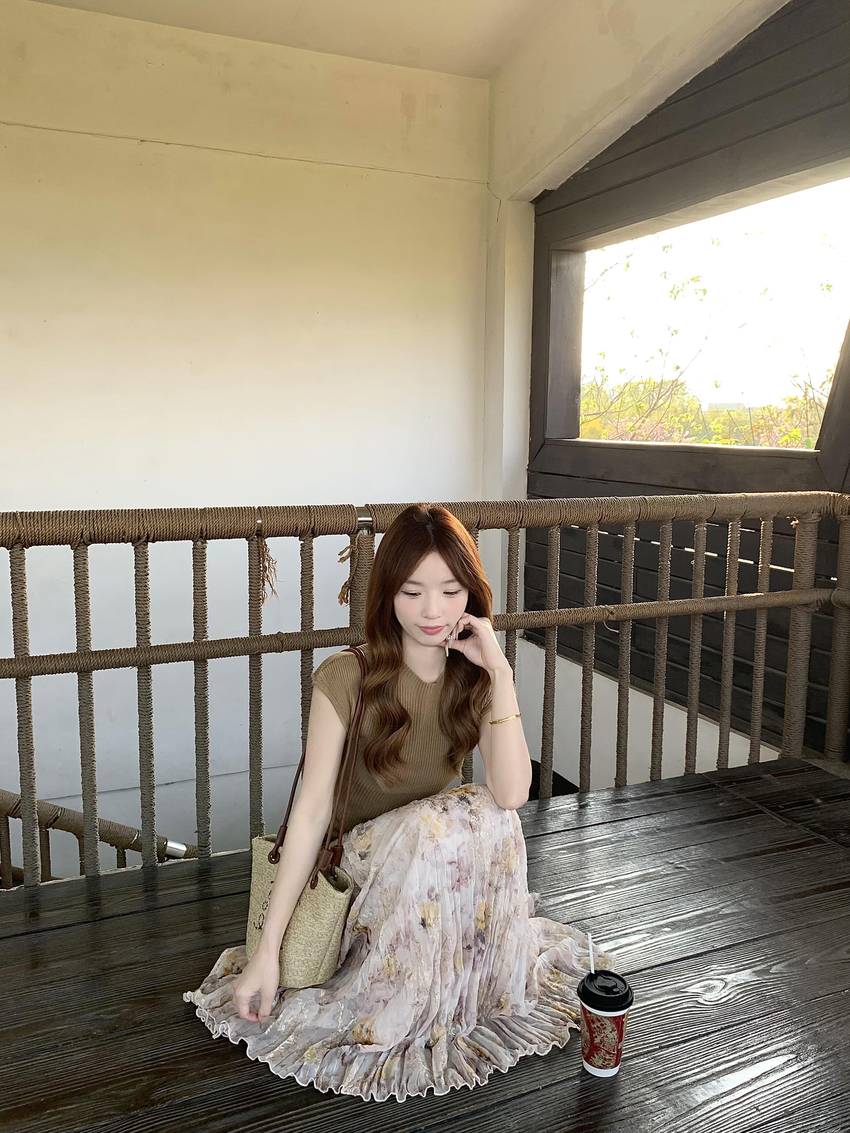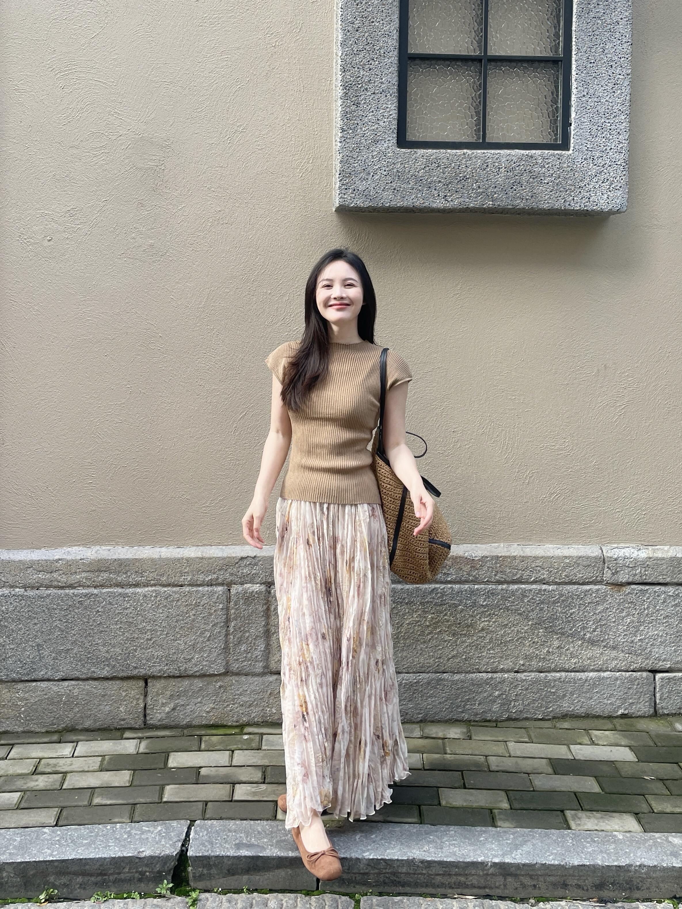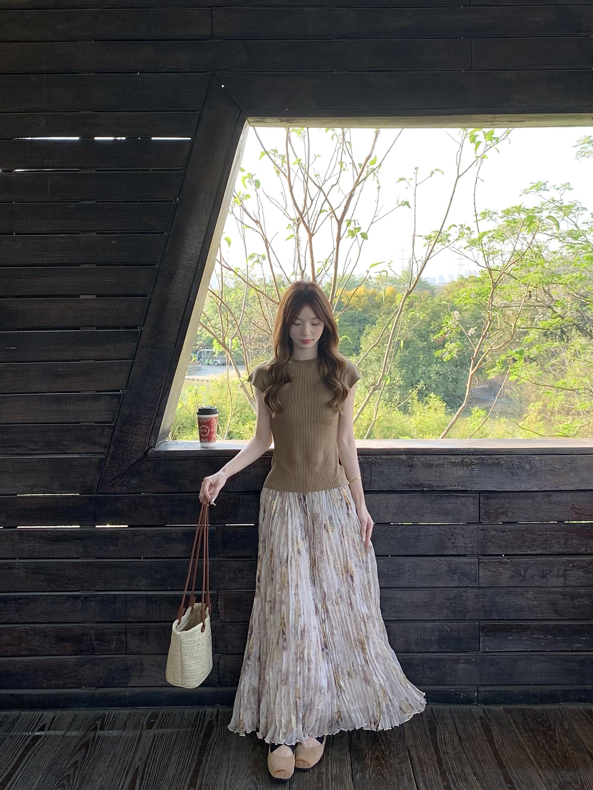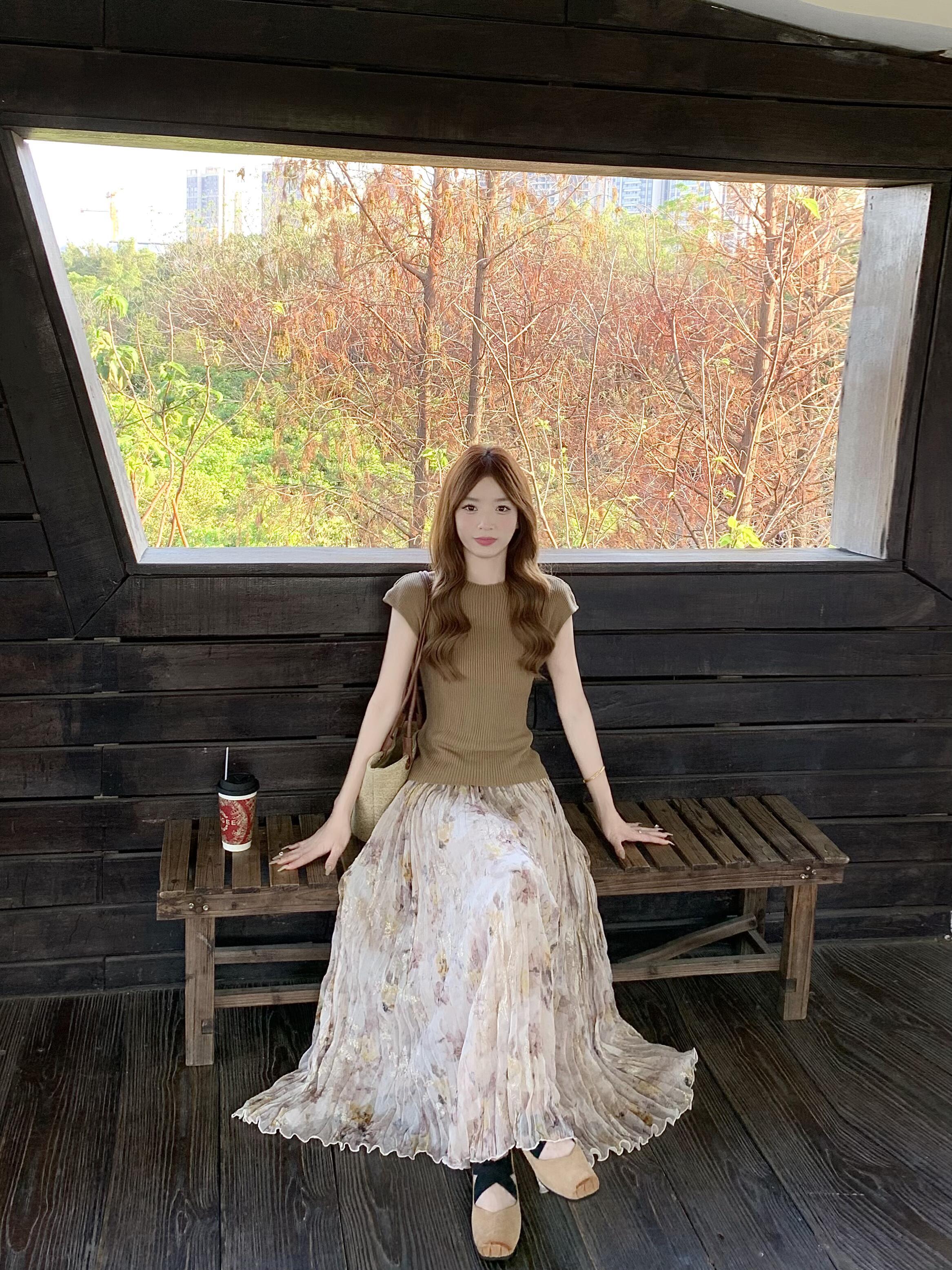 정원 실루엣 플리츠 꽃무늬 반신 스커트 여성 여름 디자인 센스 플리츠 스커트