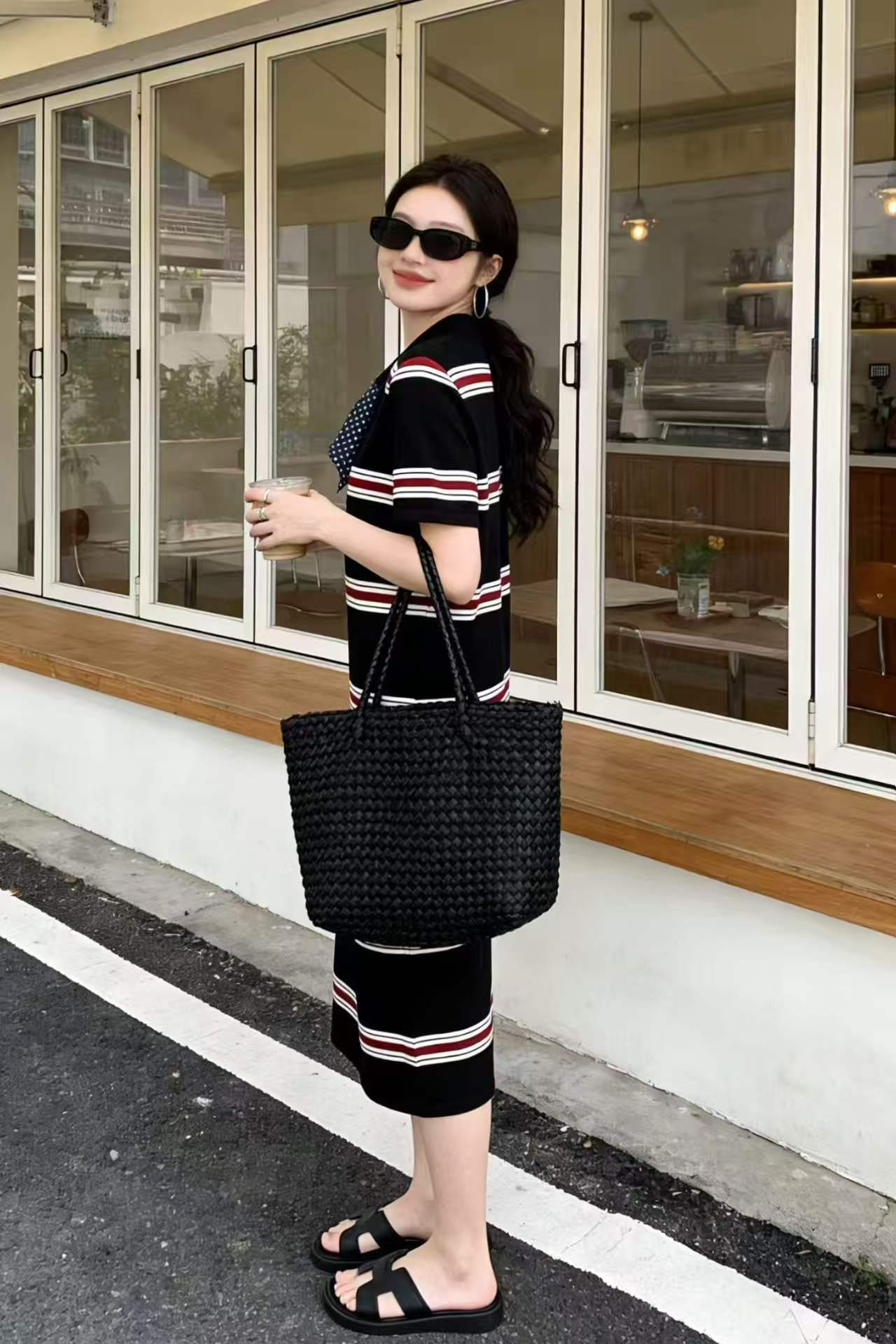 출산 착용 2026 여름 패션 스트라이프 니트 임산부 드레스 한국 스타일 루즈핏 표지 배 롱 코트