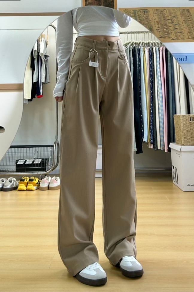 카키 색 느슨함 고급 센스 웨스트 와이드 다리 길이 바지 여성 26 봄 여름 하이웨이스트 슬림해 보이는 캐주얼 스트레이트 슬랙스