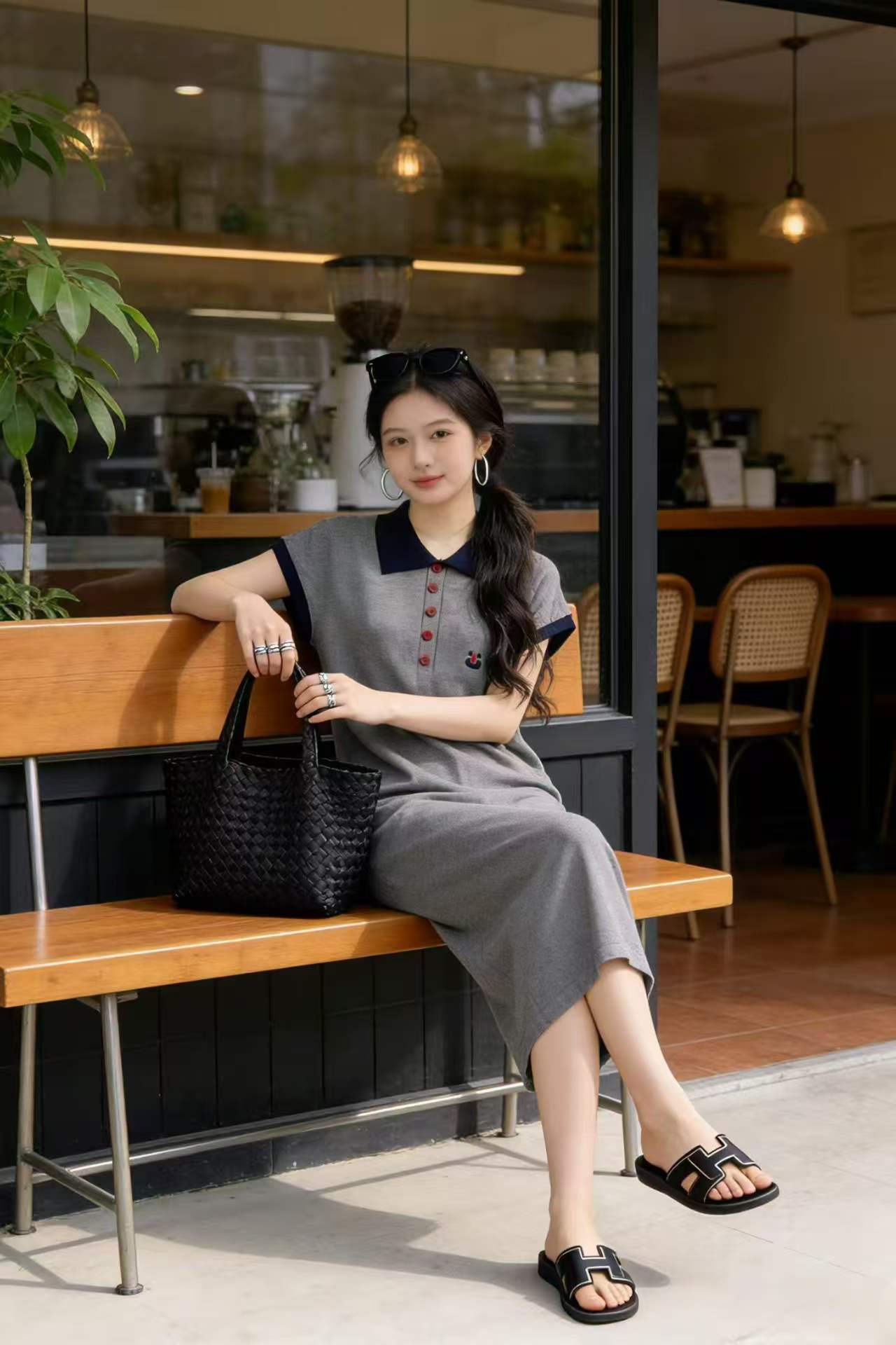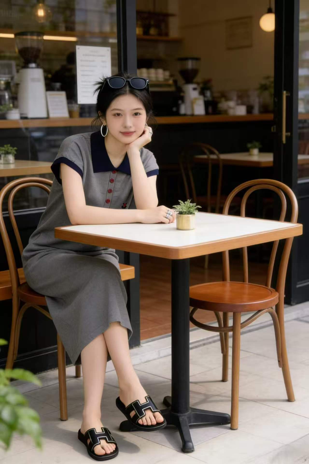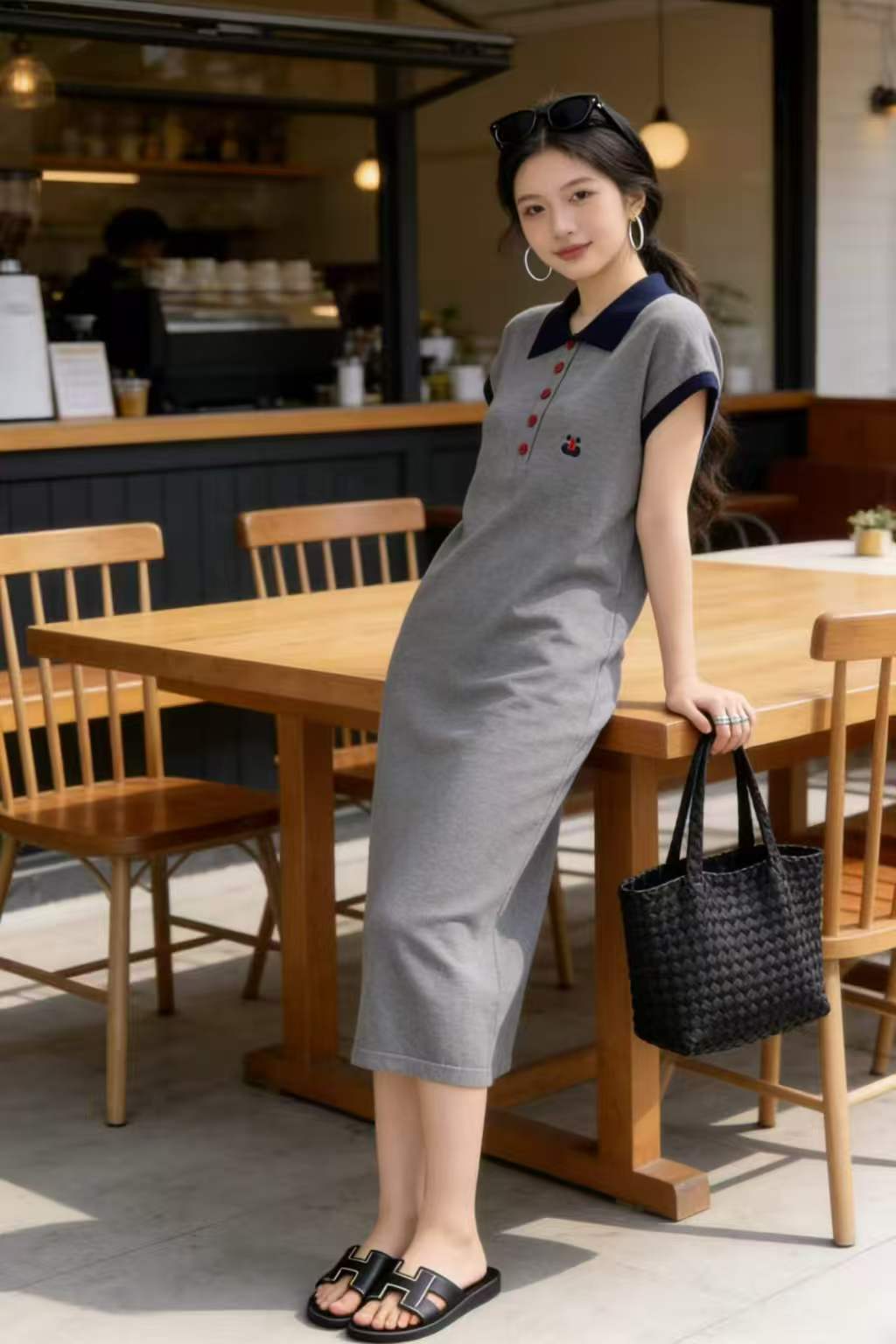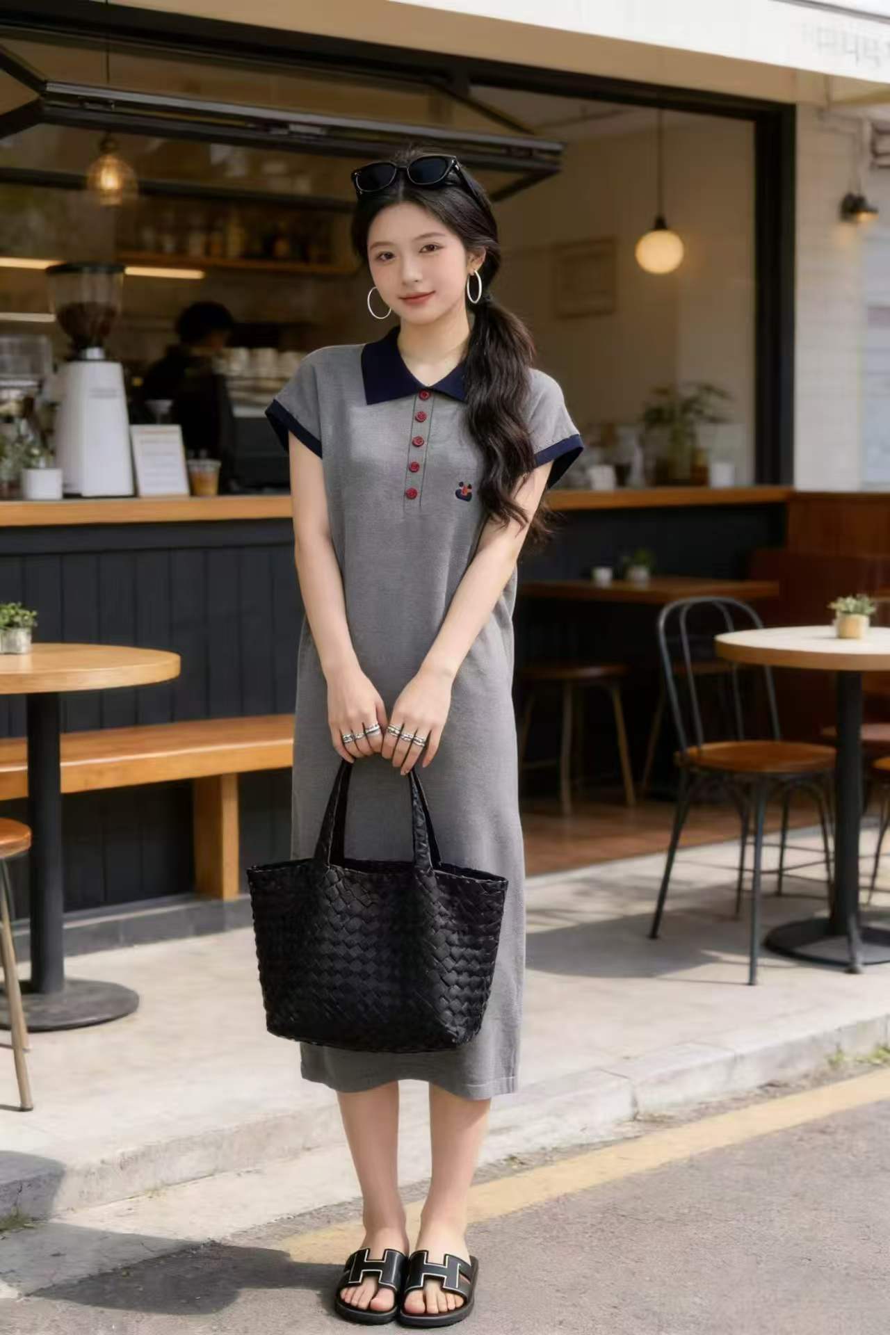 임산부 드레스 POLO 칼라 회색 니트 임산부 롱 스커트