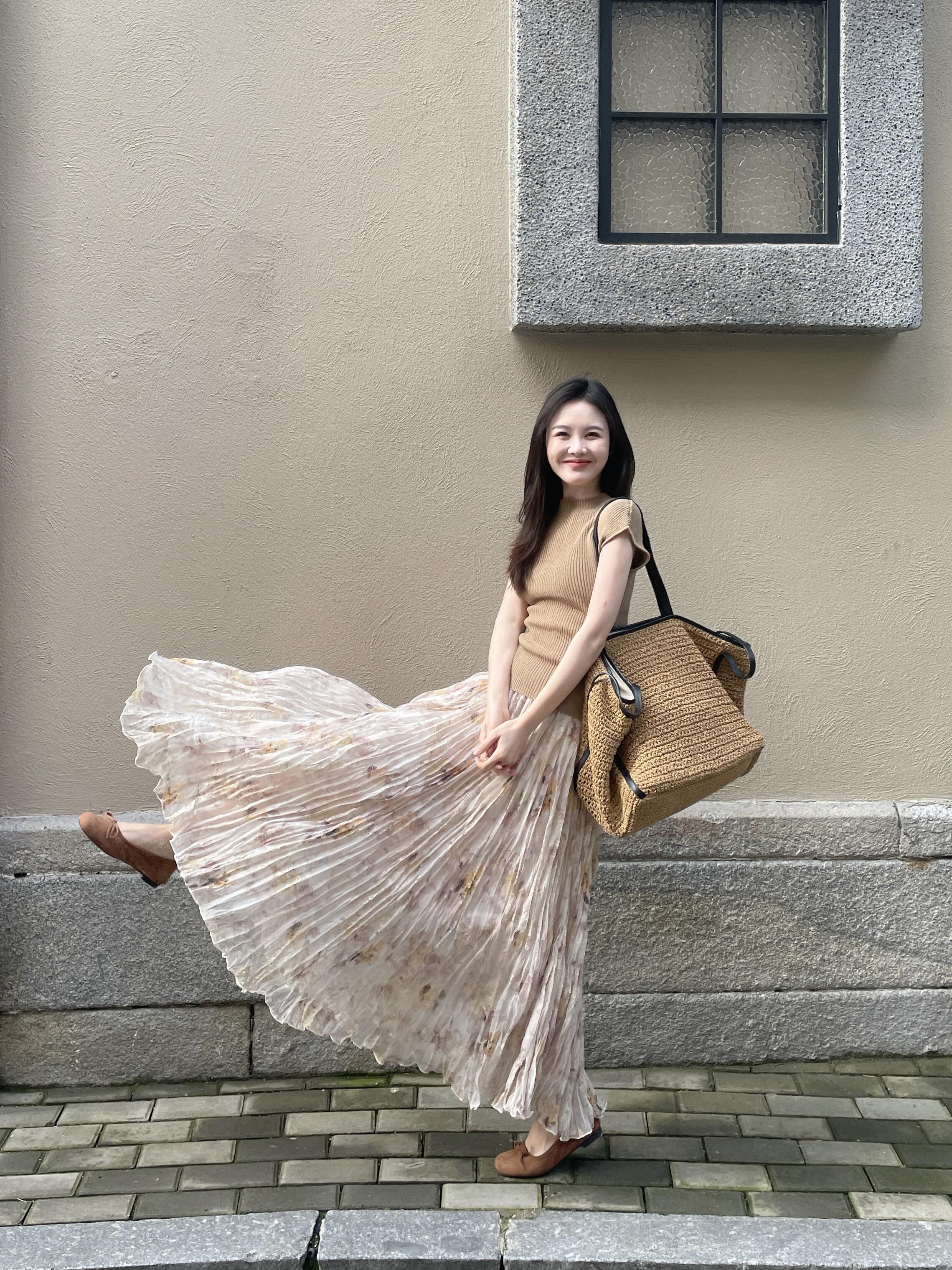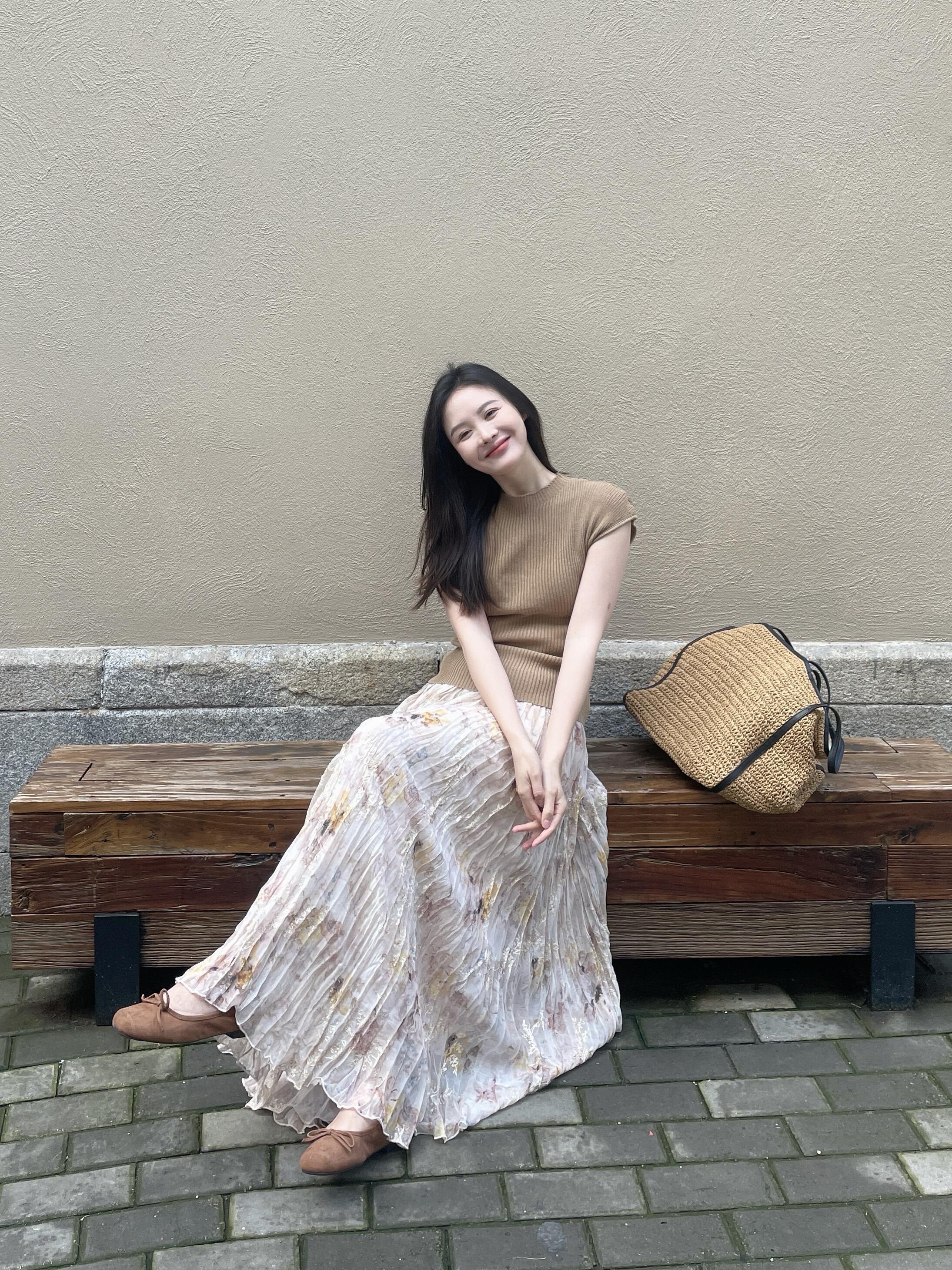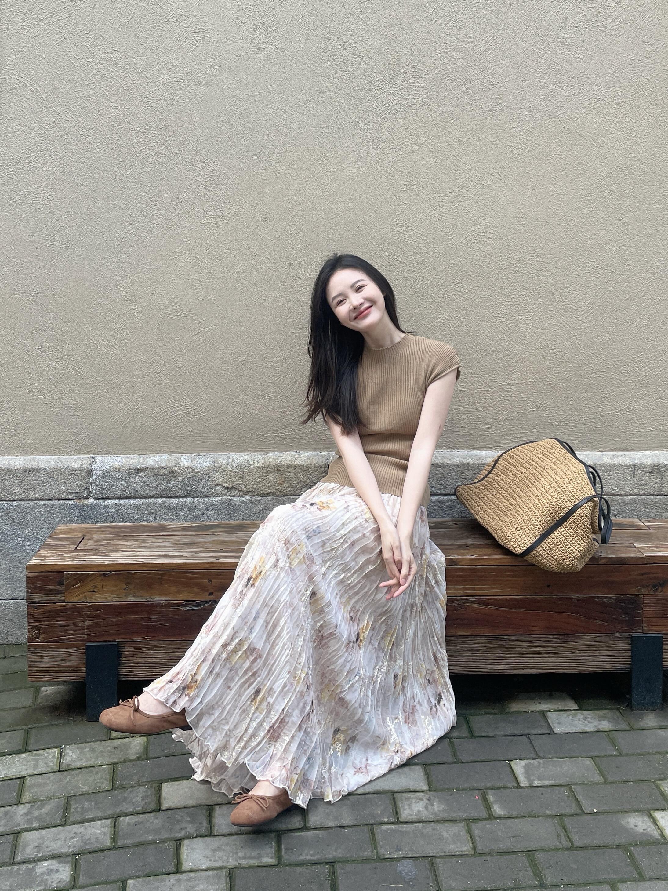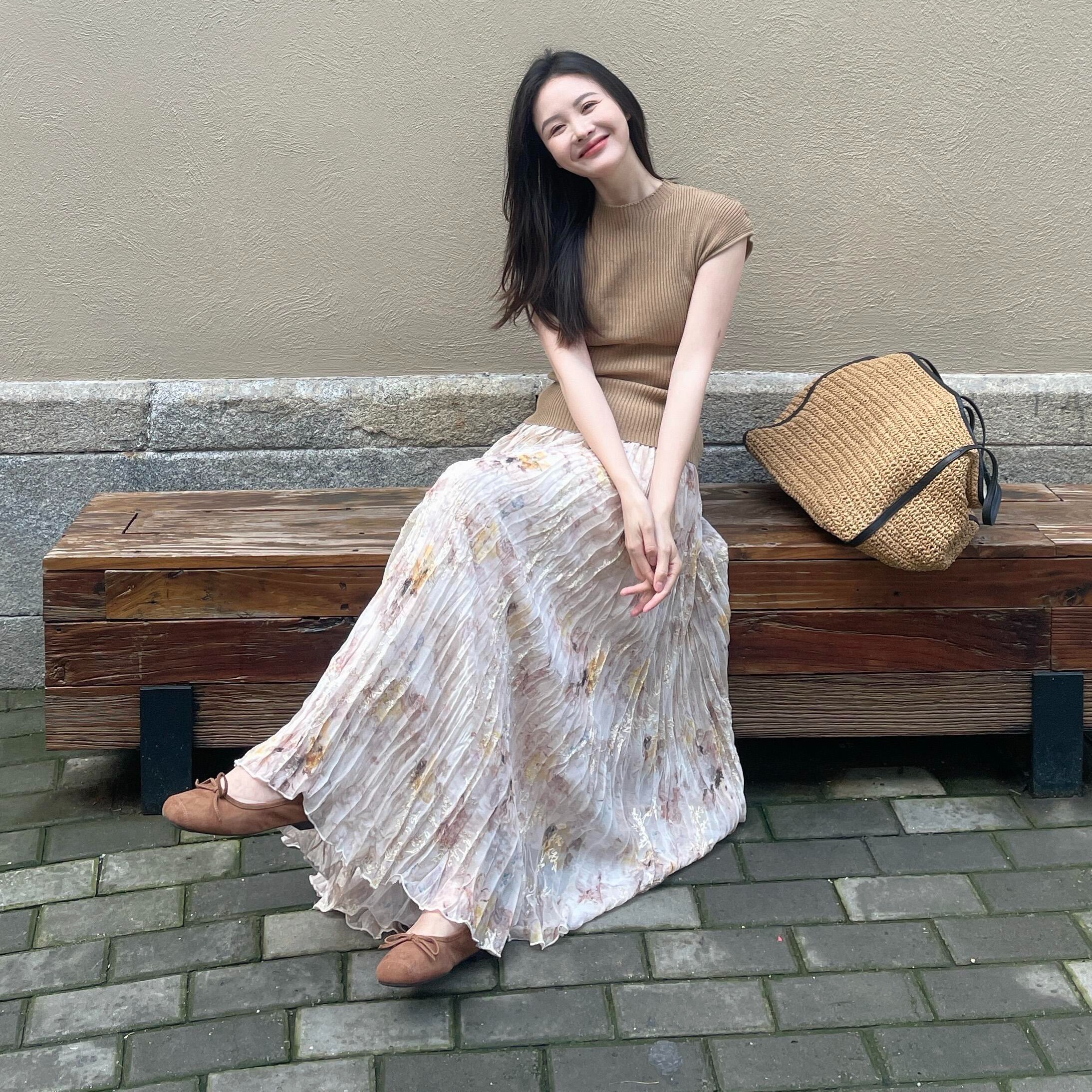 정원 실루엣 플리츠 꽃무늬 반신 스커트 여성 여름 디자인 센스 플리츠 스커트