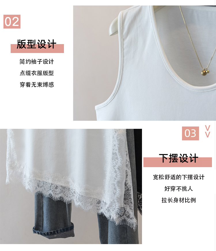 실사 여름 새로운 V넥 민소매 맨위 패치워크 레이스 맨위 빅 사이즈 여성 의류