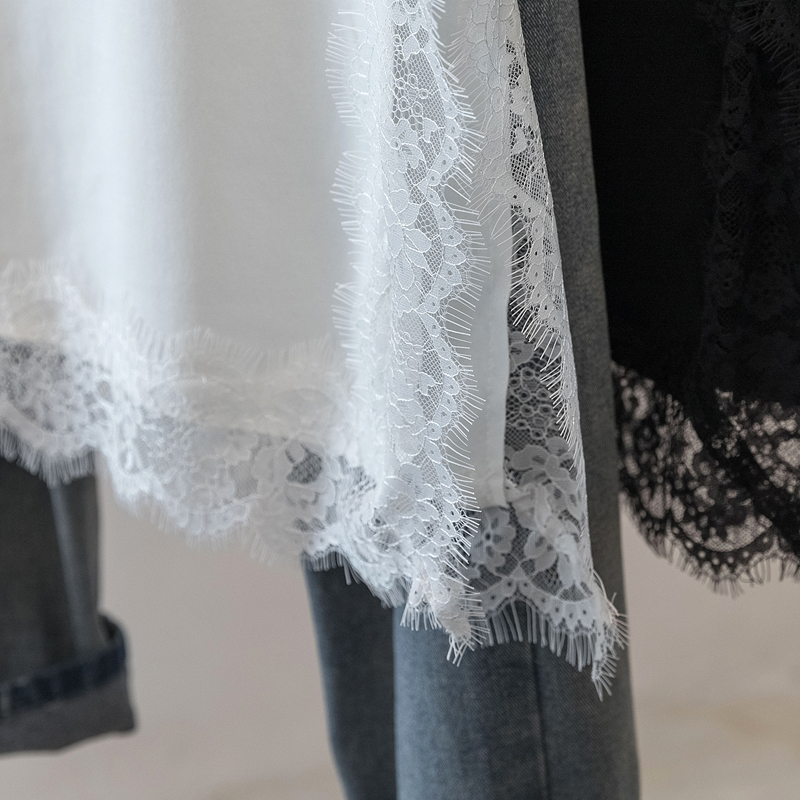 실사 빅 사이즈 여성 의류 한국 스타일 새로운 디자인 작은 대중 레이스 조각 슬림해 보이는 캐주얼 루즈핏 다용도 맨위
