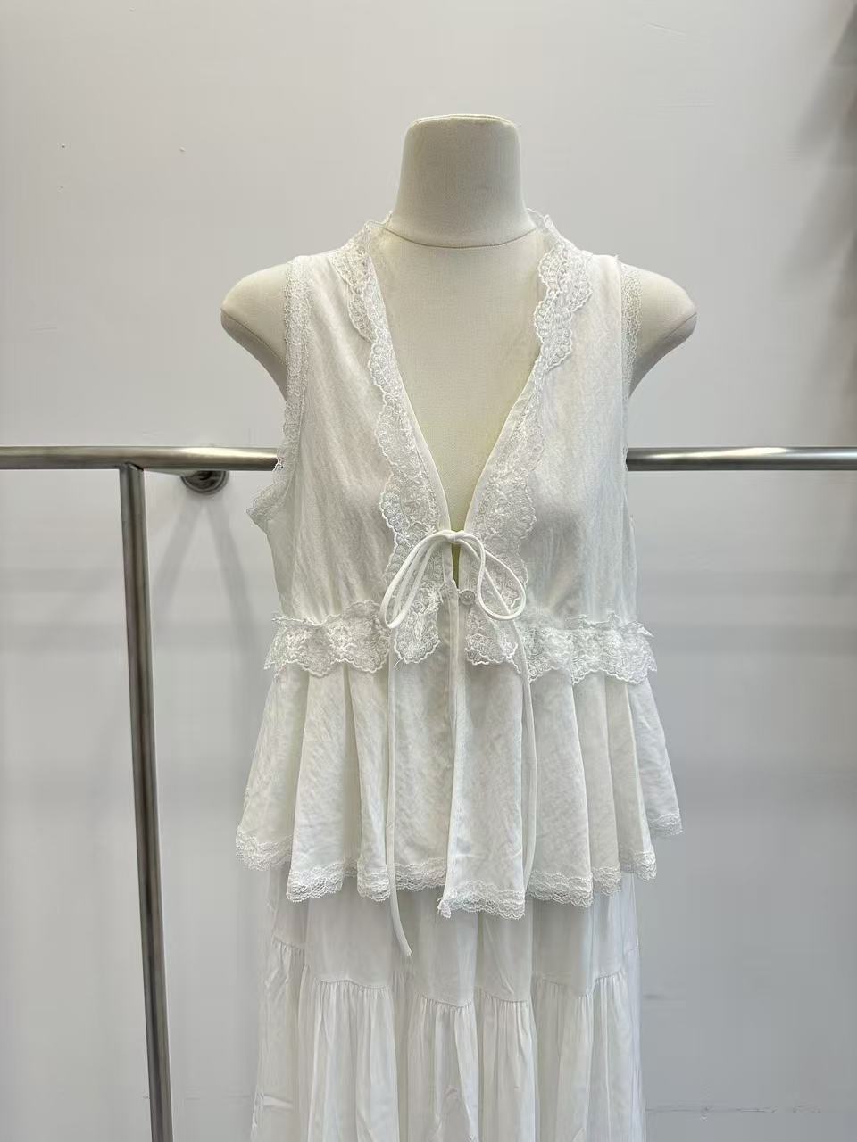 프랑스식 낭만주의 바람 화이트 V넥 레이스 V넥 조끼 여성 봄 스트랩 프릴 섹시함 그레이트 봐. 의류 트렌디