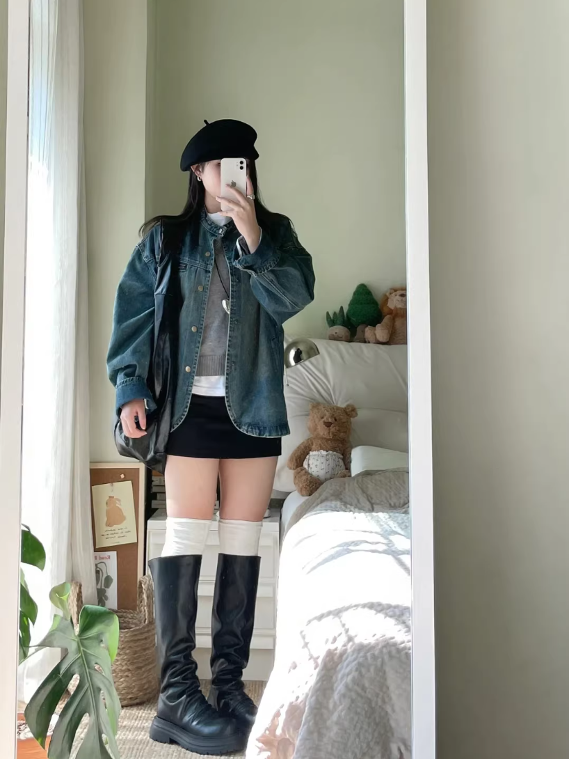 슈퍼 잘 생긴 ~ 중 일본식 레트로 마 오래된 데님 여성 코트 봄 가을 루즈핏 캐주얼 작은 대중 디자인 센스 재킷 맨위