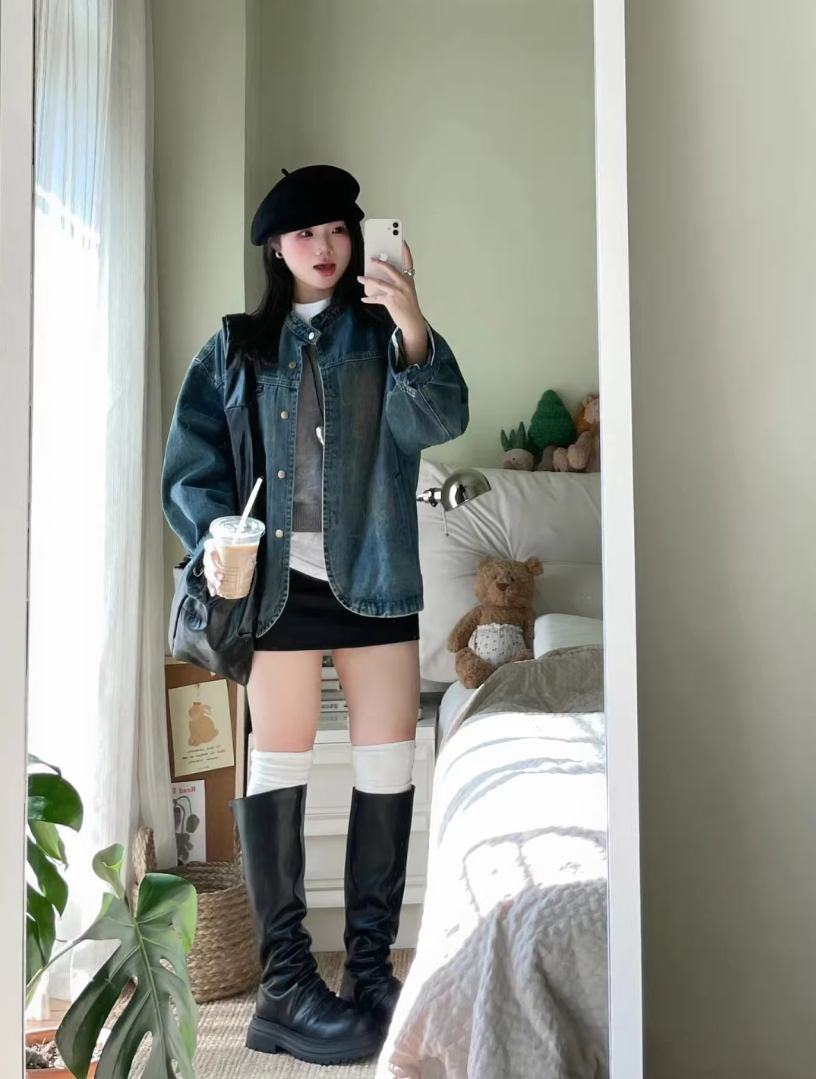 슈퍼 화재 연령 감소 쇼트 스타일 워싱 데님 여성 코트 봄 2026 새로운 아메리칸 무거운 레트로 다용도 자켓