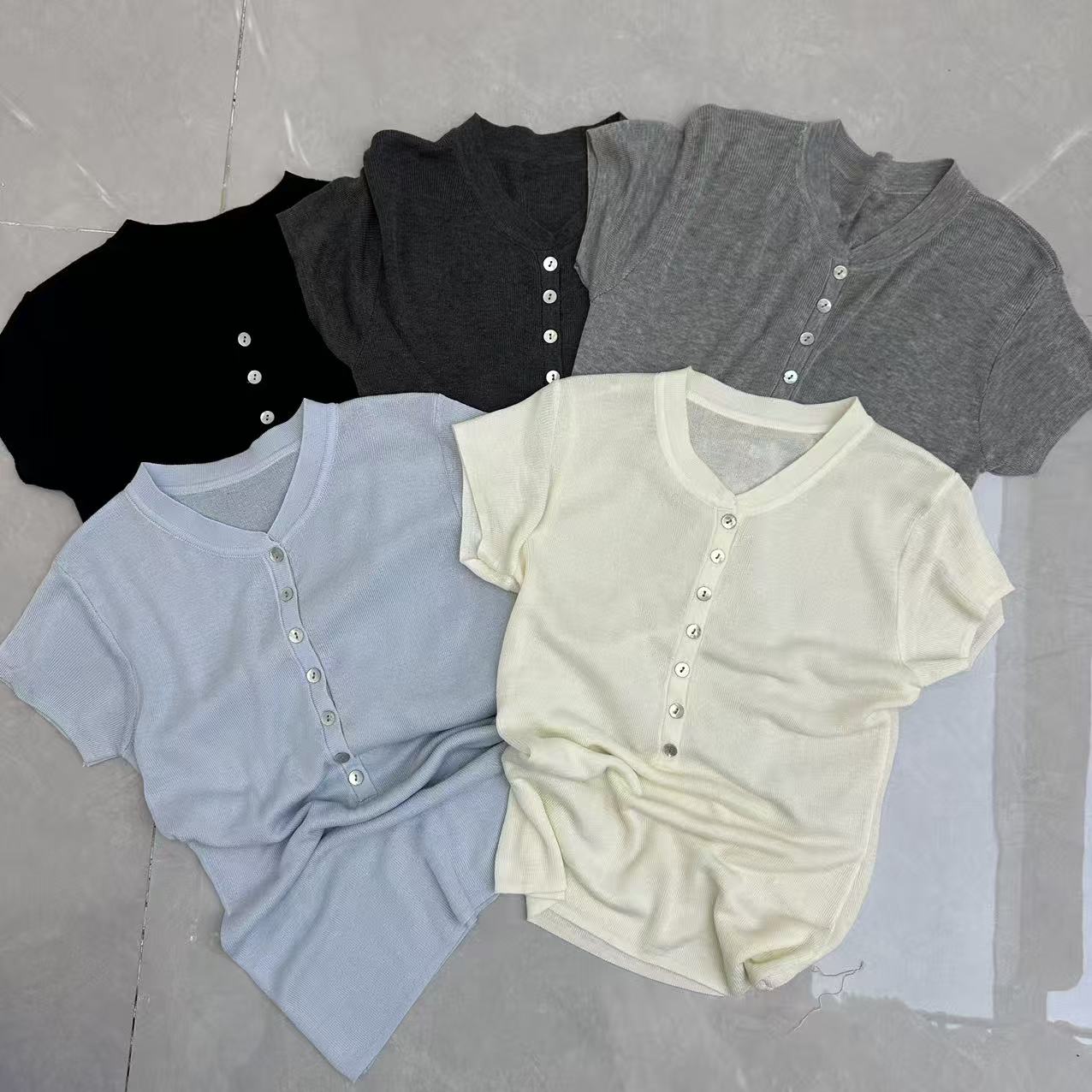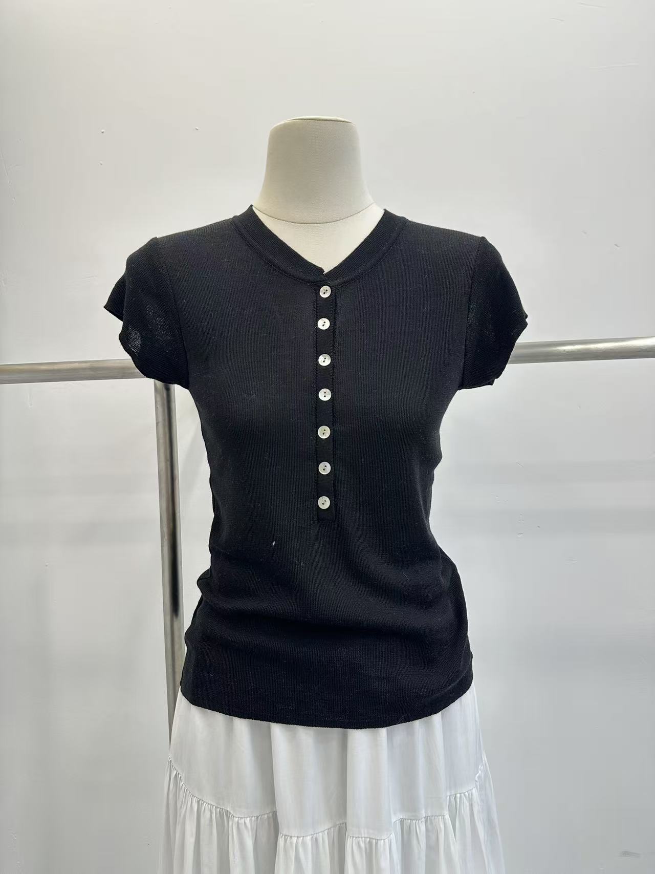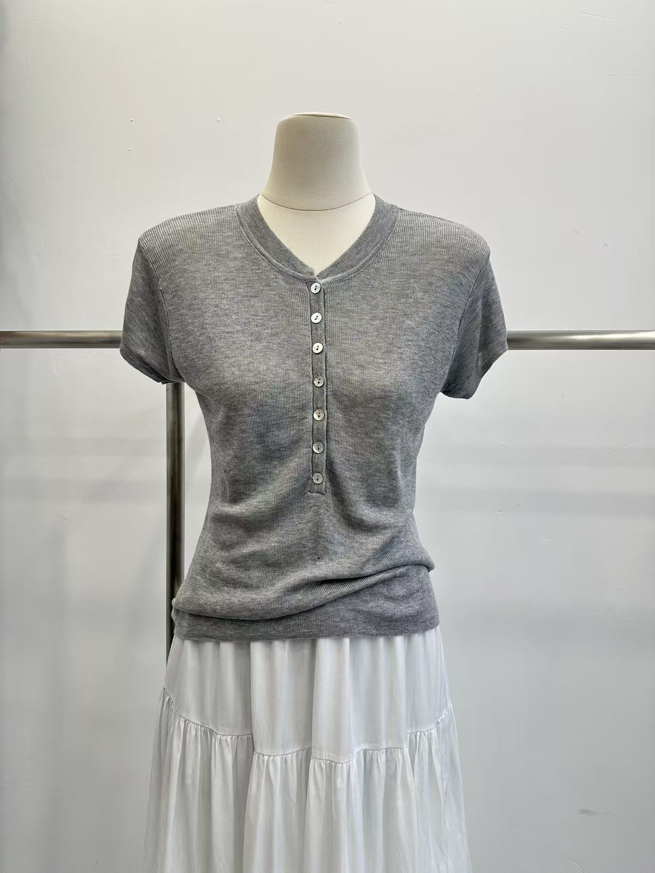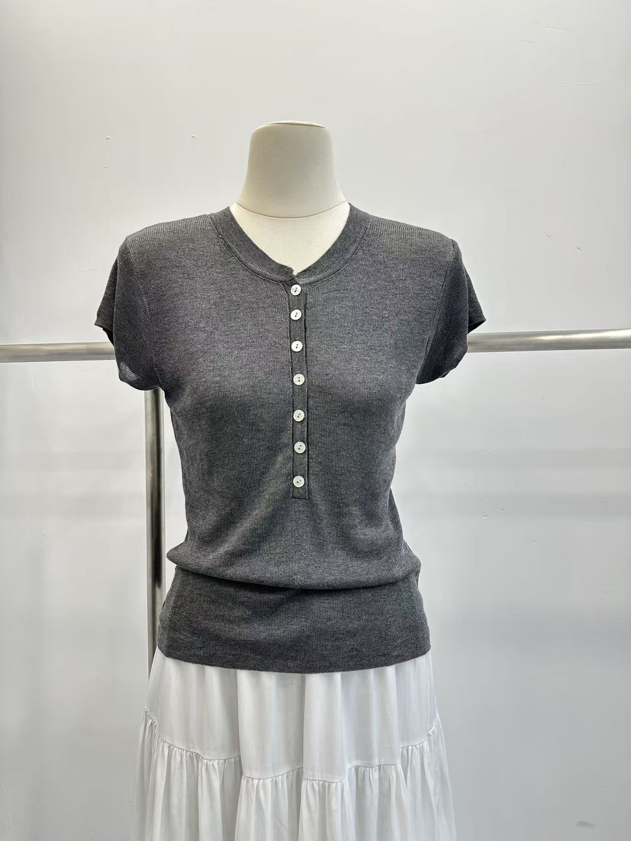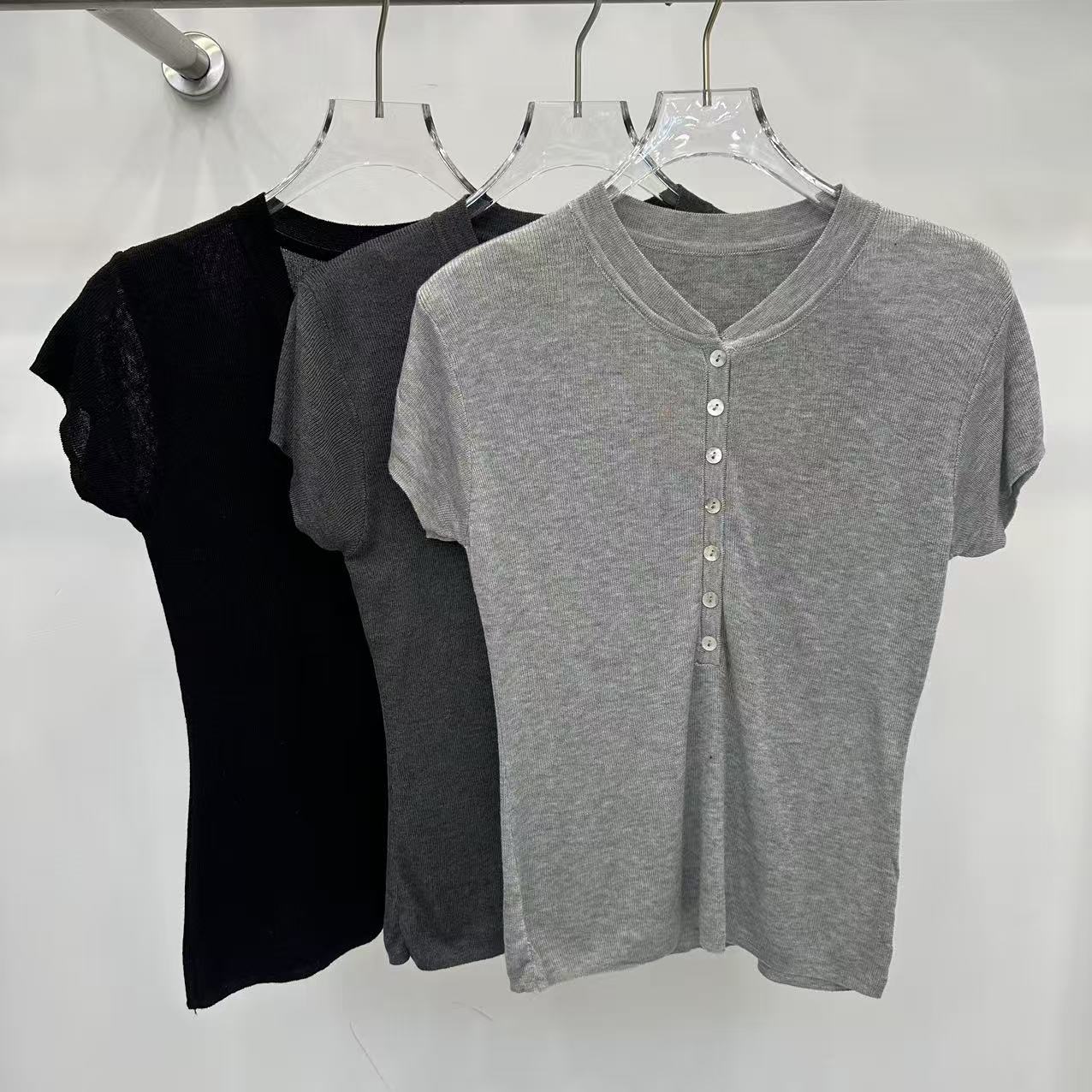 grace li 과일 과립 여름 새로운 한 스타일 미니멀리즘 라운드 넥 품격 하프 단추 몸매 가꾸기 맨위 여성 니트 스웨터