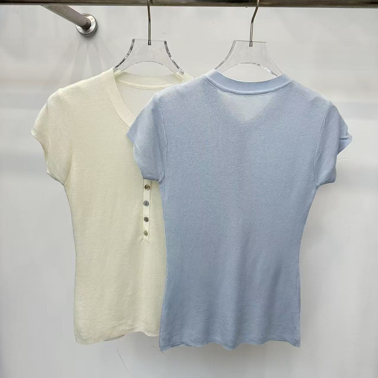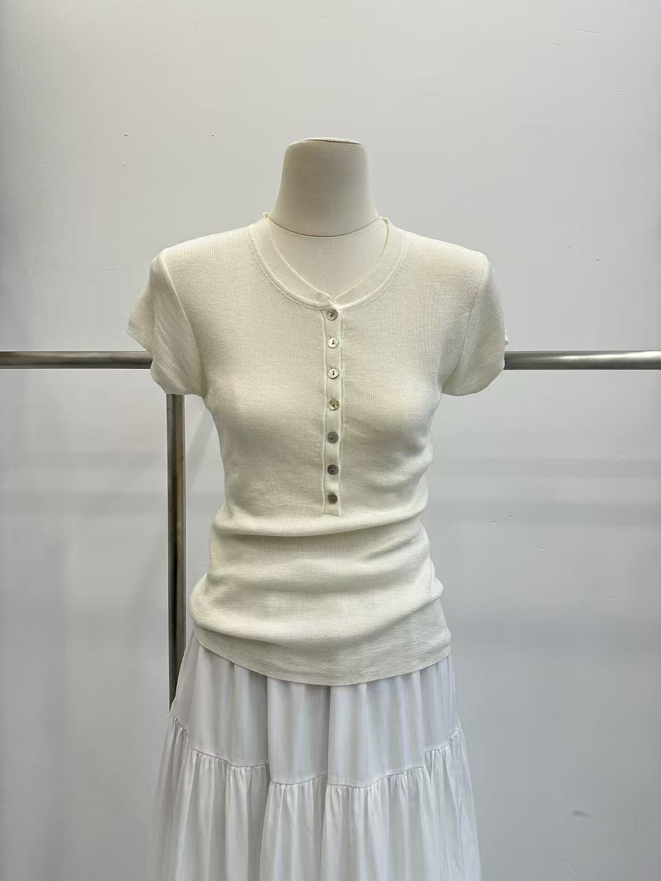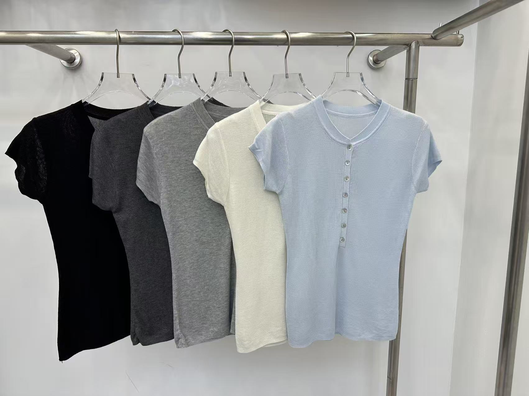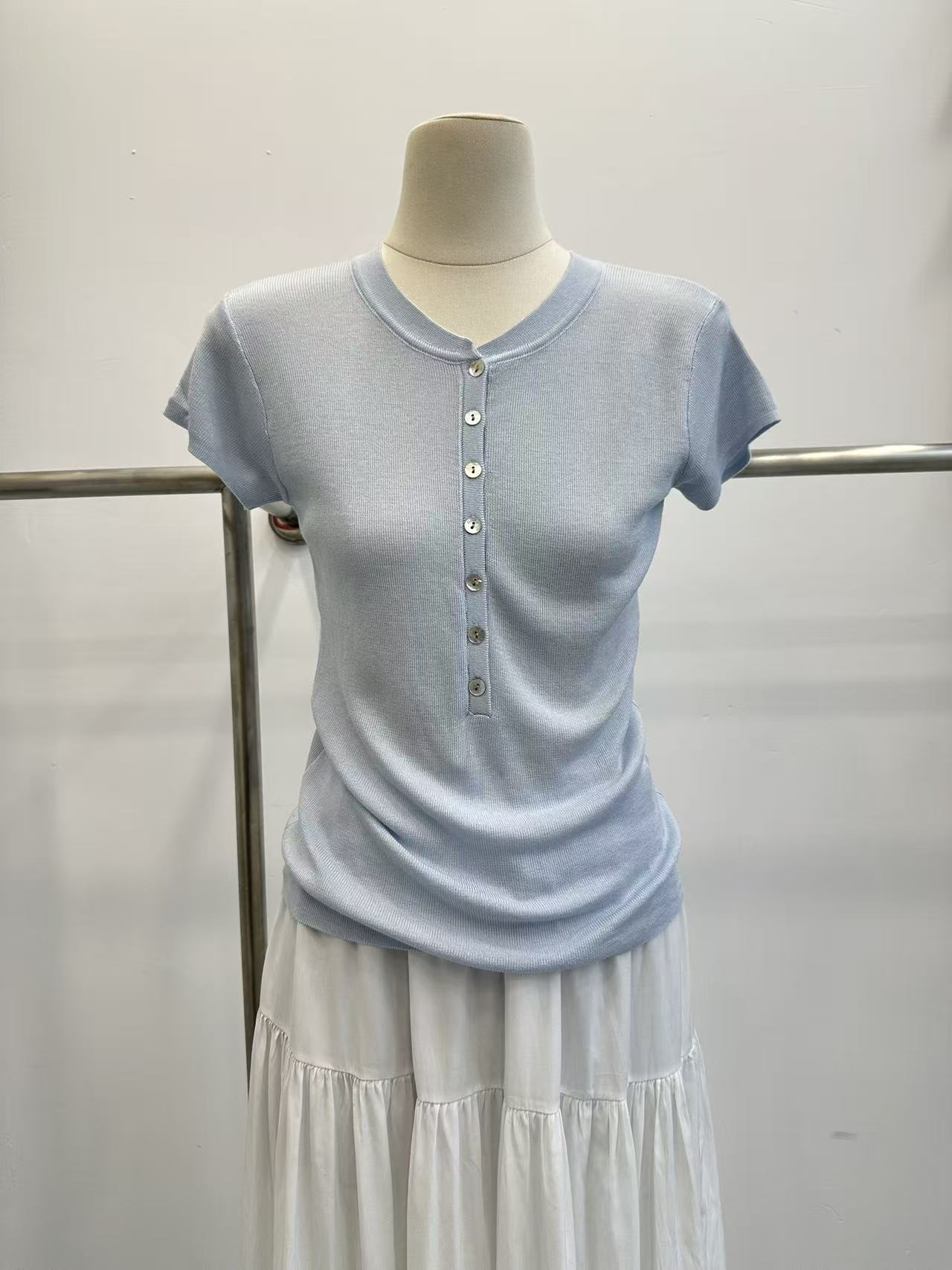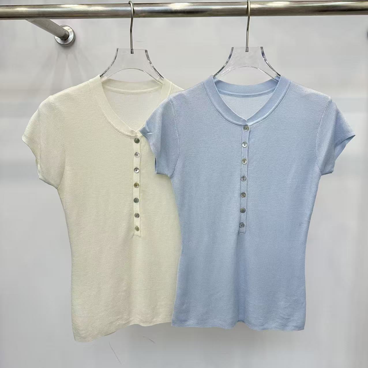 grace li 과일 과립 여름 새로운 한 스타일 미니멀리즘 라운드 넥 품격 하프 단추 몸매 가꾸기 맨위 여성 니트 스웨터