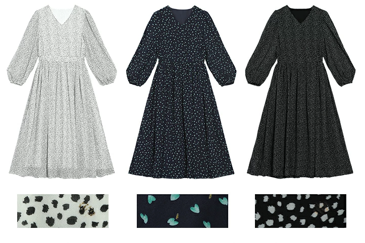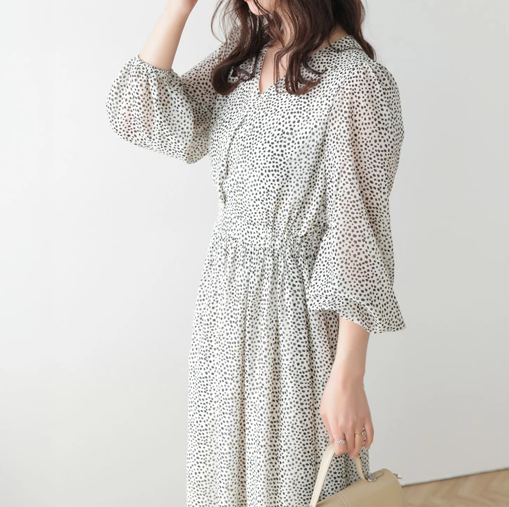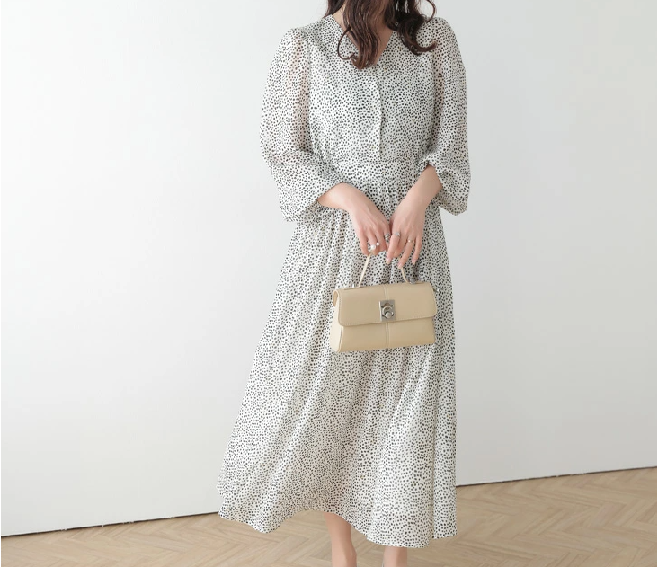 일본식 부드러운 바람 여성 드레스 2026 봄 여름 새로운 V넥 벌룬 소매 쉬폰 롱 스커트 하이웨이스트 슬림해 보이는 A라인 스커트