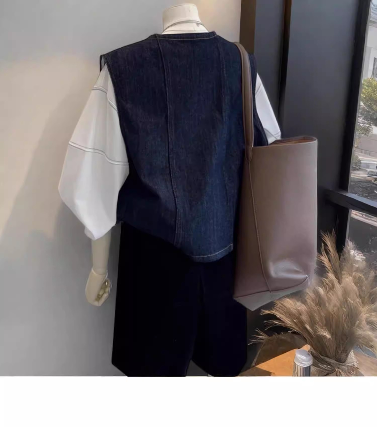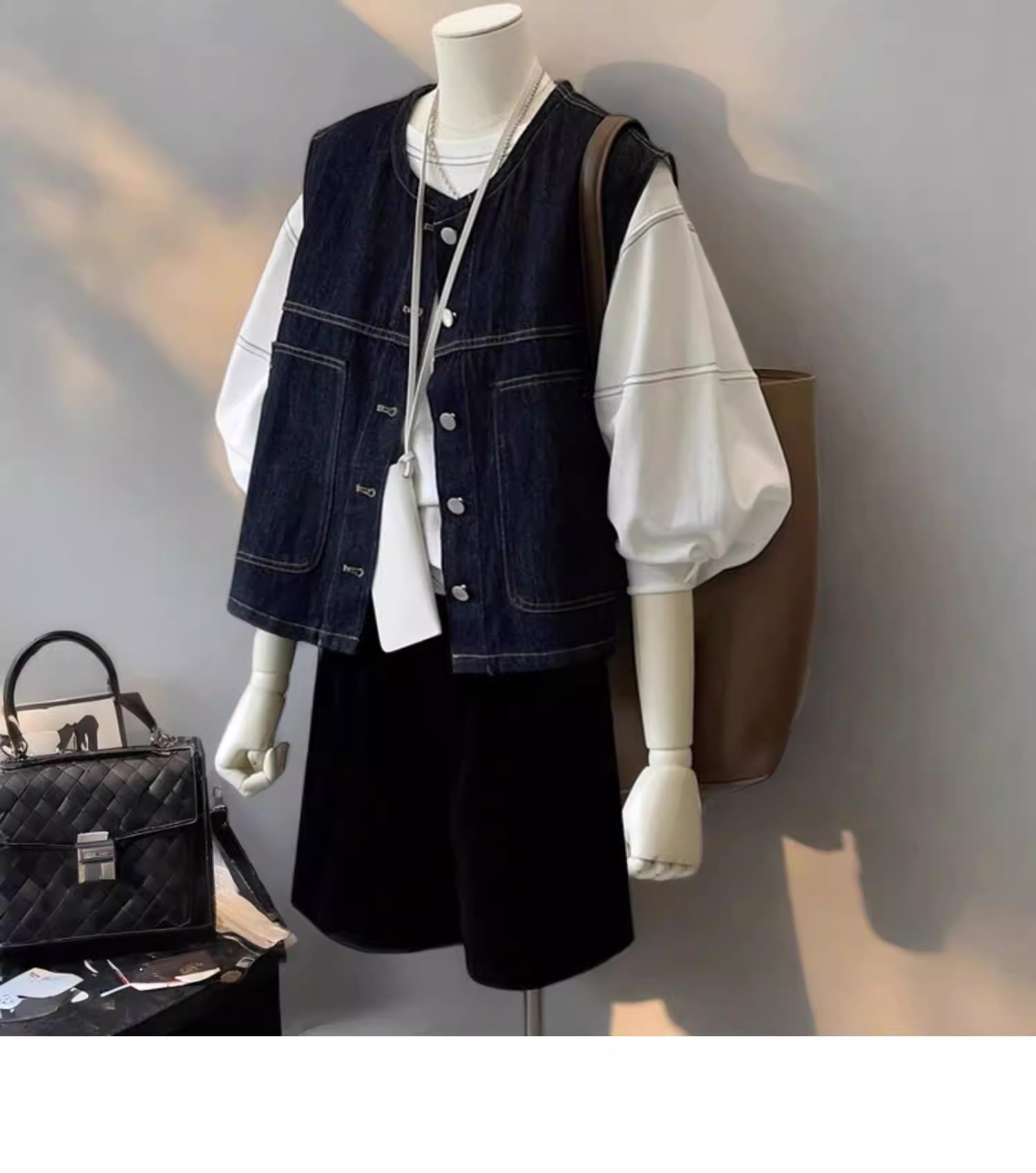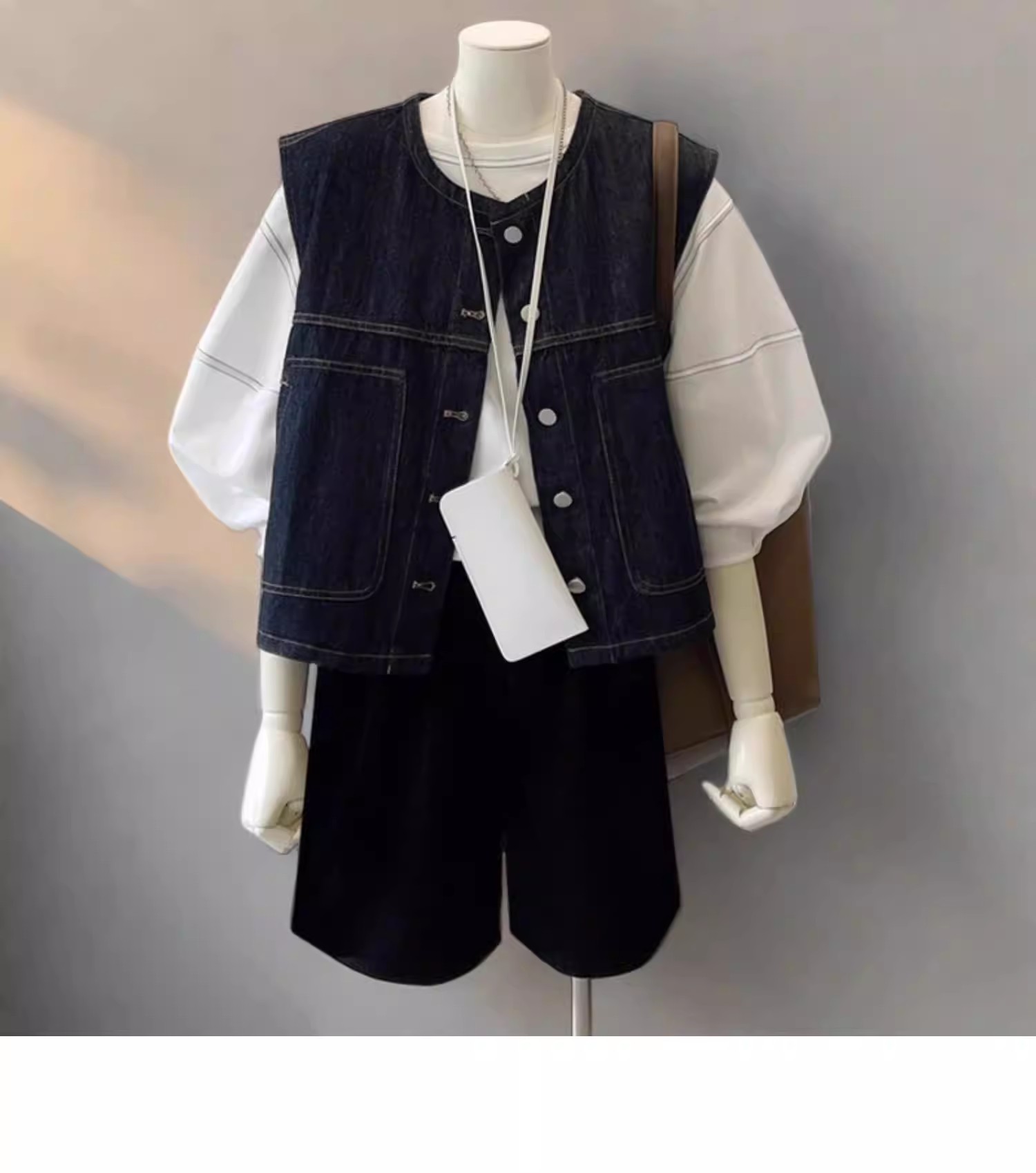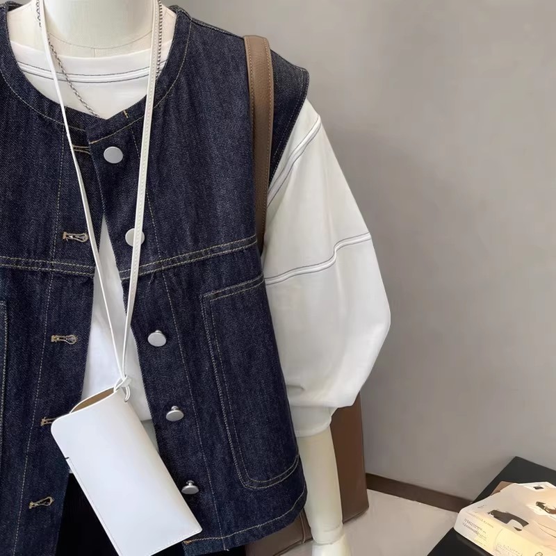 광저우 열세 개 높음 물품 폭발 작은 키 쇼트 스타일 오픈 가디건 데님 베스트 여성 코트 봄 스택 착용 외부 가져 가라.