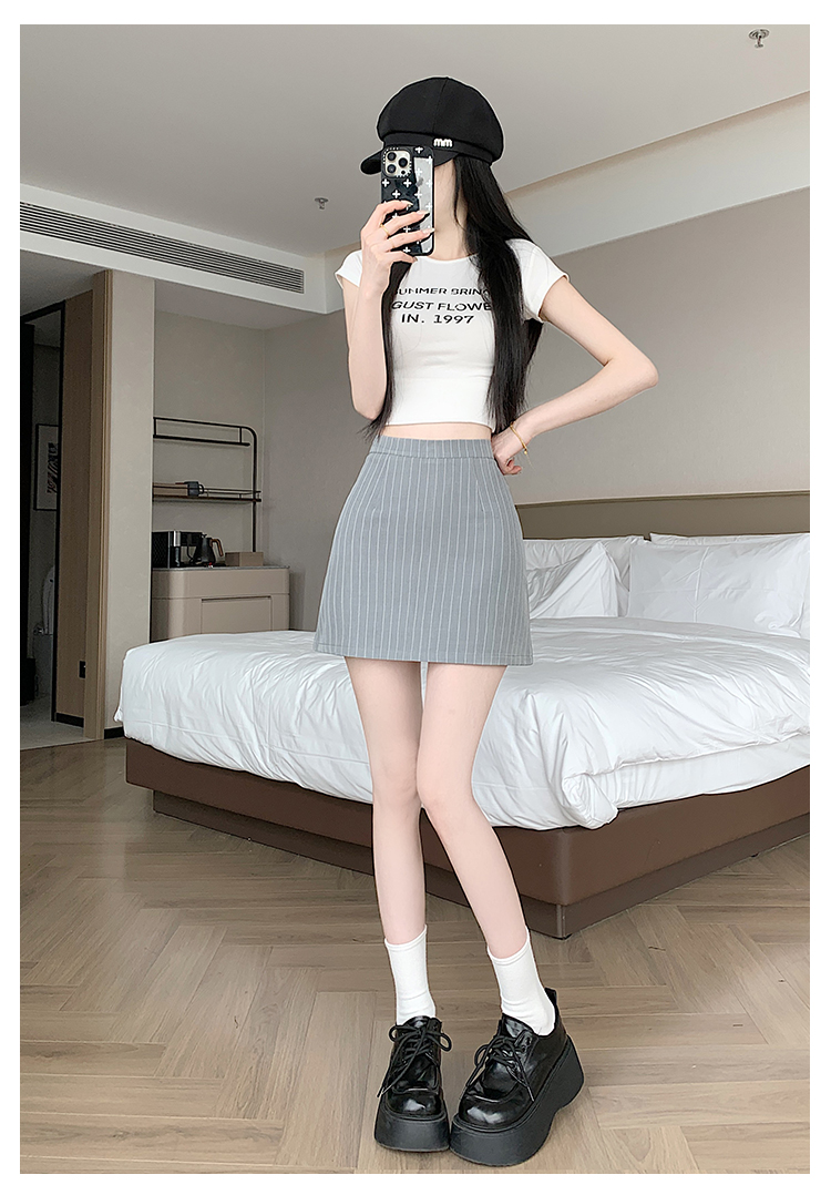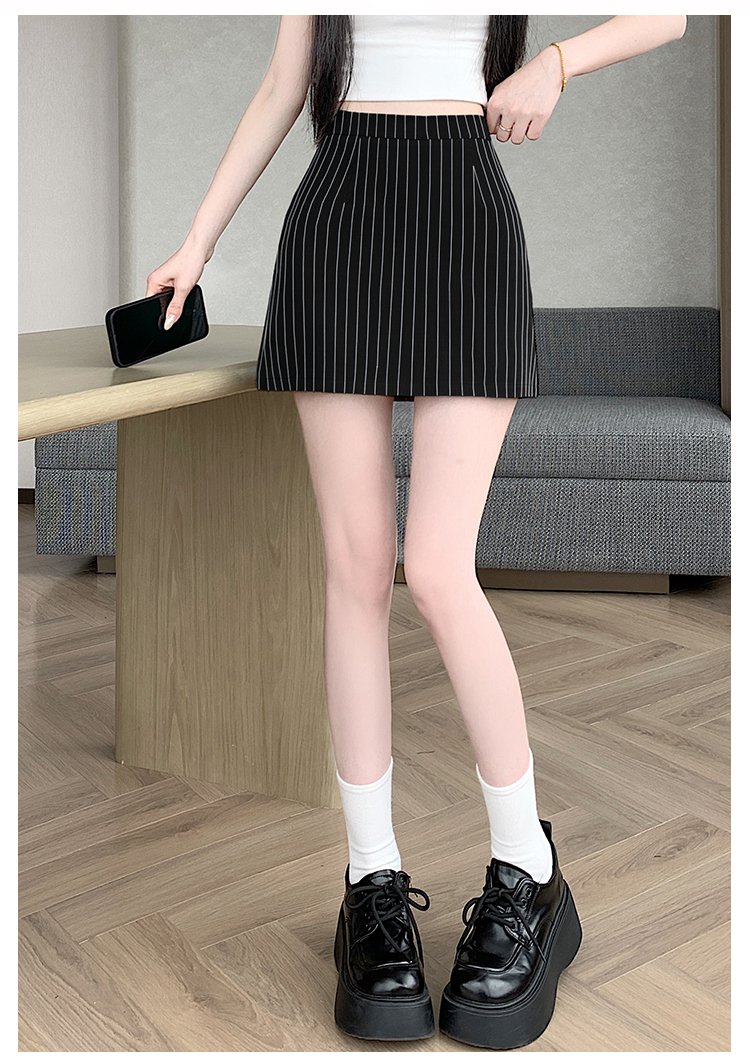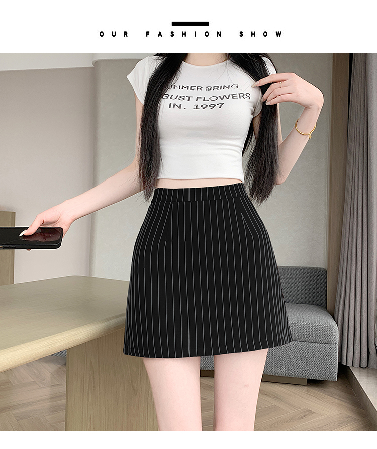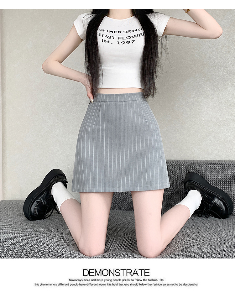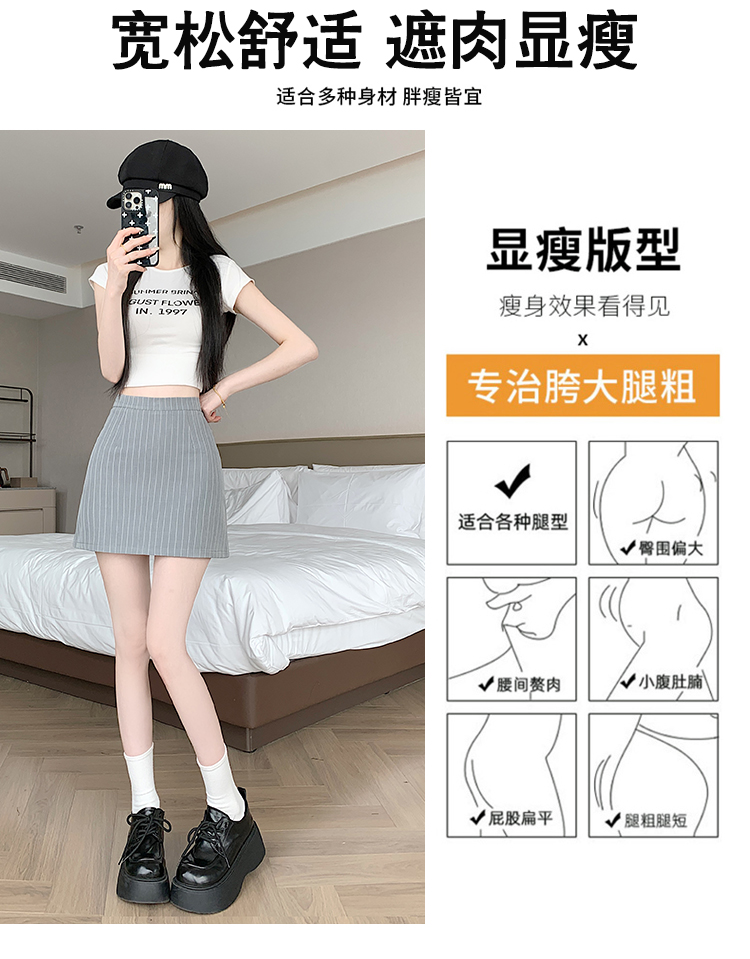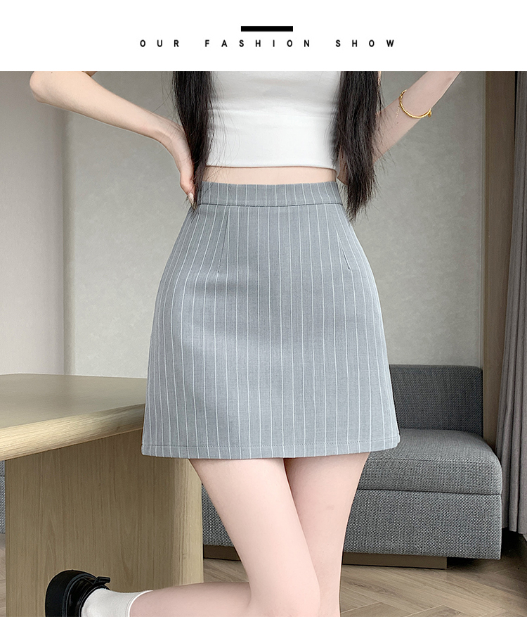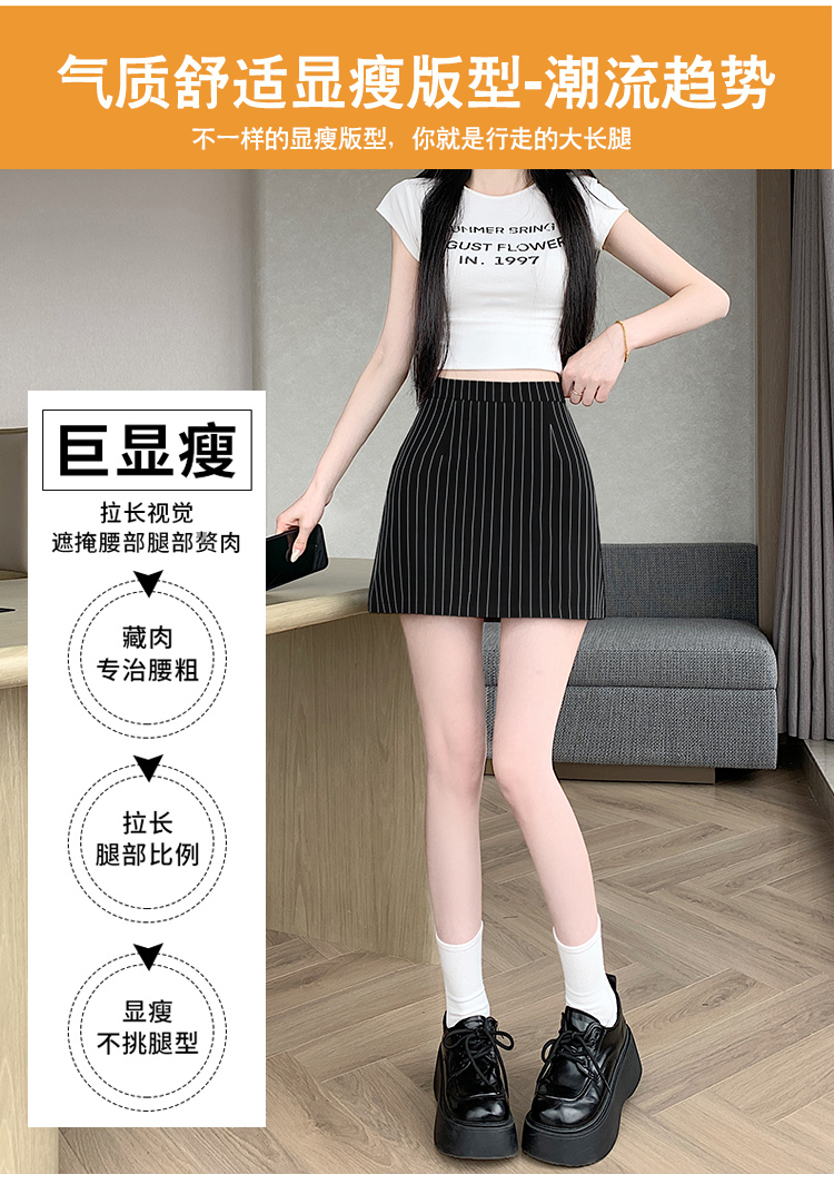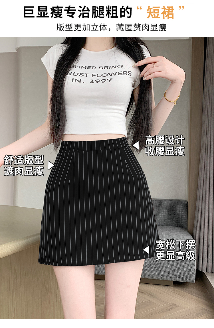 실사 2026 년 여름 새로운 반신 스커트 패션 몸매 가꾸기 스트라이프 정장 치마
