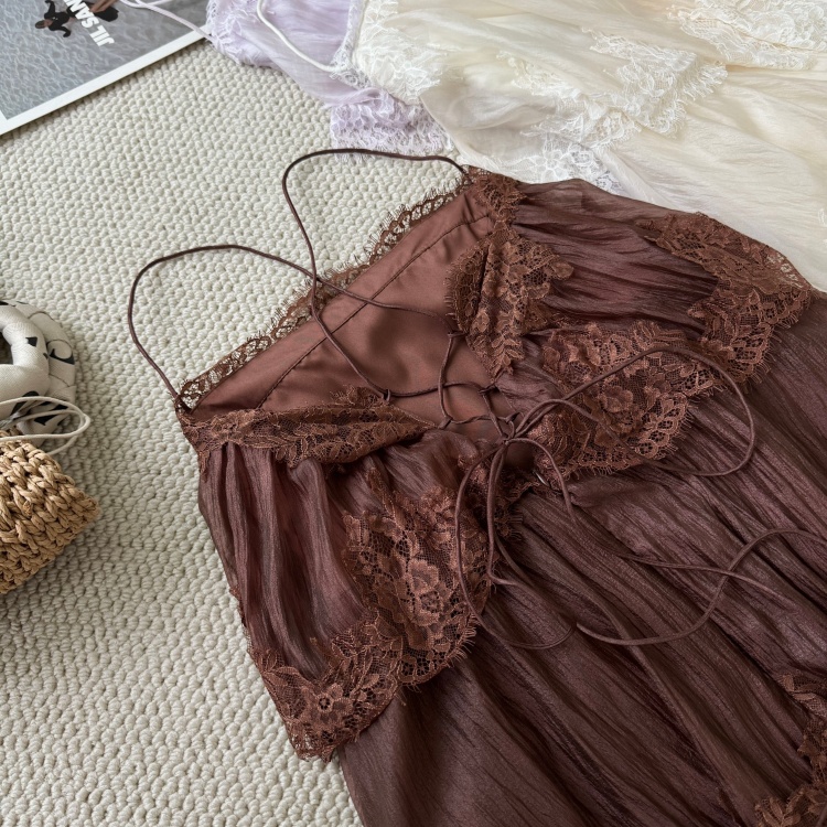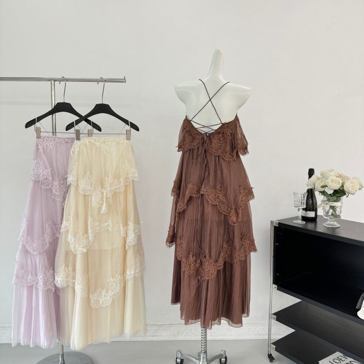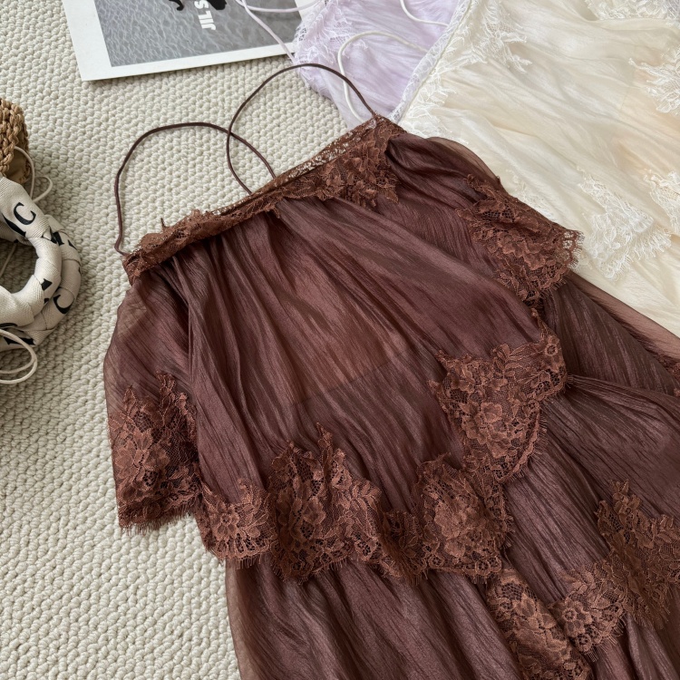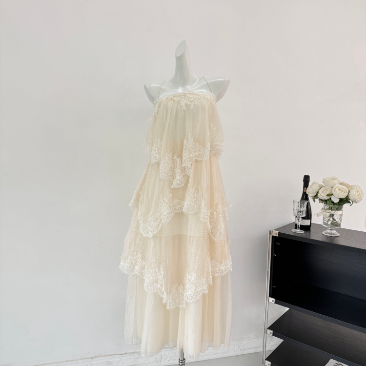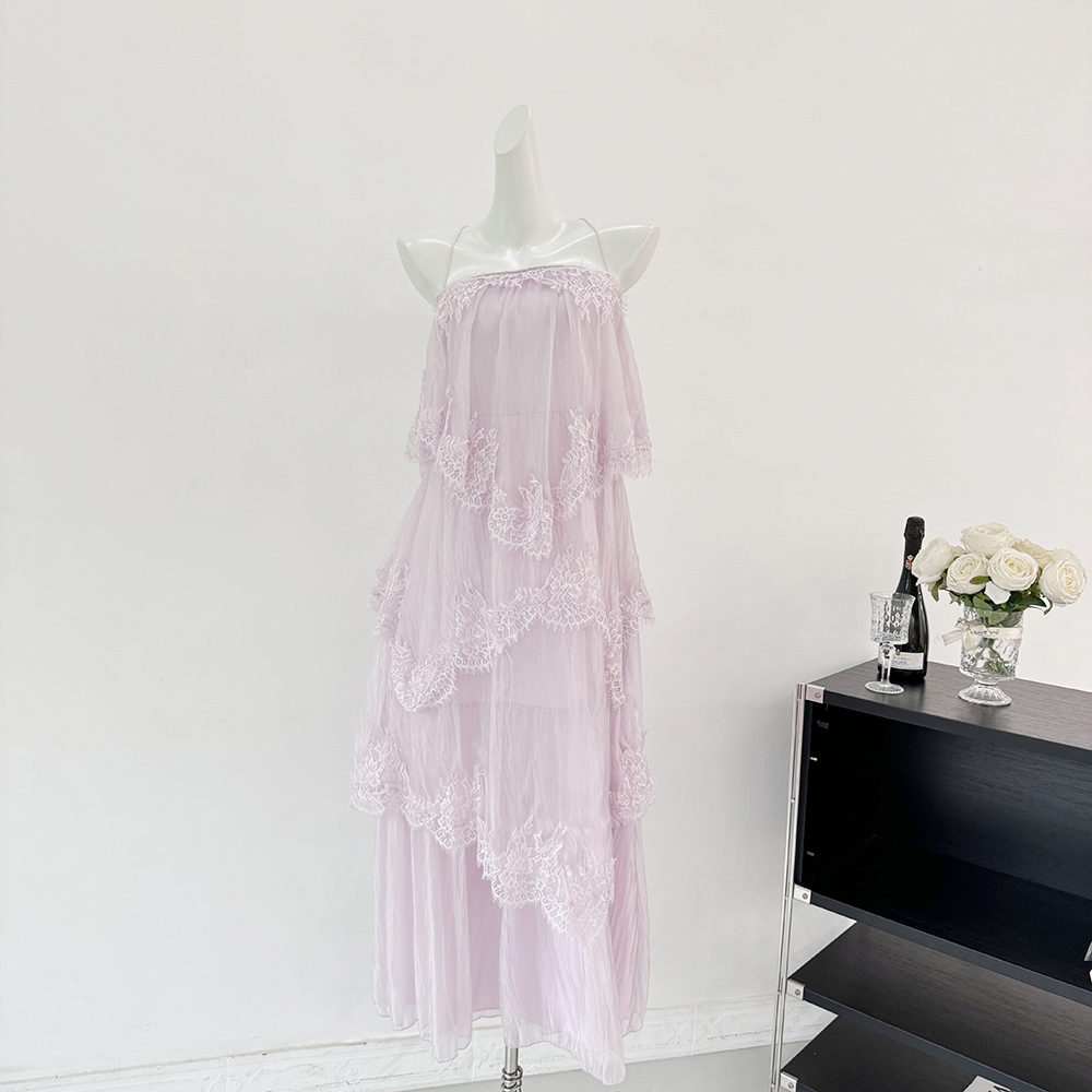 하나부터 순간 빛 흔적 프랑스식 슬립 레이스 큰 진자 여성 드레스 부드러운 바람 휴가 슬림해 보이는 케이크 드레스