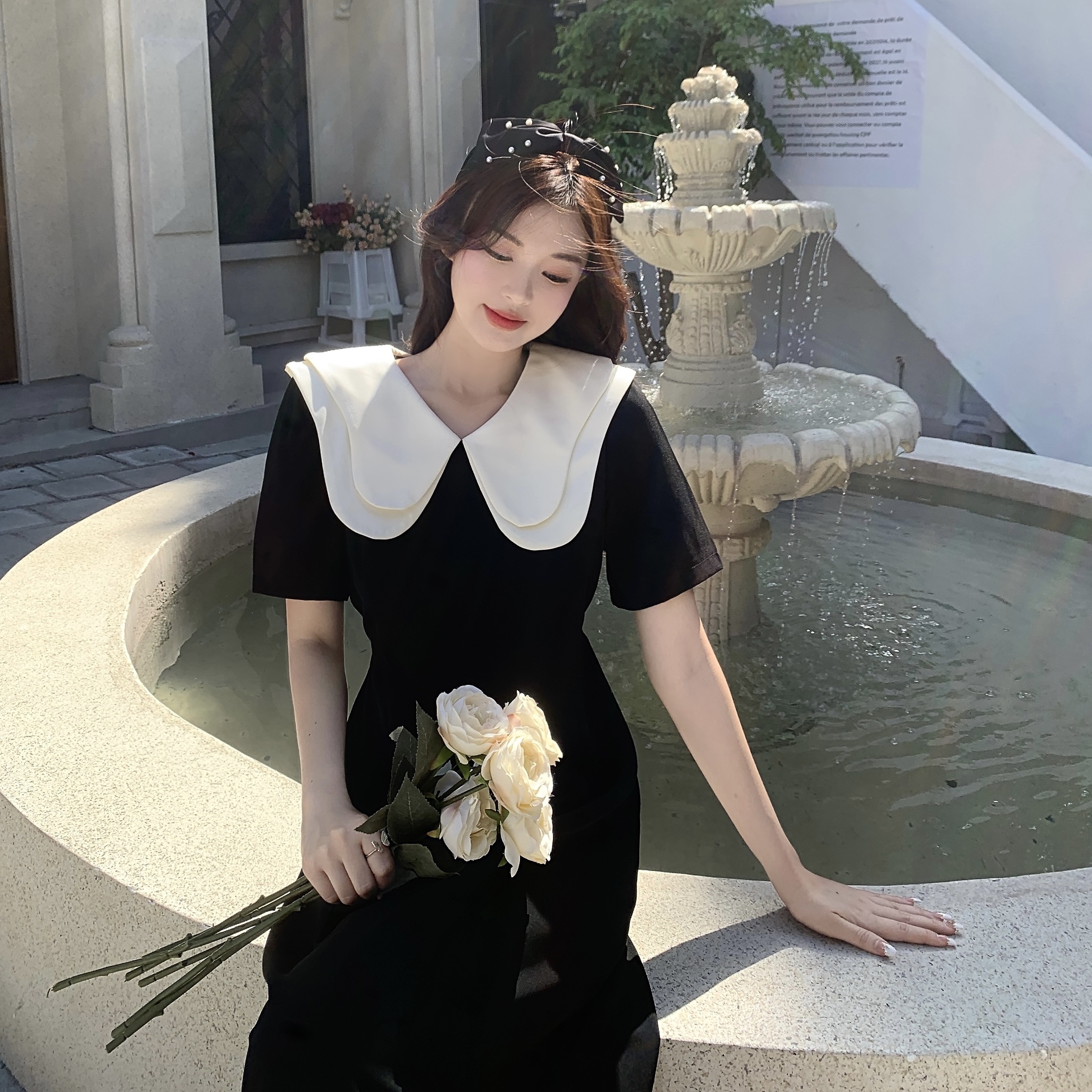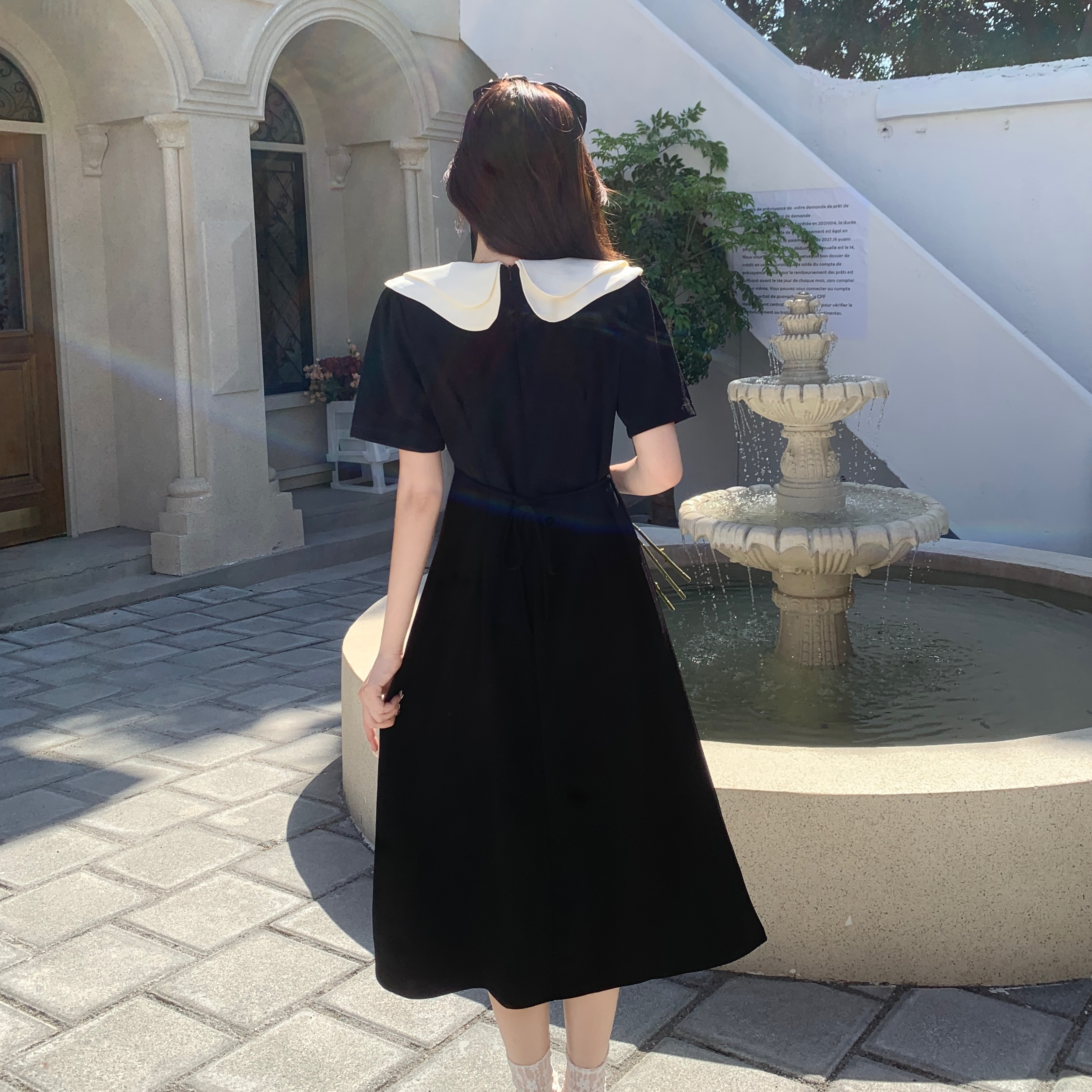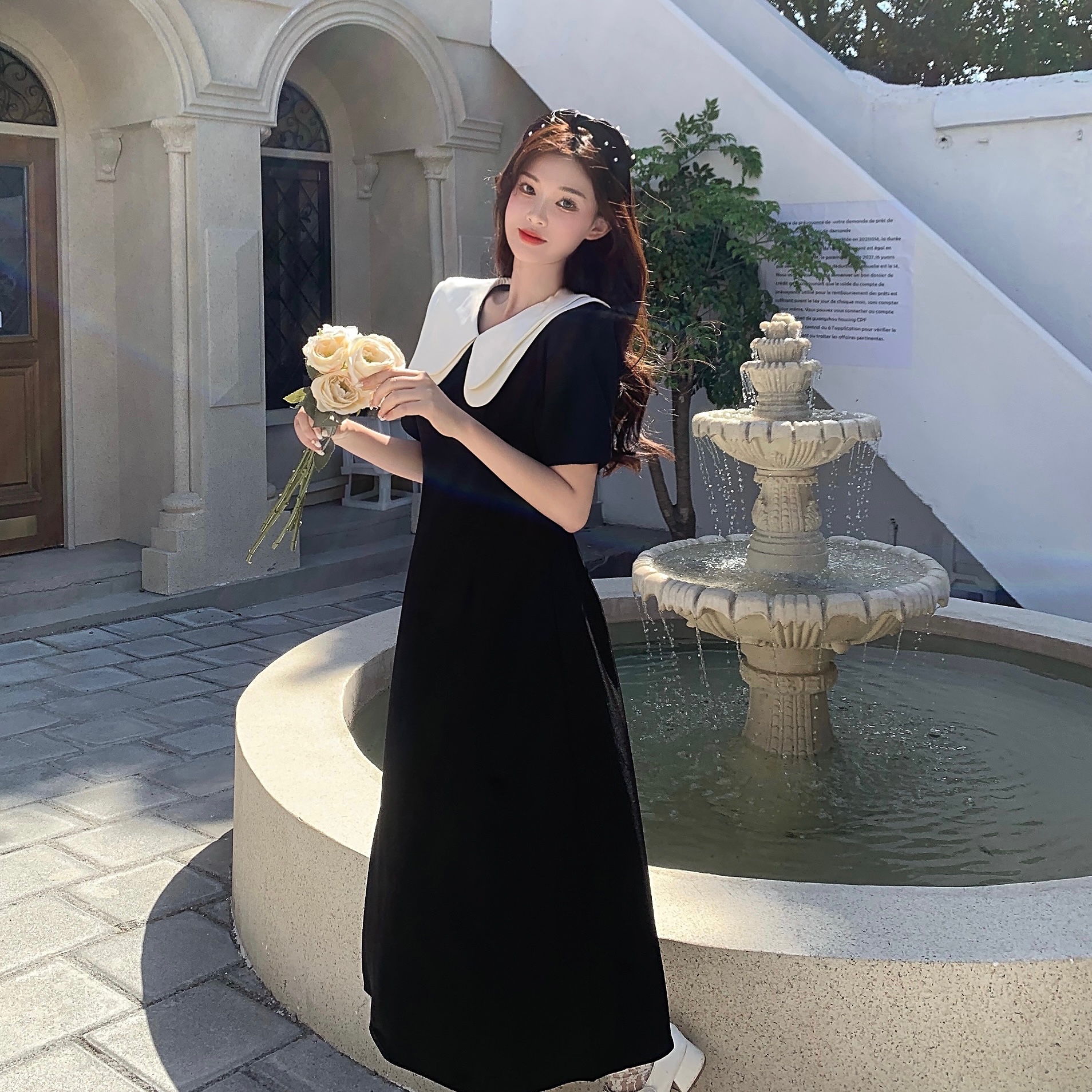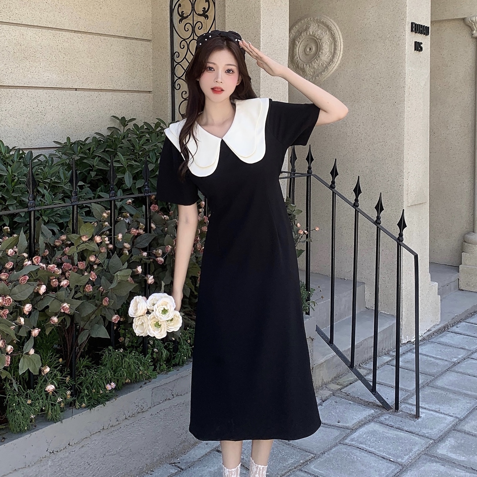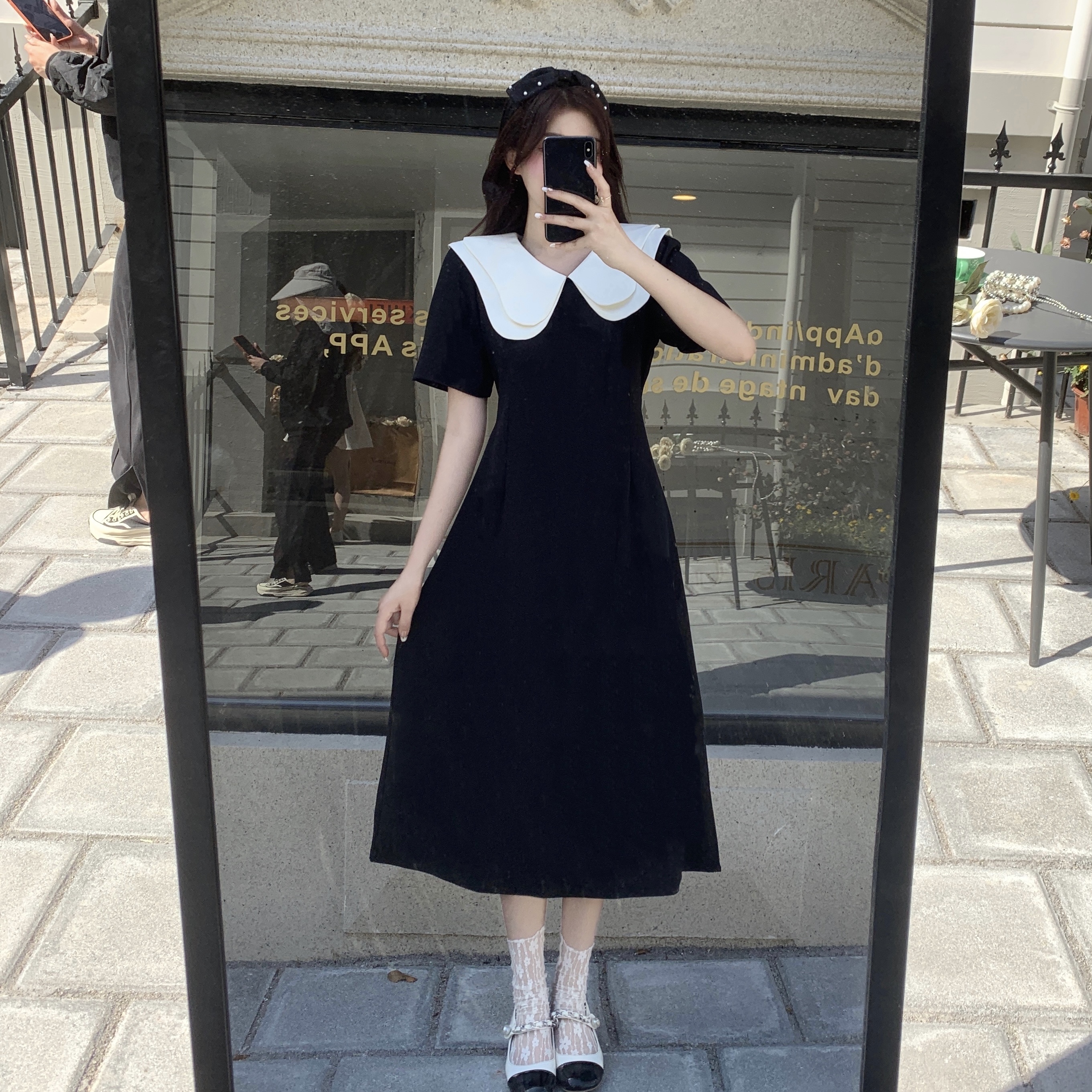 달콤함 한국 스타일 롱 코트 이중층 인형 폴로 칼라 2025 년 여성 여름 드레스 새로운 슬림해 보이는 드레스