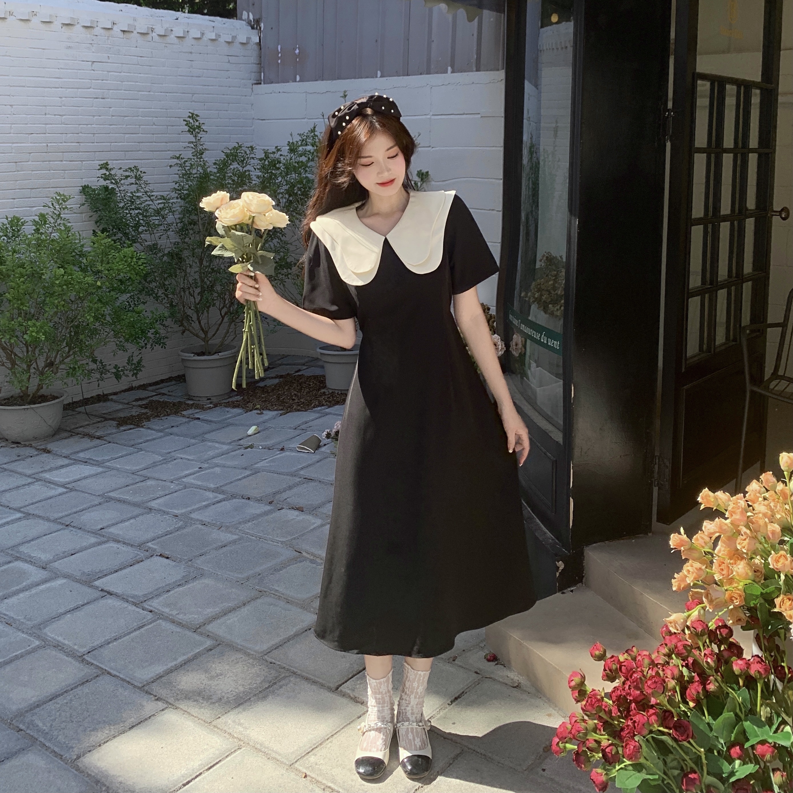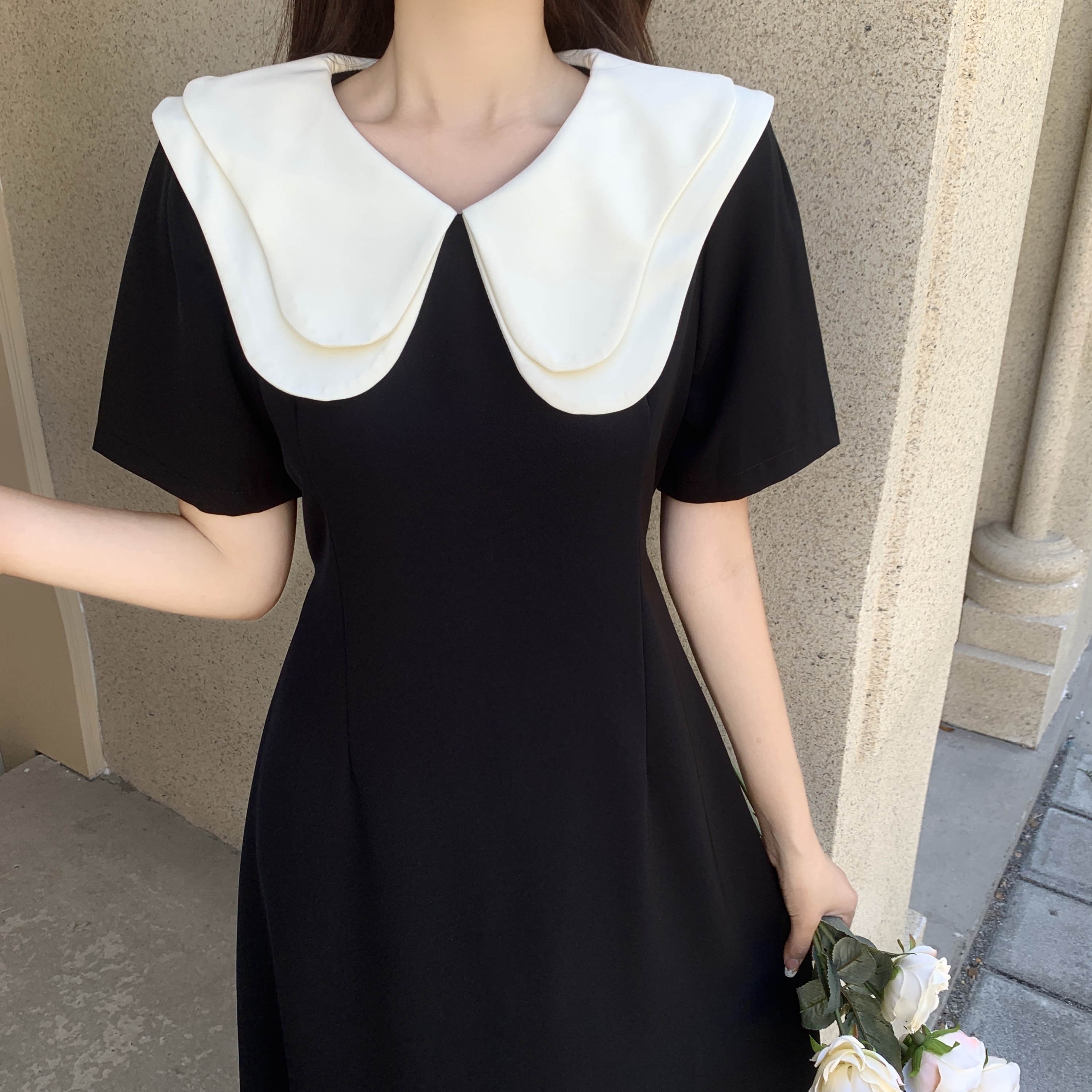 2026 여름 손 솔기 조개 자수 패치워크 슬림해 보이는 티셔츠 드레스
