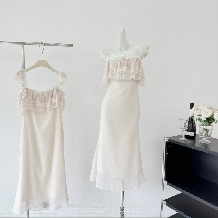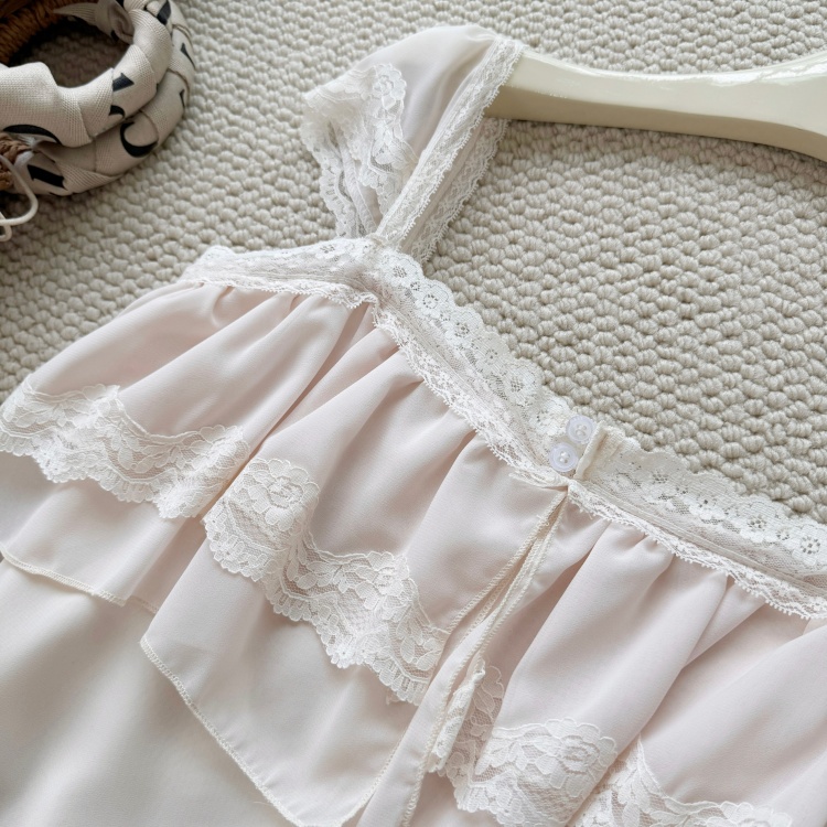 실사 임산부 여름 세트 프랑스식 안개 에 꽃 홀로우 아웃 품격 레이스 슬립 드레스 투피스 세트 트렌디