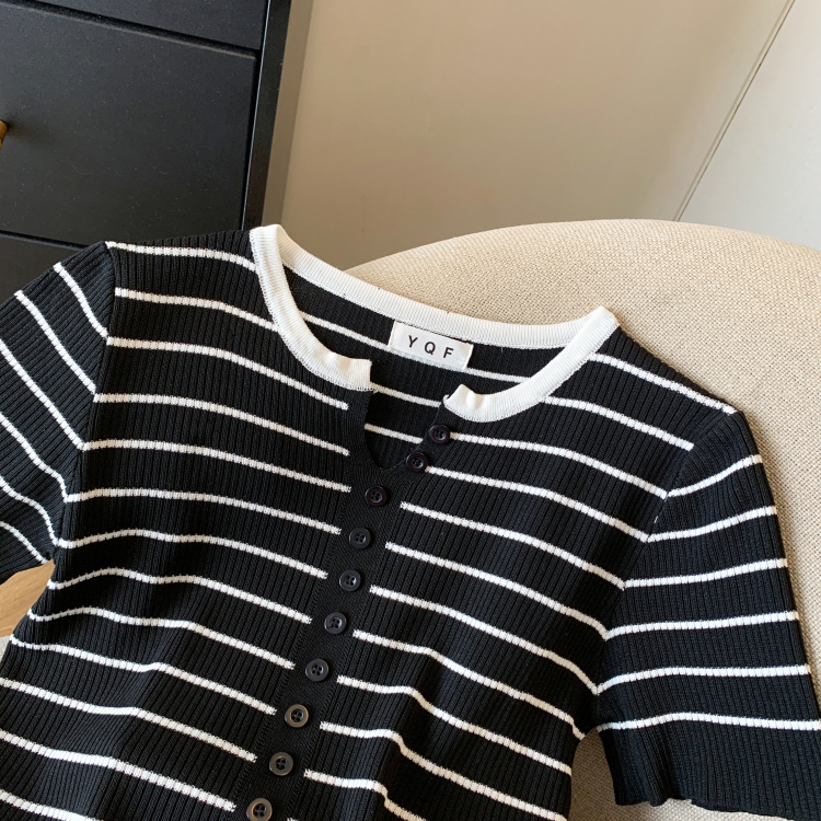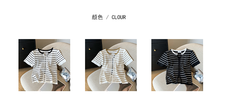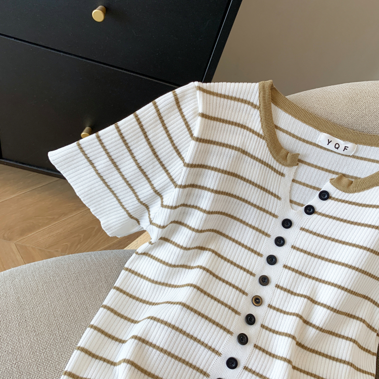 실사 대 물품 2026 여름 새로운 디자인 센스 배색 라운드 넥 반팔 티셔츠 품격 얼음 실크 니트 여성
