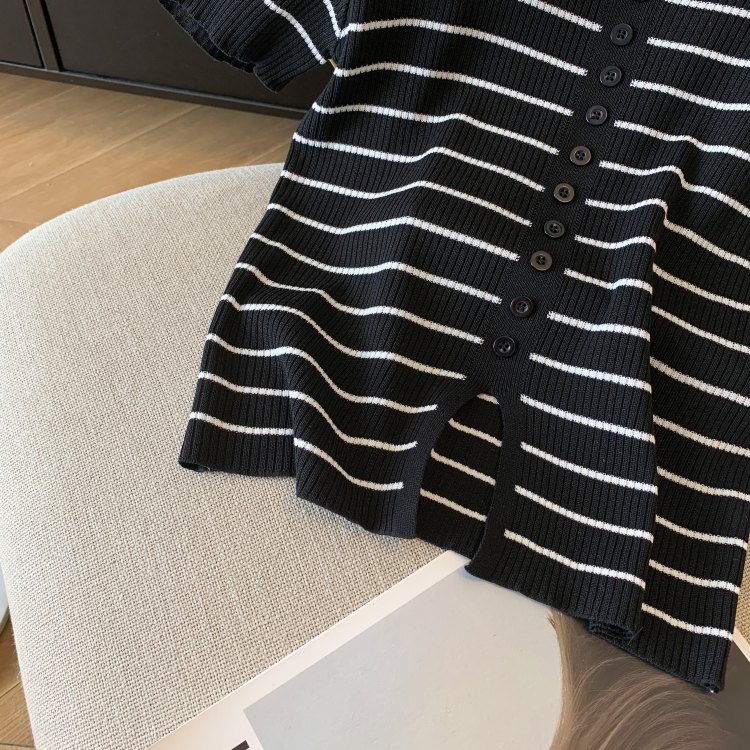 실사 대 물품 2026 여름 새로운 디자인 센스 라운드 넥 물결무늬 스트라이프 치마 얼음 실크 니트 여성 드레스