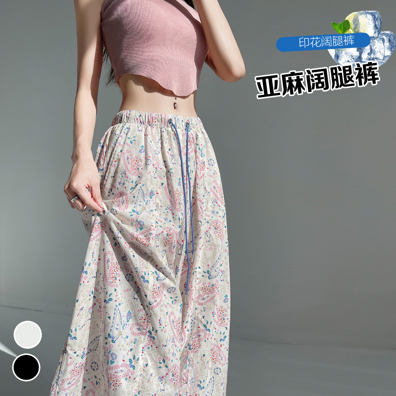 실사 여름 새로운 꽃밭 배기 바지 루즈핏 슬림해 보이는 하이웨이스트 다용도 캐주얼 얼음 실크 풍선 바지