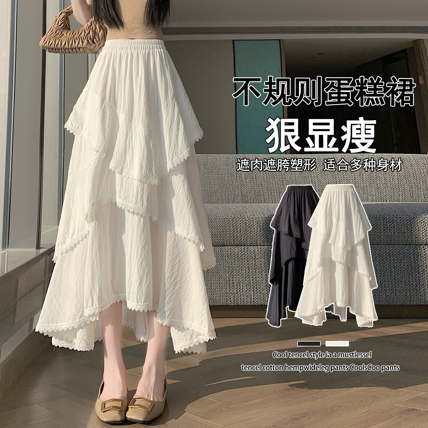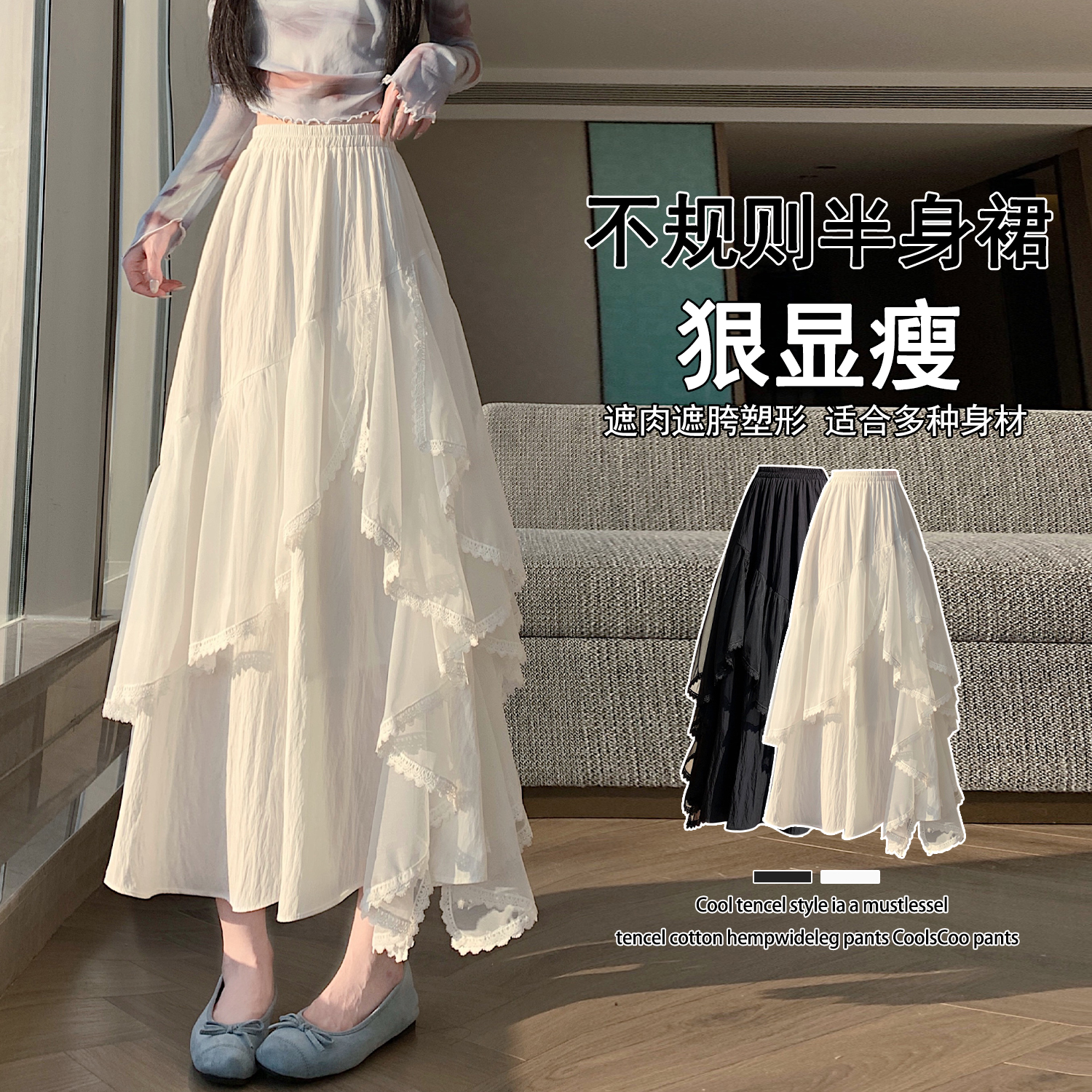 실사 불규칙 패치워크 프릴 반신 스커트 봄 여름 새로운 슬림해 보이는 다용도 레이스 케이크 롱 스커트 A라인 스커트